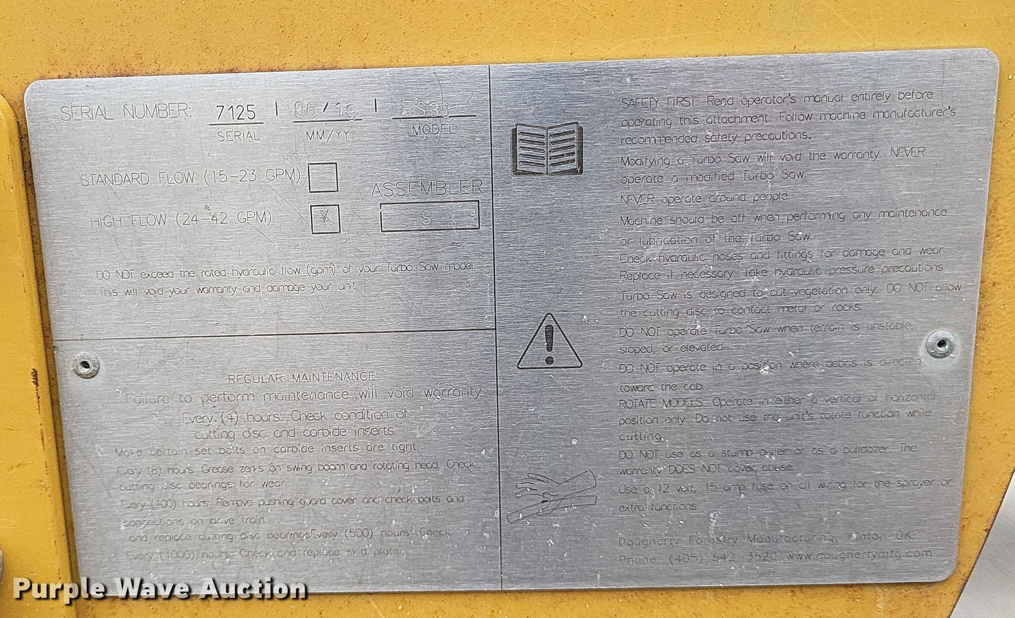 Purple Wave is selling a used Skid Steer Attach. in Missouri. This item is a 2019 Turbosaw RS30 skid steer tree saw with the following: Serial: 7125, Blade diameter: 29", Horizontal swing, High flow hydraulics