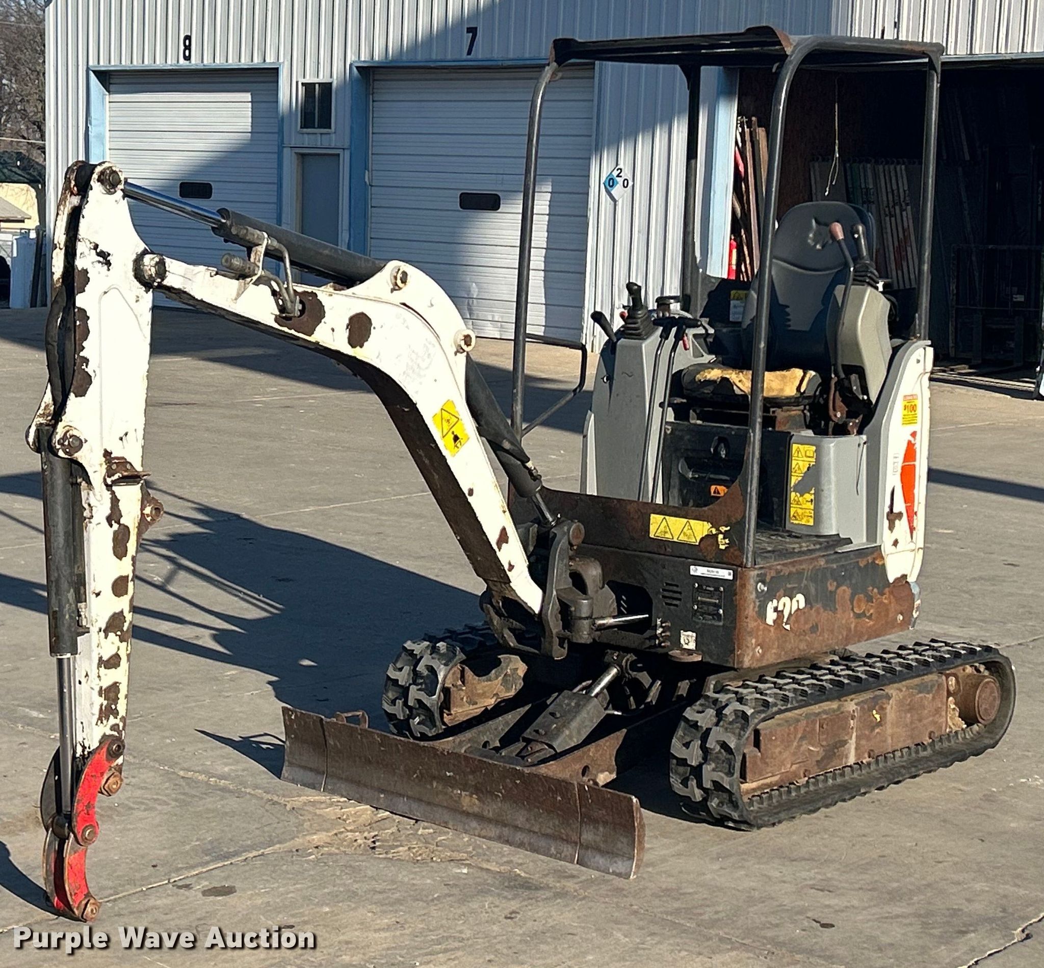 Purple Wave is selling a used Mini Excavator in Iowa. This item is a 2015 Bobcat E20 mini excavator with the following: Hours: 1,674 on meter, Serial: B3BL11459