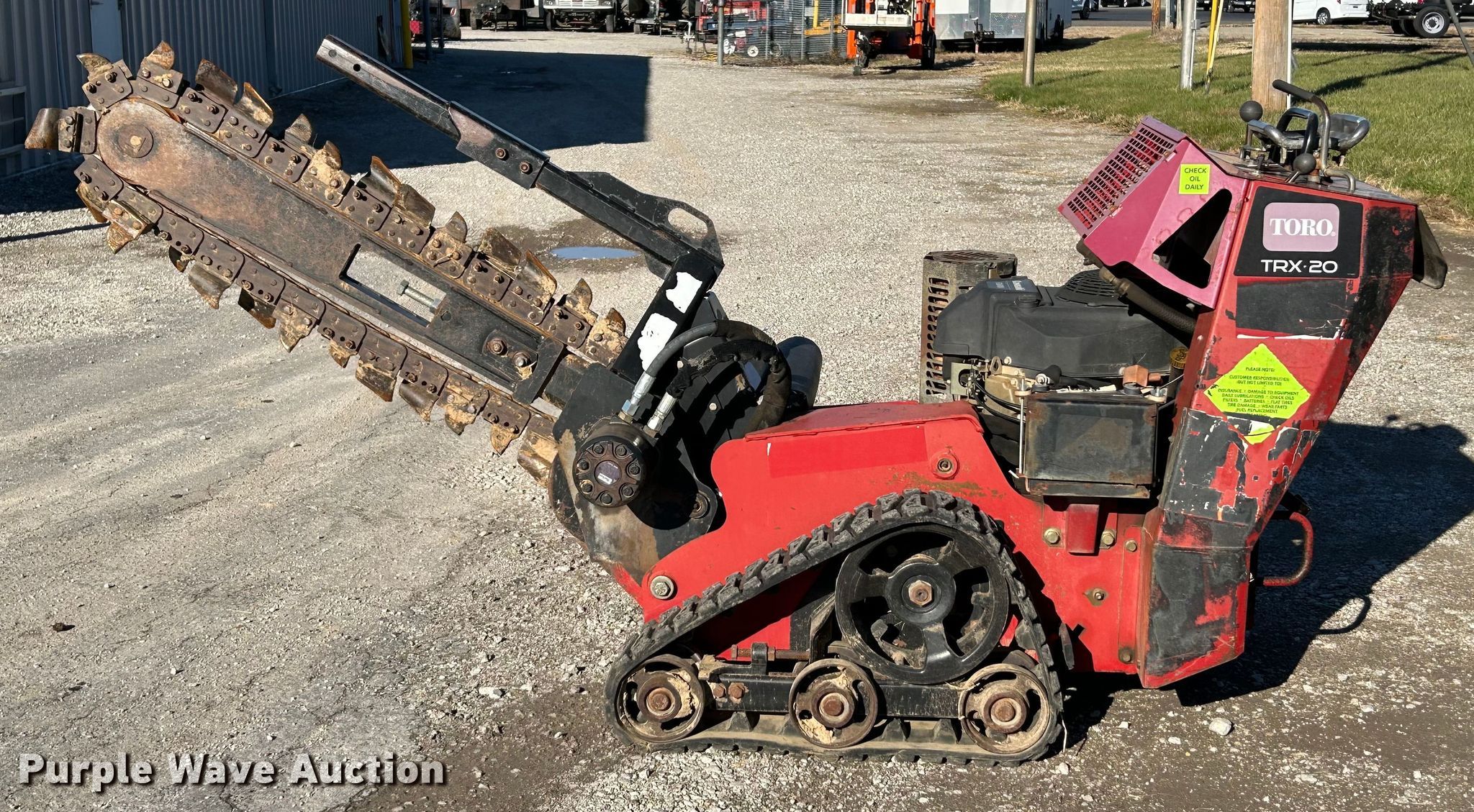 Purple Wave is selling a used Trencher or Rock Saw in Illinois. This item is a 2013 Toro TRX-20 trencher with the following: Hours: 878 on meter, Serial: 313000188