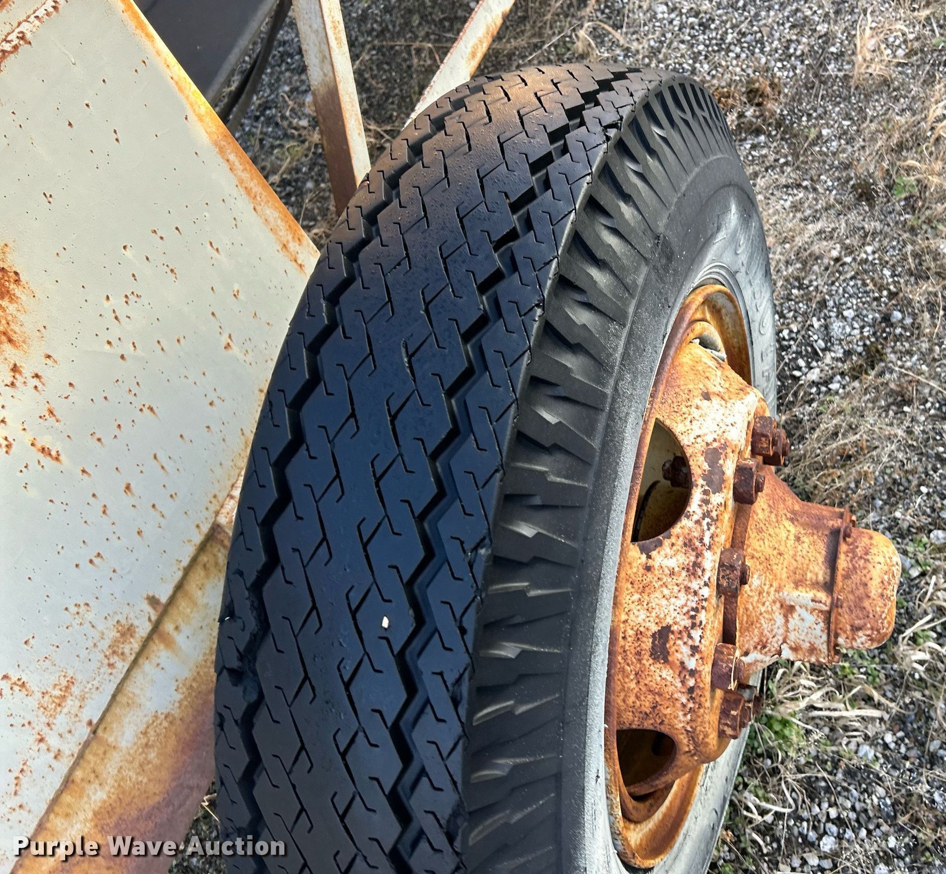 Conveyor. Serial: P24X65 737, Overall dimensions: 49' L x 95" W, Conveyor frame width: 42.5". Features Length: 48', Width: 24". Tires Front: 7.00-15LT, Rear: 9.00-20. Notes Unknown operating condition. Millstone Weber, LLC. Saint Charles, MO 63301