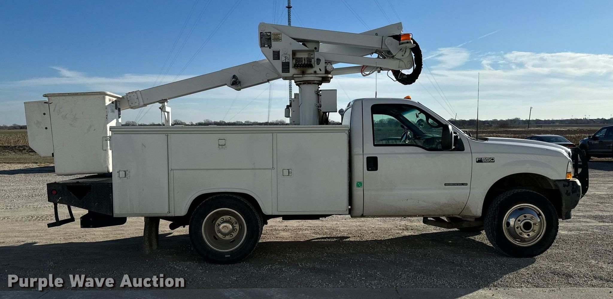 Purple Wave is selling a used Bucket Truck in Kansas. This item is a 2002 Ford F550 Super Duty bucket truck with the following: Miles: 242,008 on odometer, VIN: 1FDAF57F12ED68456, Unit #: 92