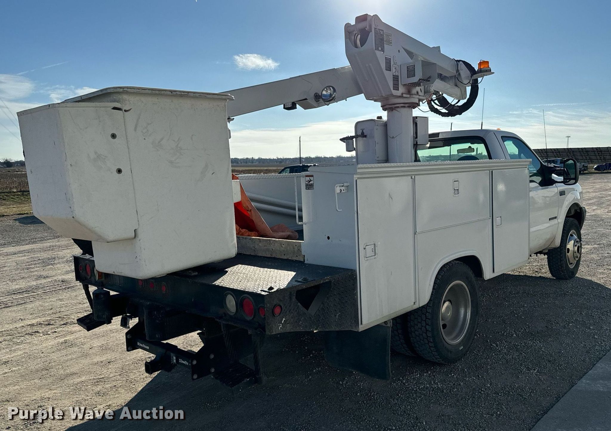 This 2002 Ford F550 Super Duty bucket truck will sell to the highest bidder regardless of price.