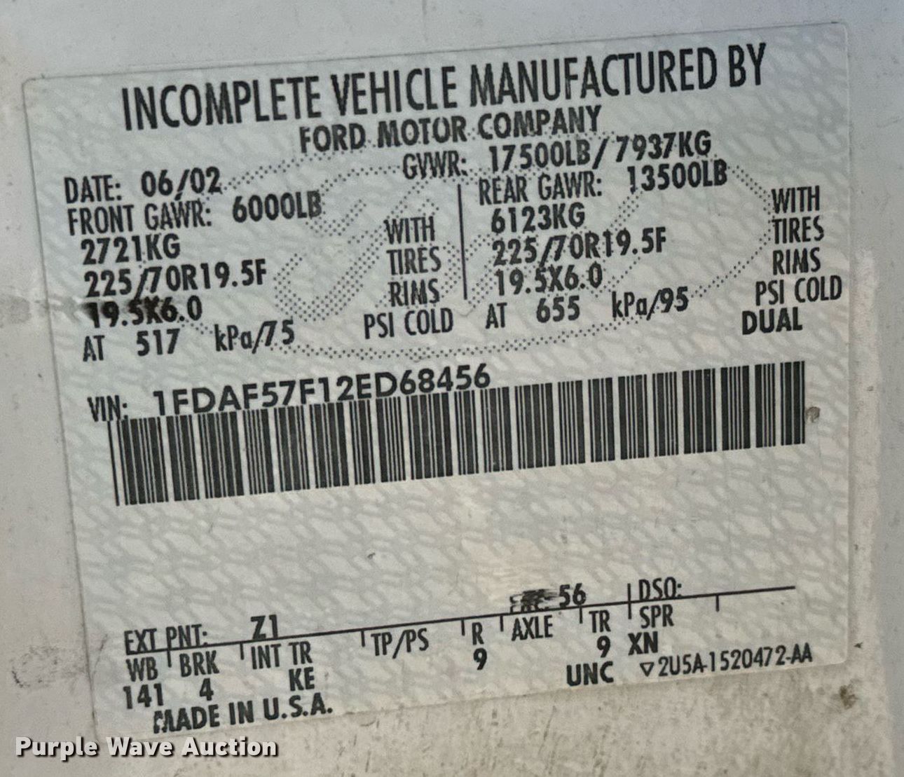 - VIN: 1FDAF57F12ED68456
