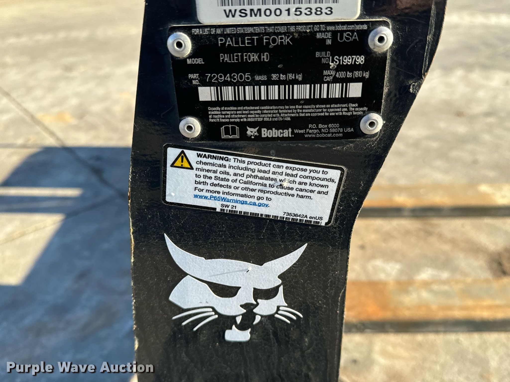 Purple Wave is selling a used Skid Steer Attach. in Kansas. This item is a Bobcat Pallet Fork HD skid steer forks with the following: Length: 48"