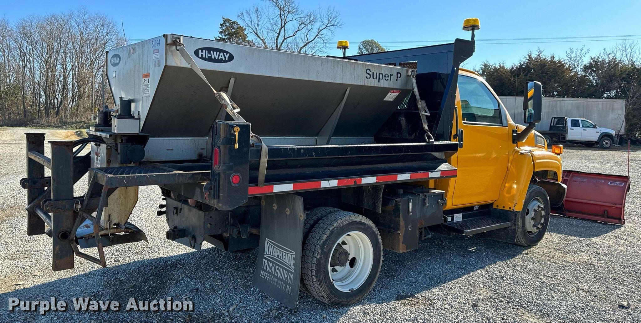 2008 Chevrolet C4500 dump truck. Miles: 191,889 on odometer, VIN: 1GBE4C1G18F411752, Unit #: 8145. Engine GM, Displacement: 8.1L, Cylinders: 8, Fuel type: Gas. Transmission Automatic. Chassis Axles: Single, Suspension: Spring, Brakes: Hydraulic, PTO, GVWR: 17,500 lbs. FAWR: 7,000 lbs., RAWR: 13,500 lbs.. Interior AC, Heat, Cruise control. Features Dump bed 9' L x 96" W, Side height: 14", Bed type: Steel, Ram: Single , End gate: Manual, Spreader Hi-Way Super P, Plow Western ProPlus UltraFinish , Width: 108". Tires Size: 225/70R19.5. Notes Unknown operating condition of spreader, hoses disconnected. Missouri title. Missouri Department of Transportation (MODOT). 8267 Old Highway 54. New Bloomfield, MO 65063