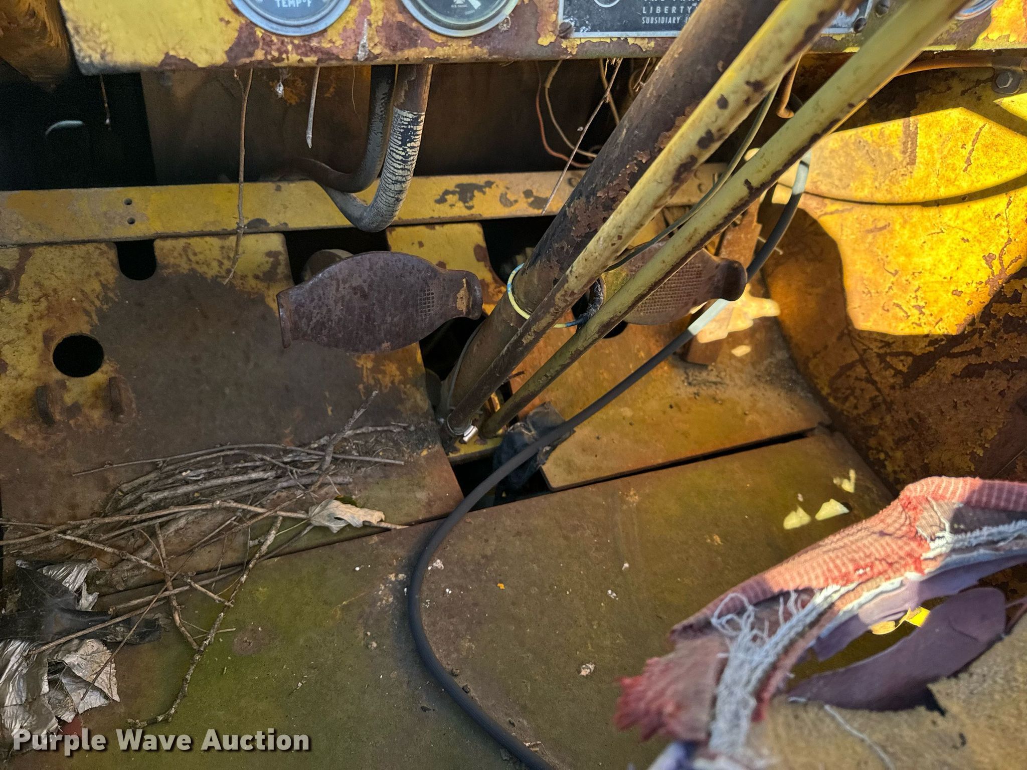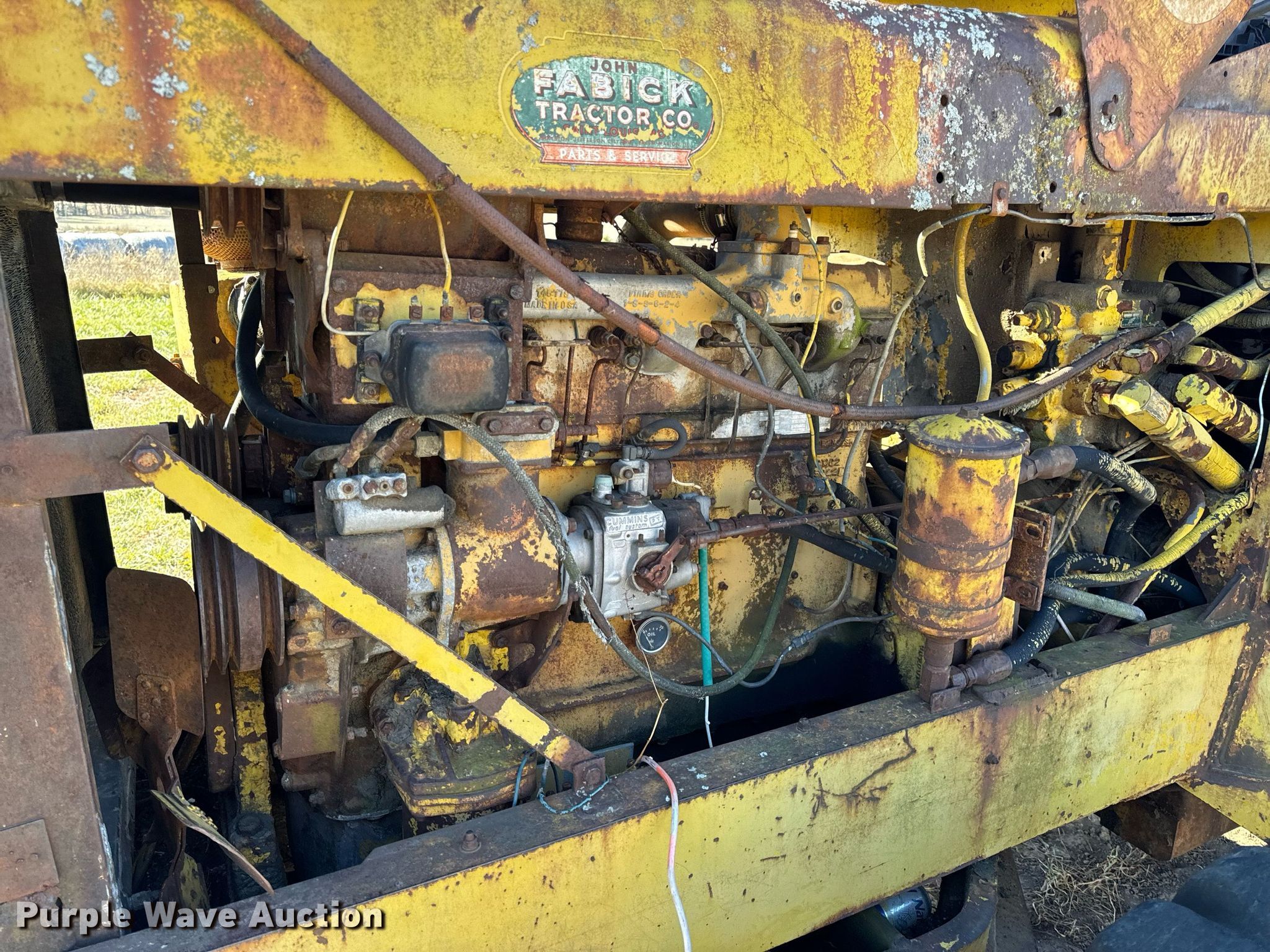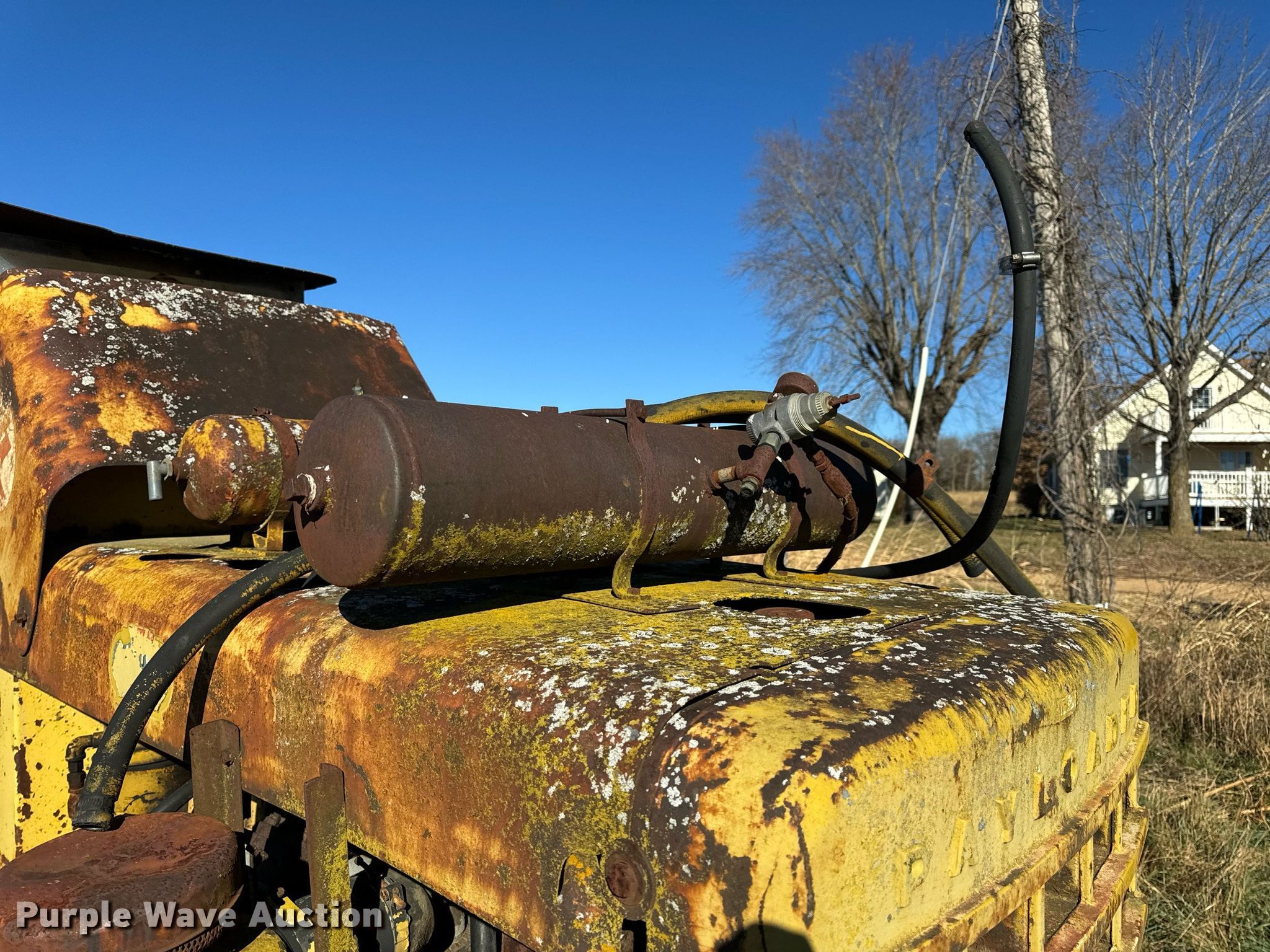 1964 Hough H90D wheel loader. Hours: 1,955 on meter, Serial: 27AC1211. Engine Cummins C180, Serial: 387207, Cylinders: 6, Fuel type: Diesel. Operators station OROPS, Bucket controls: Two-lever. Features Bucket Width: 97". Tires Size: 16.00-24TG. Notes Tire issues, flat, Unit must be towed or hauled., Non-operational unit. Bland, MO 65014