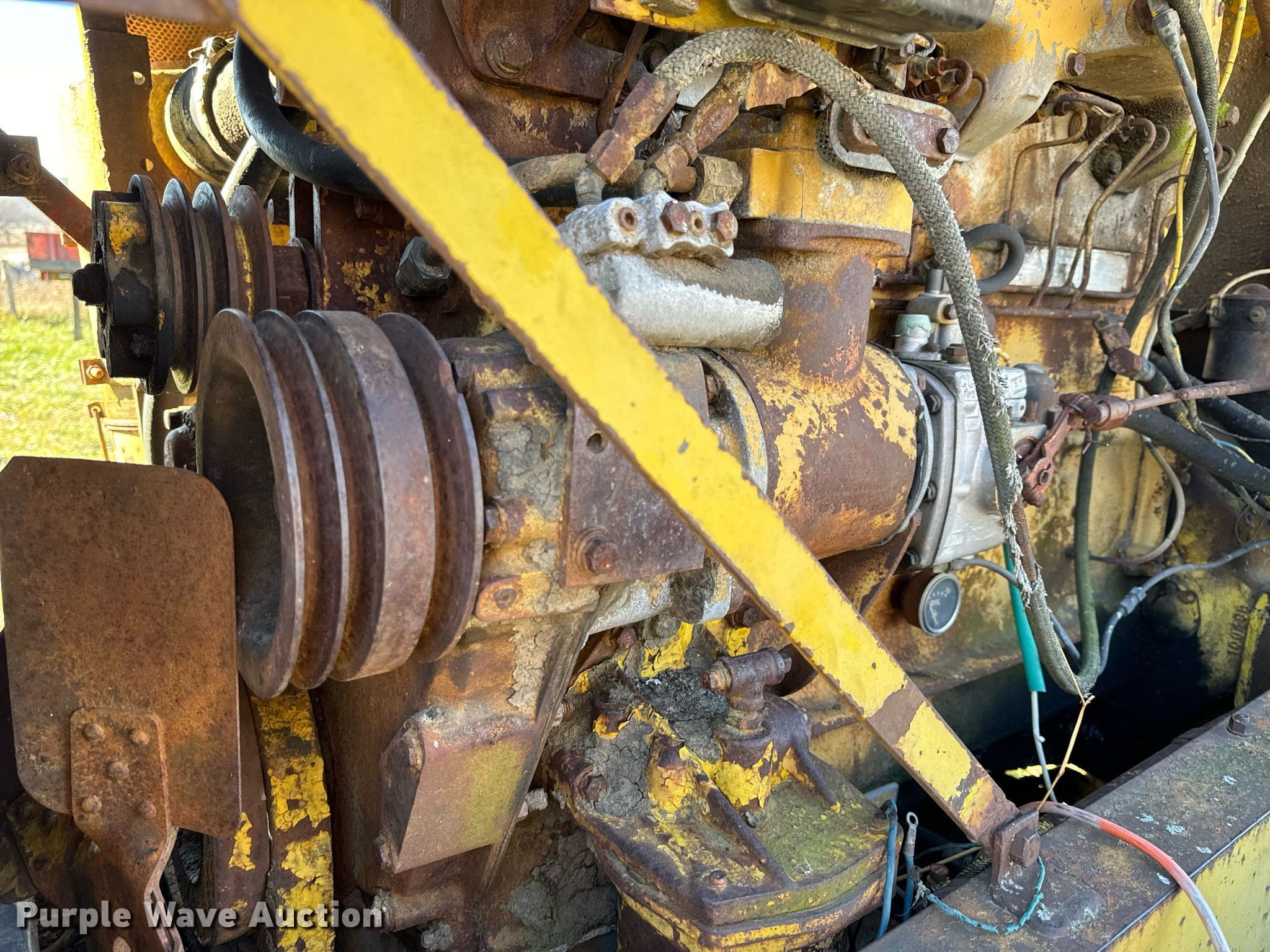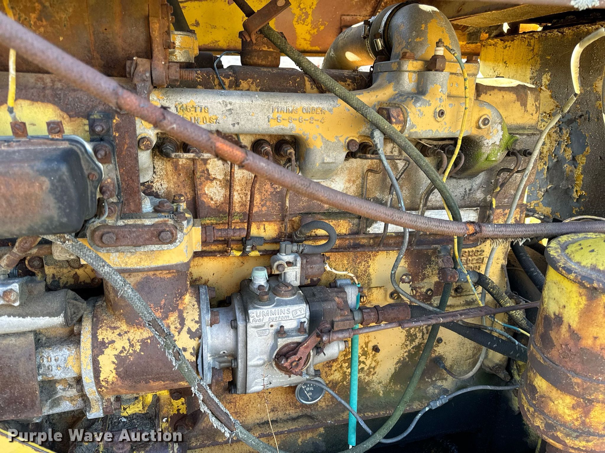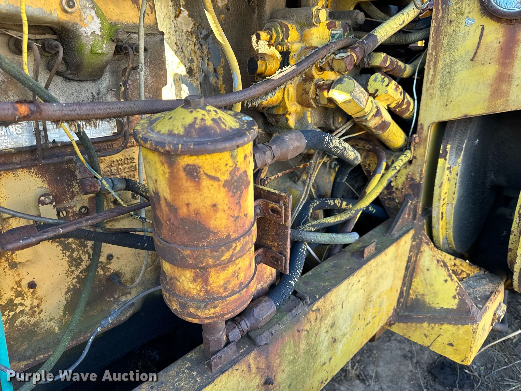 1964 Hough H90D wheel loader. Hours: 1,955 on meter, Serial: 27AC1211. Engine Cummins C180, Serial: 387207, Cylinders: 6, Fuel type: Diesel. Operators station OROPS, Bucket controls: Two-lever. Features Bucket Width: 97". Tires Size: 16.00-24TG. Notes Tire issues, flat, Unit must be towed or hauled., Non-operational unit. Bland, MO 65014