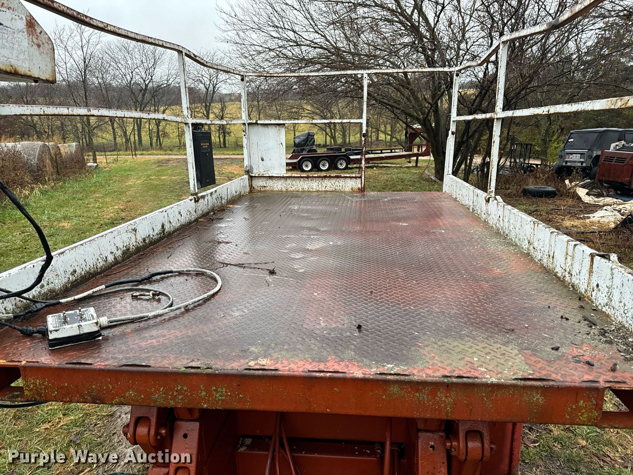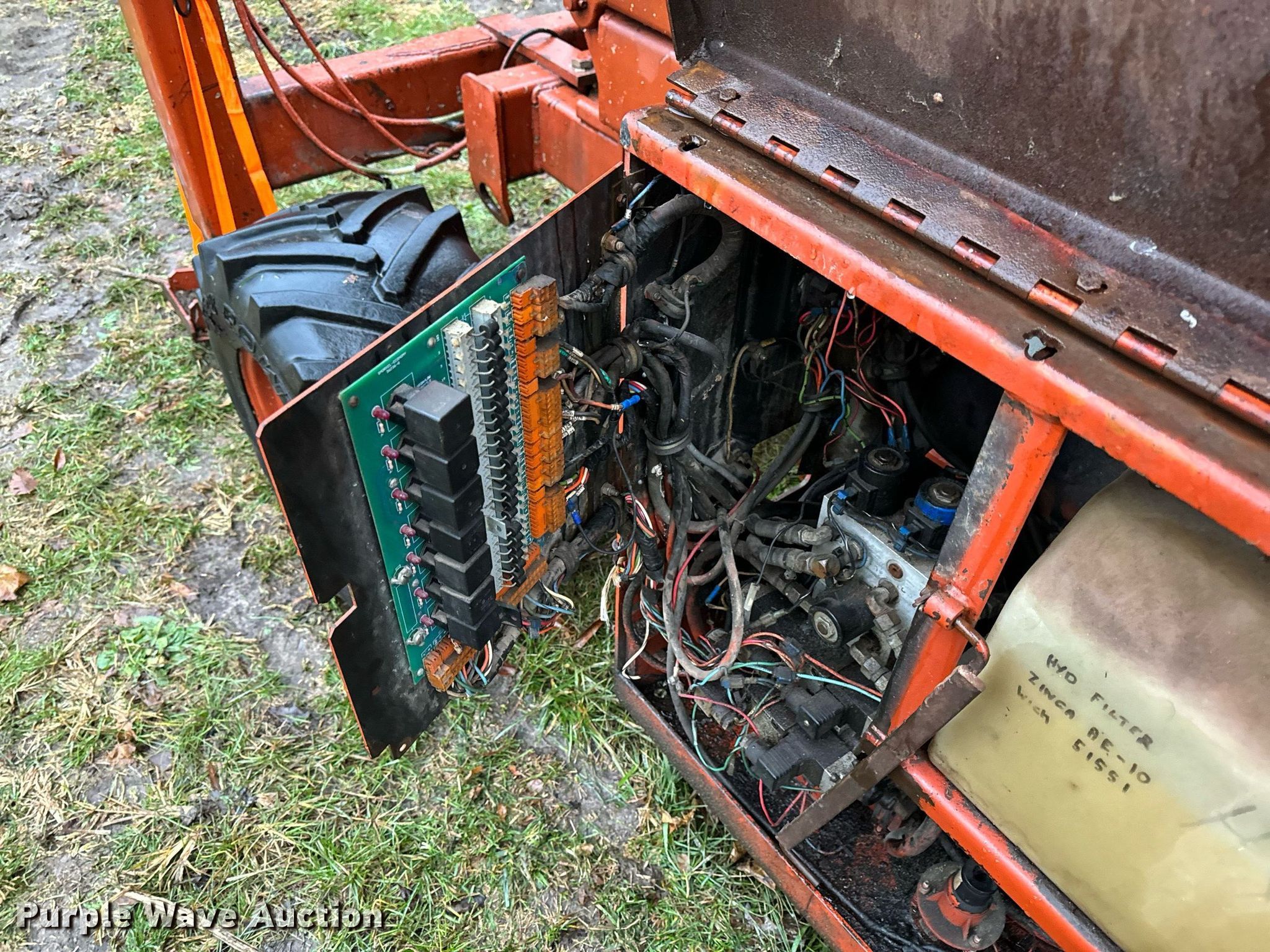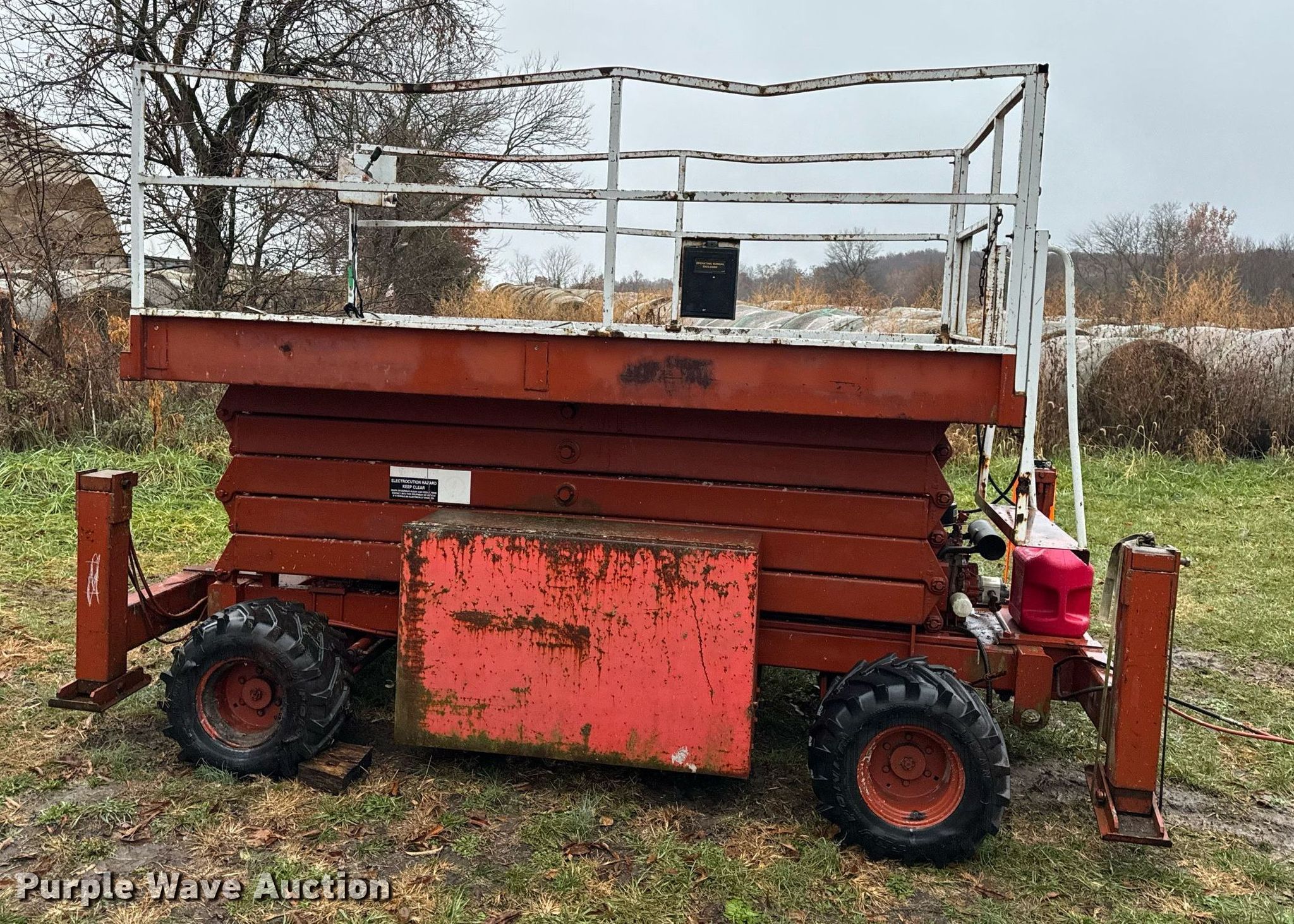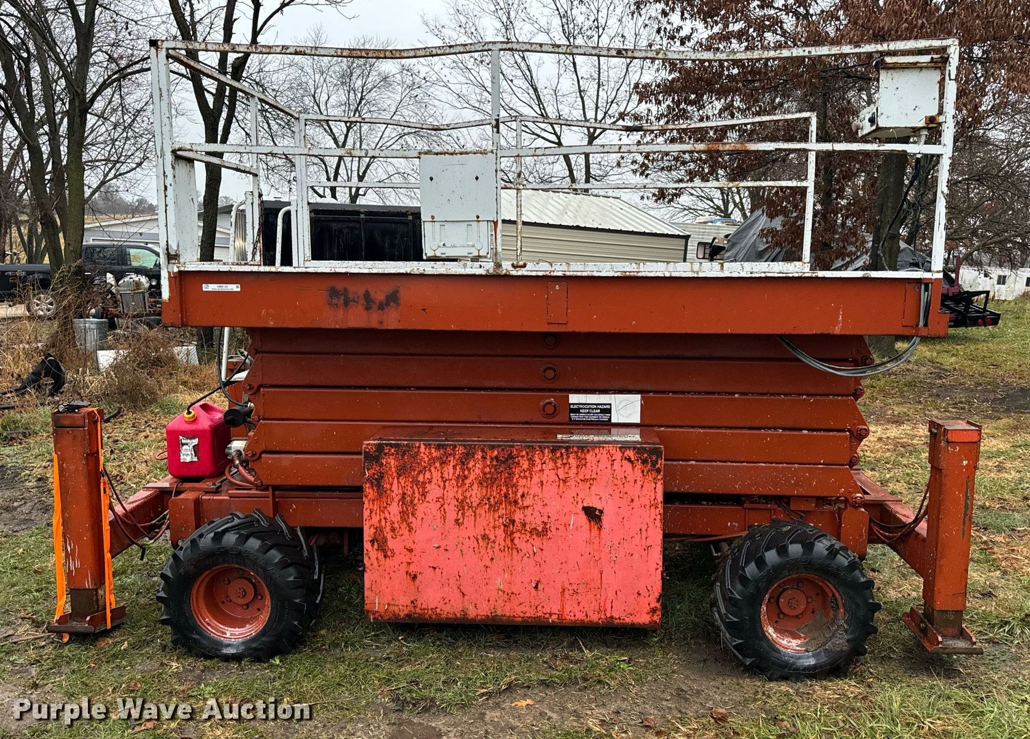 Economy SPL4084-4A-G scissor lift. Hours: 3,755 on meter, Serial: KK78082. Engine Cylinders: 2, Fuel type: Gas. Features Rough terrain, Maximum lift capacity: 1,000 lbs, Maximum lift height: 40', Hydraulic outriggers, Platform: 120" L x 72" W, Controls: Platform. Tires Tire size: 26X12.00-12, Foam filled. Notes Electrical issues, Non-operational fuel pump, Main fuel tank disconnected , Non-operational rear outriggers, Hydraulic issues, platform leaks down, Damaged tires, Non-operational unit. Buyer is responsible for all aspects of load-out and removal. DBA Setco. 57539 Corticelli Road. Russellville, MO 65074