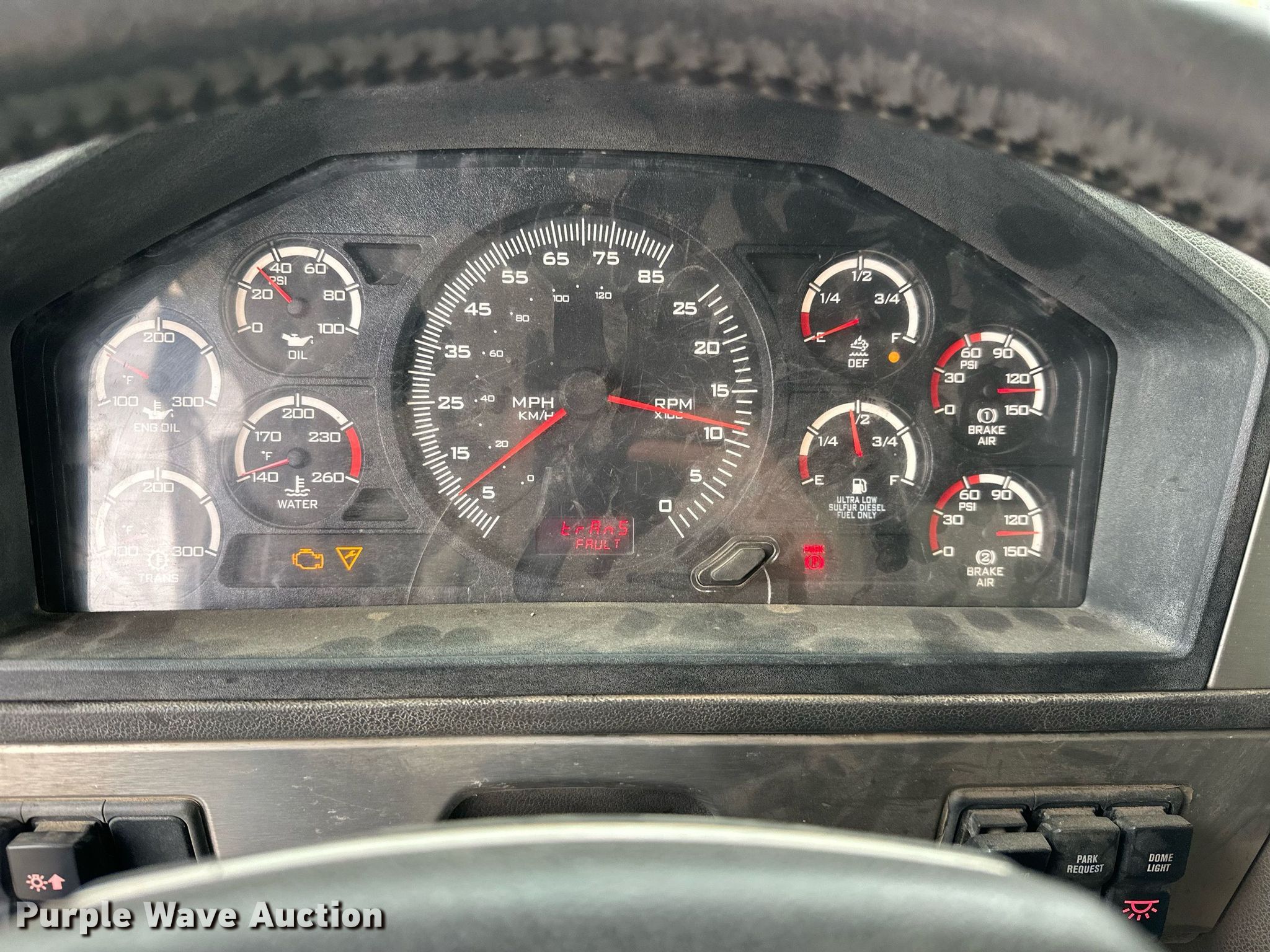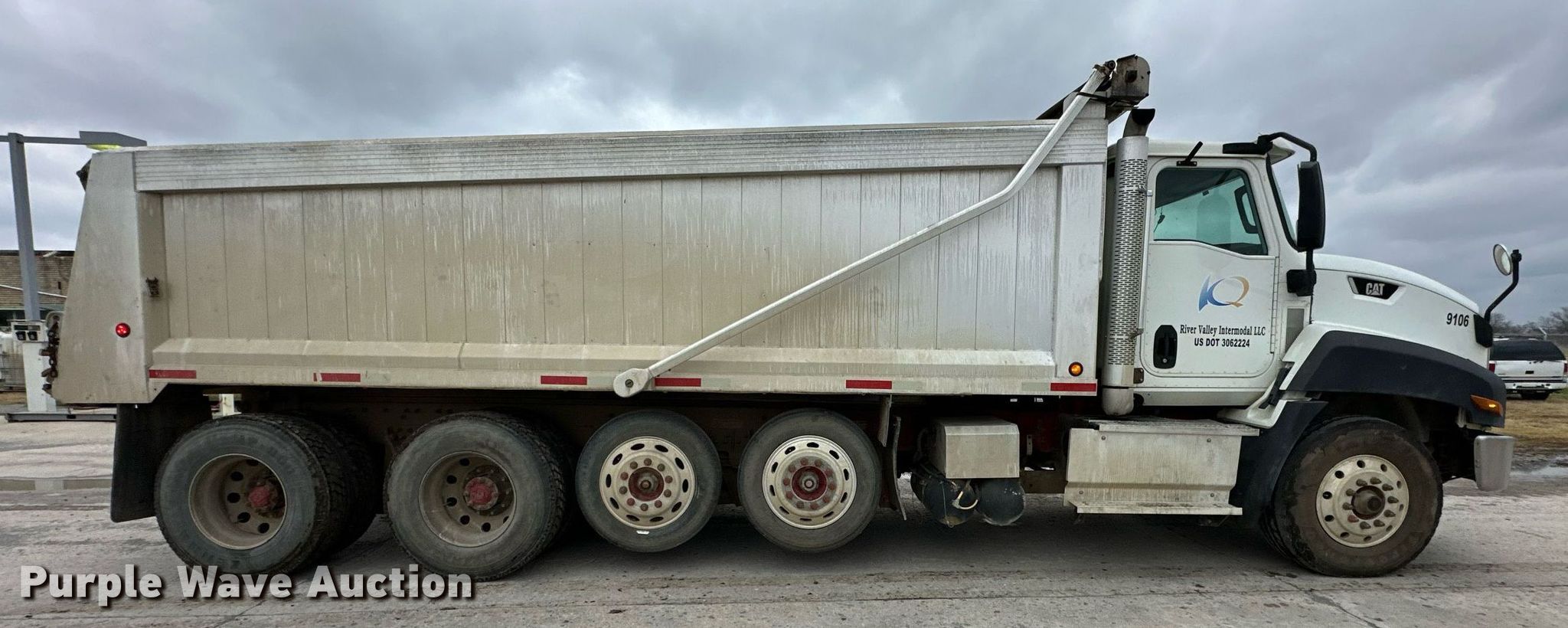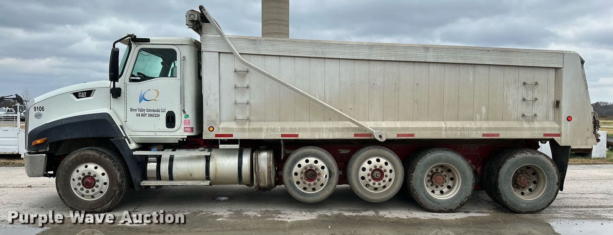 2014 Caterpillar CT660 dump truck. Miles: Unknown, VIN: 3HTJGTKT7EN019106. Engine Caterpillar CT13, Displacement: 13.0L, Cylinders: 6, Fuel type: Diesel, Engine brake. Transmission Eaton Fuller, Automatic. Chassis Axles: 4, Pusher axle, Differential lock: Inter-axle, Suspension: Air, Brakes: Air, PTO, Wheelbase: 246". Interior AC, heat, Heated mirrors, Power windows, Cruise control. Features Dump bed 21'L x 8' W, Side height: 55", Bed type: Steel, Roll tarp, Ram: Single. Tires Size: 315/80R22.5, Lift axle: 255/70R22.5. Notes Dash warning indicator: Check engine, Dash warning indicator: Drivetrain, Windshield chipped or cracked, Dead battery, Odometer issues, Transmission fault error, Roll tarp issues, will not retract evenly.. Oklahoma title. Mileage has not been verified. Exempt will be written in the odometer disclosure on the title. Kemp Quarries. Pryor, OK 74361