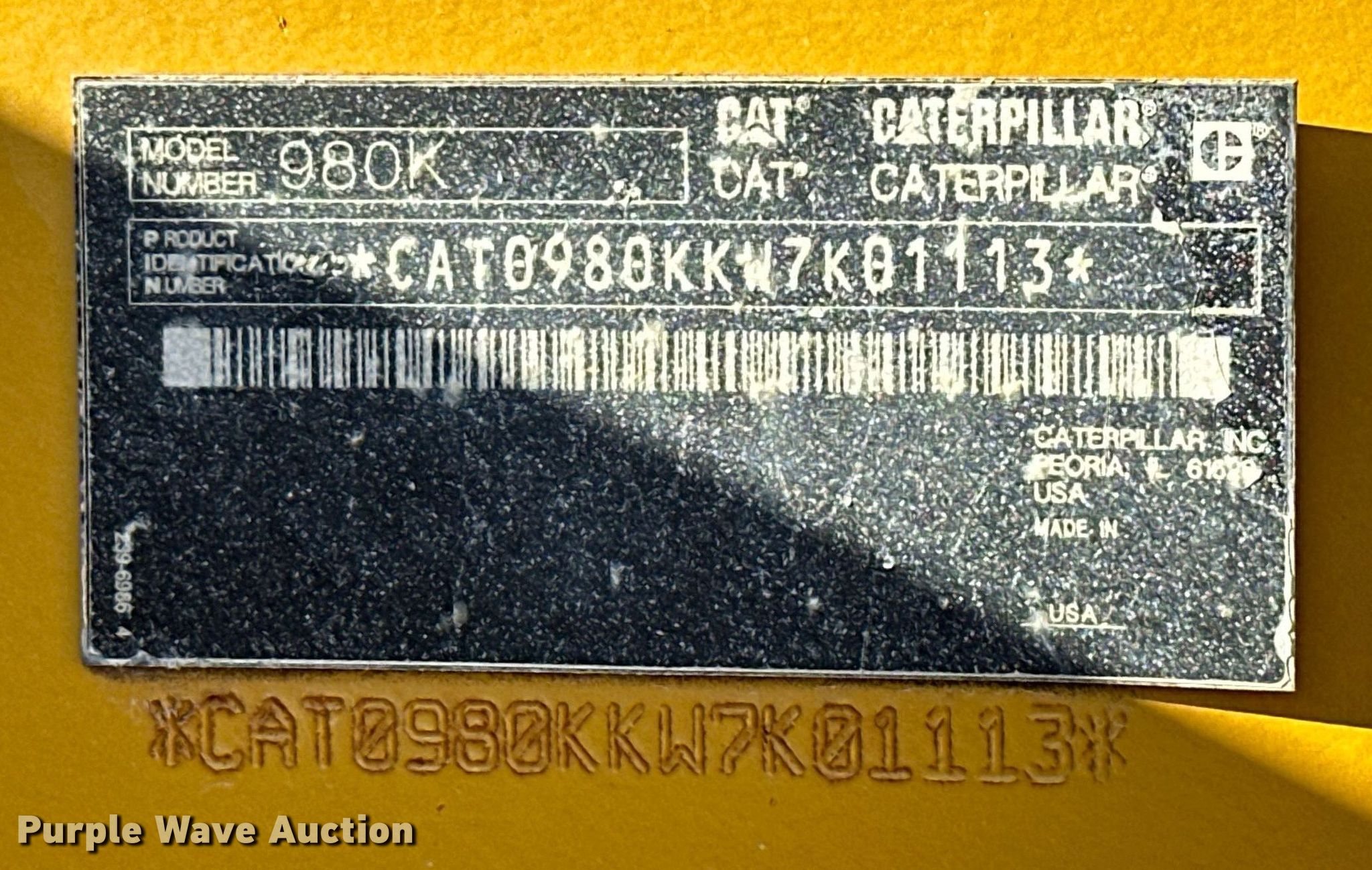 Purple Wave is selling a used Wheel Loader in Oklahoma. This item is a 2012 Caterpillar 980K wheel loader with the following: Hours: 24,769 on meter, Serial: CAT0980KKW7K01113