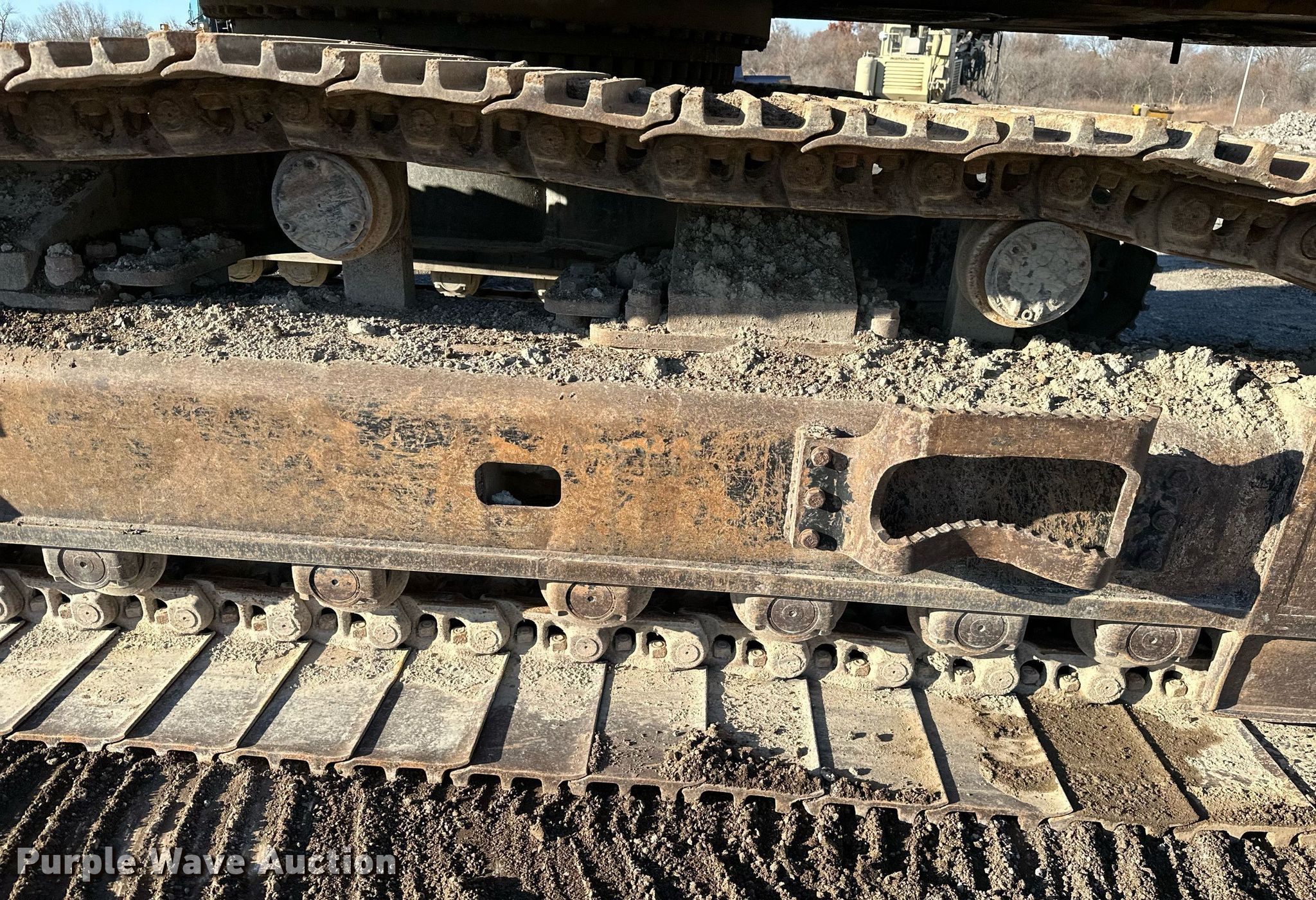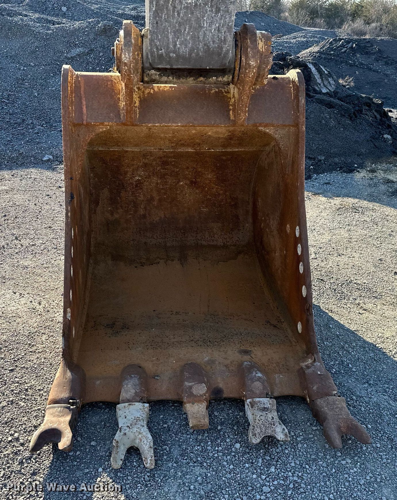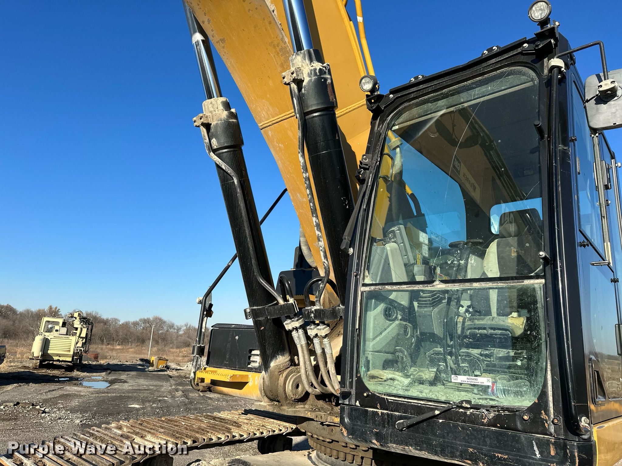 2014 Caterpillar 349E L excavator. Hours: 14,362 on meter, Serial: CAT0349EVDGE00299. Engine Caterpillar C13, Cylinders: 6, Fuel type: Diesel. Transmission Hydrostatic, Two speed travel. Operators station Enclosed cab. Features Auxiliary hydraulics Standard, Counter weights, Boom Standard, Stick Stick length: 13', Bucket Width: 50", Teeth: 5. Tracks Width: 36", Steel, Grouser pads: Triple. Notes Glass cracked. Bison Materials LLC.. Bartlesville, OK 74003