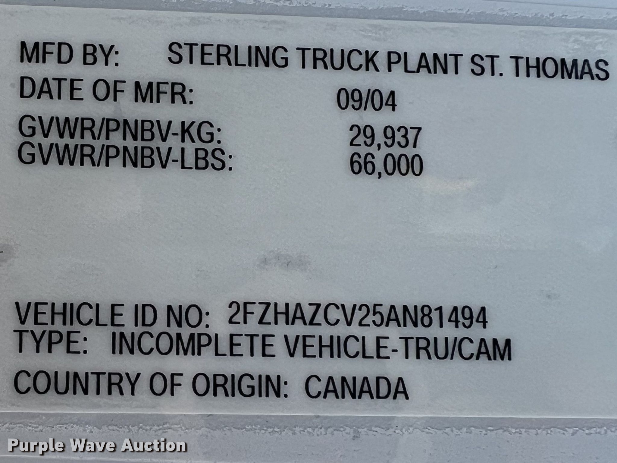 Purple Wave is selling a used Crane Truck in Missouri. This item is a 2005 Sterling LT9500 crane truck with the following: Miles: 176,477 on odometer, Hours: 10,884 on meter, VIN: 2FZHAZCV25AN81494