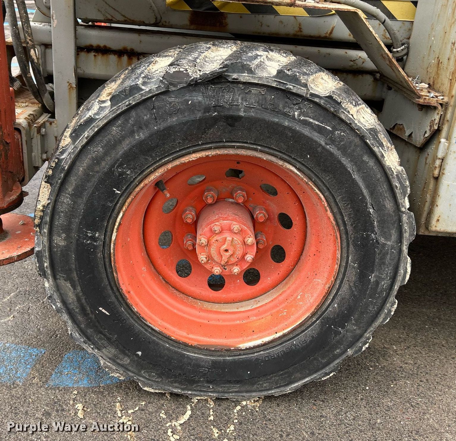 2001 Skyjack SJ8841 scissor lift. Hours: 1,942 on meter, Serial: 42684. Engine Kubota, Cylinders: 4, Fuel type: Dual fuel, HP: 29. Chassis Four wheel drive. Features Maximum lift capacity: 1,500 lbs., Maximum lift height: 41', Hydraulic outriggers, Platform: 132" L x 69" W, Controls: Platform, ground, Platform extensions: Manual, Platform extension: 48". Tires Tire size: 10-16.5. Notes Battery box door will not close. RL Jones Properties. Crystal City, MO 63019