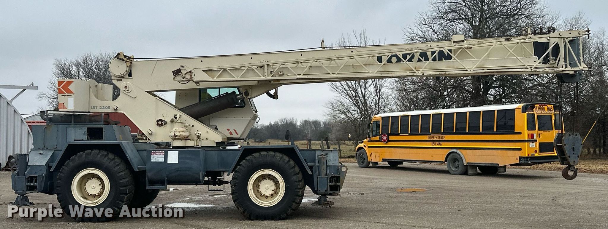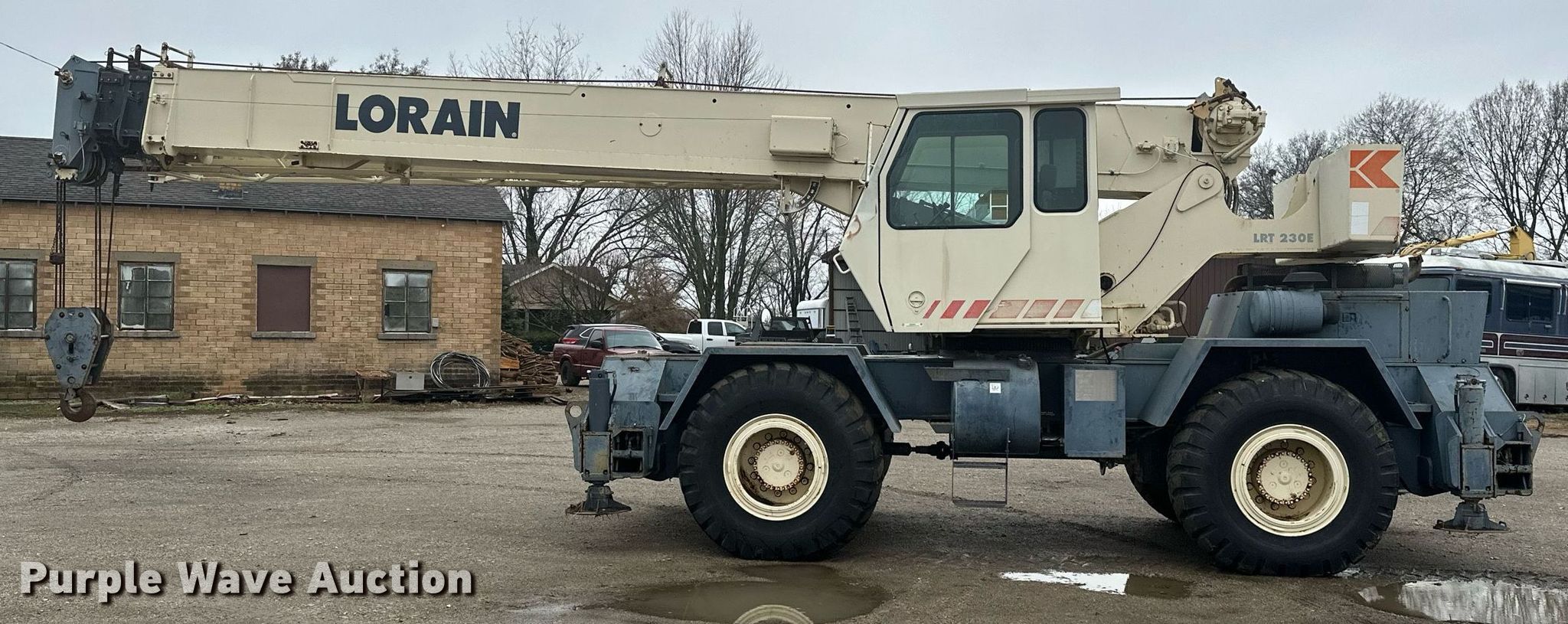 Purple Wave is selling a used Rough or All Terrain Crane in Kansas. This item is a 1994 Lorain LRT 230E crane with the following: Hours: 3,132 on meter, Serial: 80313