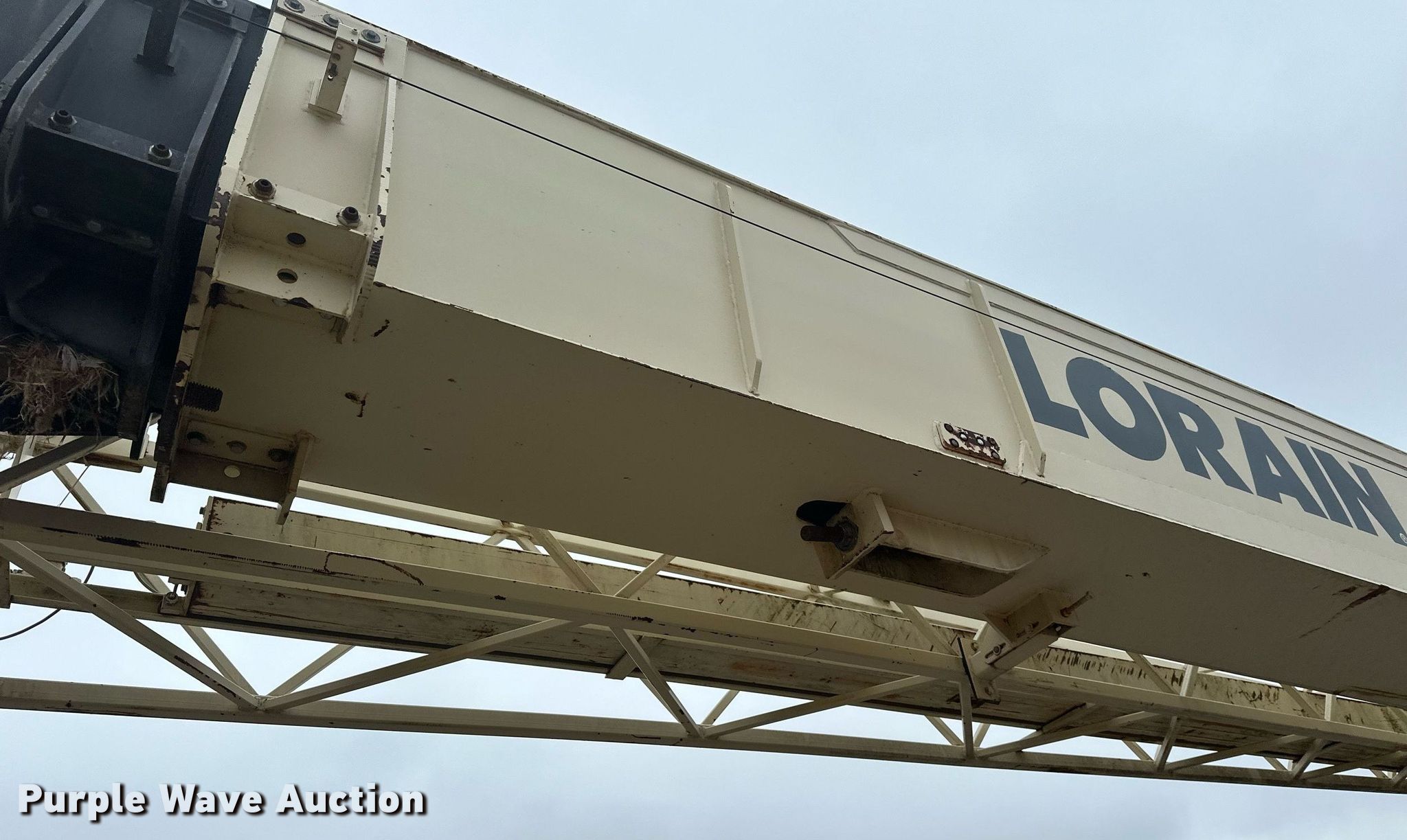 1994 Lorain LRT 230E crane. Hours: 3,132 on meter, Serial: 80313. Engine Cummins 6BT, Displacement: 5.9L, Cylinders: 6, Fuel type: Diesel. Transmission Powershift, 3F - 3R. Chassis Brakes: Air, Controls: Hydraulic actuated. Operators station Enclosed cab, Crane controls: Stick, Load monitor MicroGuard 404. Features Boom Telescopic, Maximum boom length: 94' Sections: 4, Maximum lift capacity: 60,000 lbs, Maximum lift height: 137', Stabilizers: 4, Boom controls In-cab, Crane block Capacity: 30 lbs, Manuals. Tires Size: 20.5-25. KC 24hr Truck Repair LLC. Cherryvale, KS 67335
