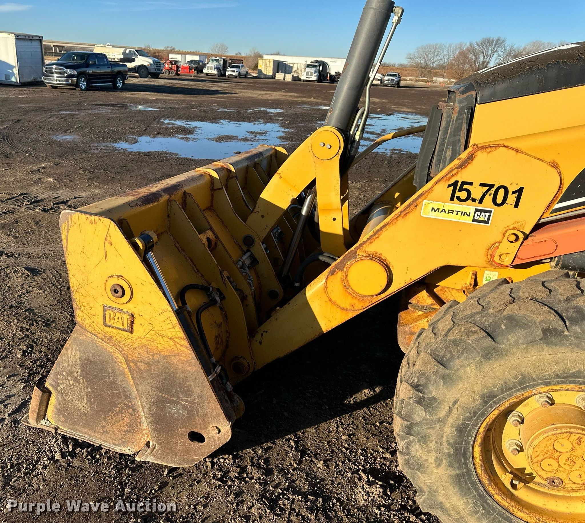 2006 Caterpillar 420E backhoe. Hours: 6,776 on meter, Serial: CAT0420EPHLS00381, Unit #: 15.701. Engine Cylinders: 4, Fuel type: Diesel. Transmission Shuttle shift, 4F - 4R. Chassis Four wheel drive, Differential lock. Operators station Enclosed cab, AC, Heat, Backhoe controls: Pilot control, Pattern changer. Features Loader Auxiliary hydraulics, Bucket Caterpillar , Four-in-one, Width: 89", Cutting edge: Bolt-on, Backhoe Extendable stick, Quick coupler: Manual, Auxiliary hydraulics. Tires Front: 340/80R18, Rear: 19.5L-24. Notes Steering column tilt issues. Sunflower Paving Inc./RD Johnson Excavating. 4123 Northeast Seward Avenue. Topeka, KS 66616