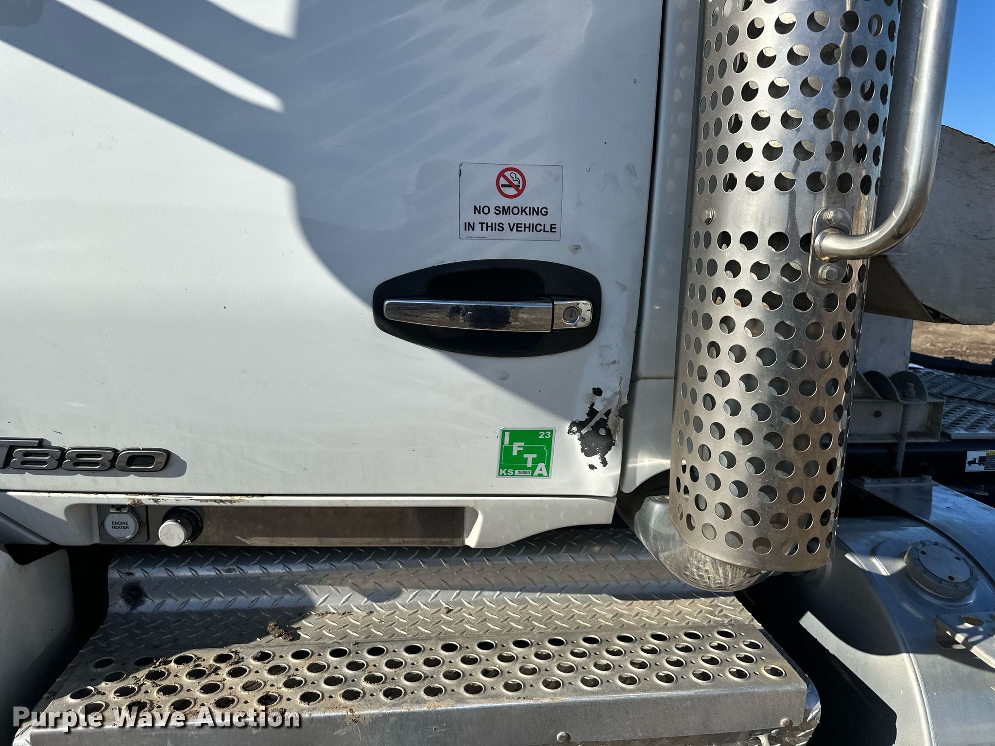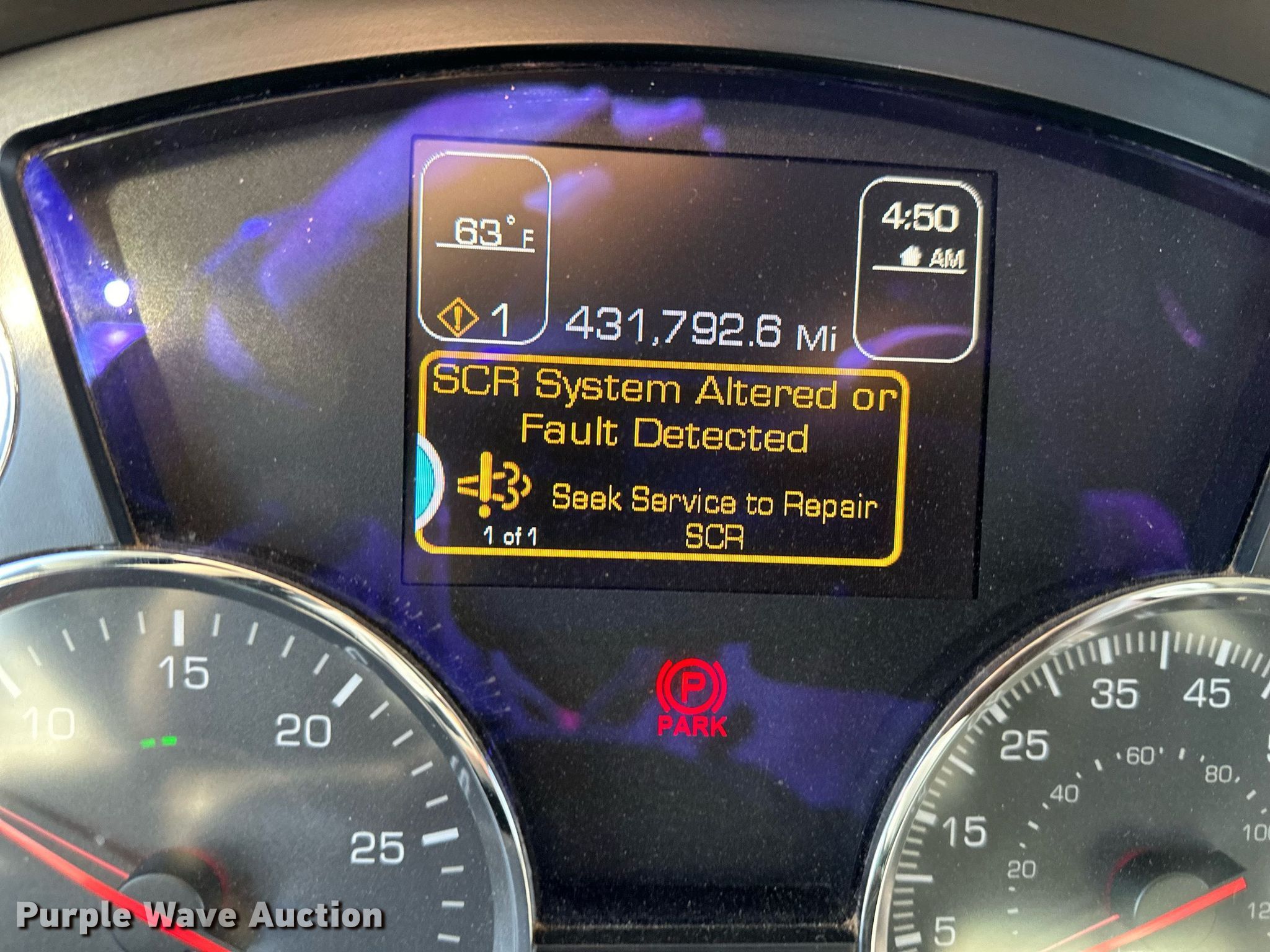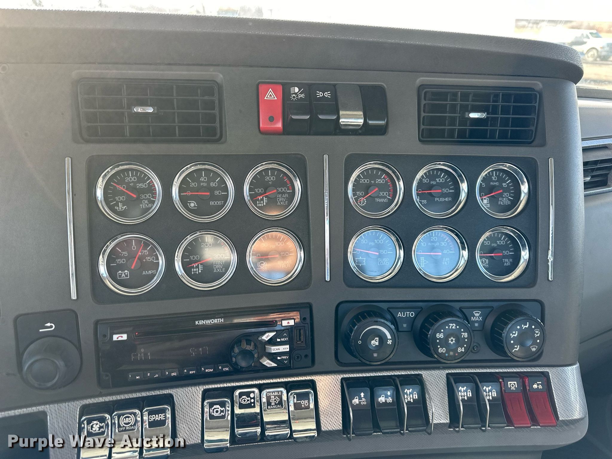 2015 Kenworth T880 semi truck. Miles: 431,793 on odometer, VIN: 1XKZP4TX1FJ439699. Engine Cummins ISX15, Displacement: 14.9L, Cylinders: 6, Fuel type: Diesel, Engine brake. Transmission Eaton, Manual, Speed: 18. Chassis Axles: Triple, Pusher axle Steerable, Differential lock: Full, Suspension: Air Dump valves, Brakes: Air, PTO, Wet kit, Double frame , GVWR: 86,000 lbs FAWR: 20,000 lbs, IAWR: 23,000 lbs, RAWR: 23,000 lbs, Lift axle GAWR: 20,000 lbs. Interior AC, Heat, Power windows, Power locks, Cruise control, Air ride cab. Features Deck plate: Aluminum, Fifth wheel type: Air operated, Sliding, Fuel tank: Dual. Tires Front: 425/65R22.5, Rear: 11R22.5, Lift axle: 425/65R22.5. Notes Dash warning indicator: Check engine, SCR system fault. Kansas title. Title distribution may be delayed up to 30 days from verification of funds. Sunflower Paving Inc./RD Johnson Excavating. 4123 Northeast Seward Avenue. Topeka, KS 66616