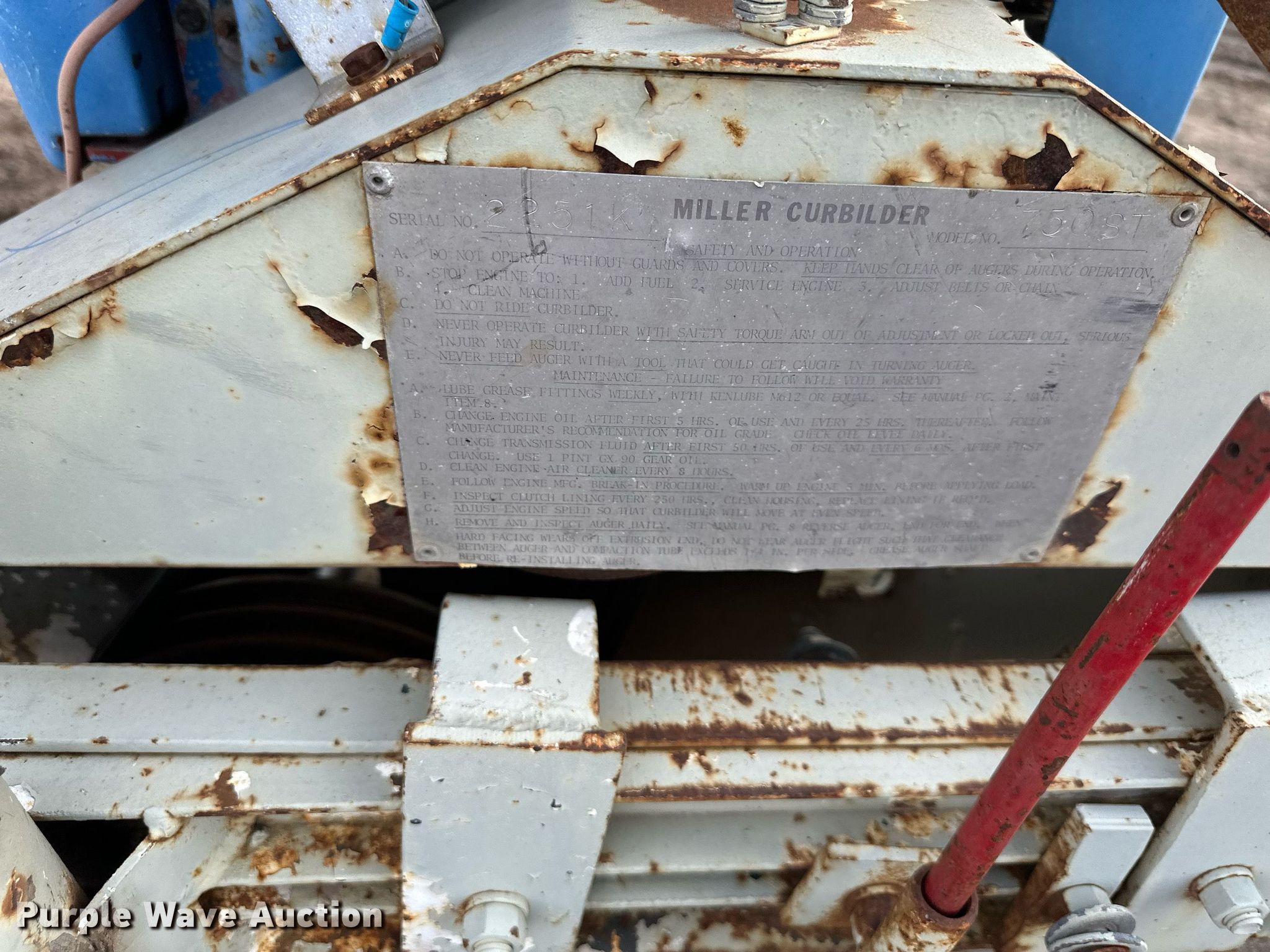 Purple Wave is selling a used Concrete Paver or Curb Machine in Kansas. This item is a Miller Curbilder 750ST curb machine with the following: Serial: 2251K