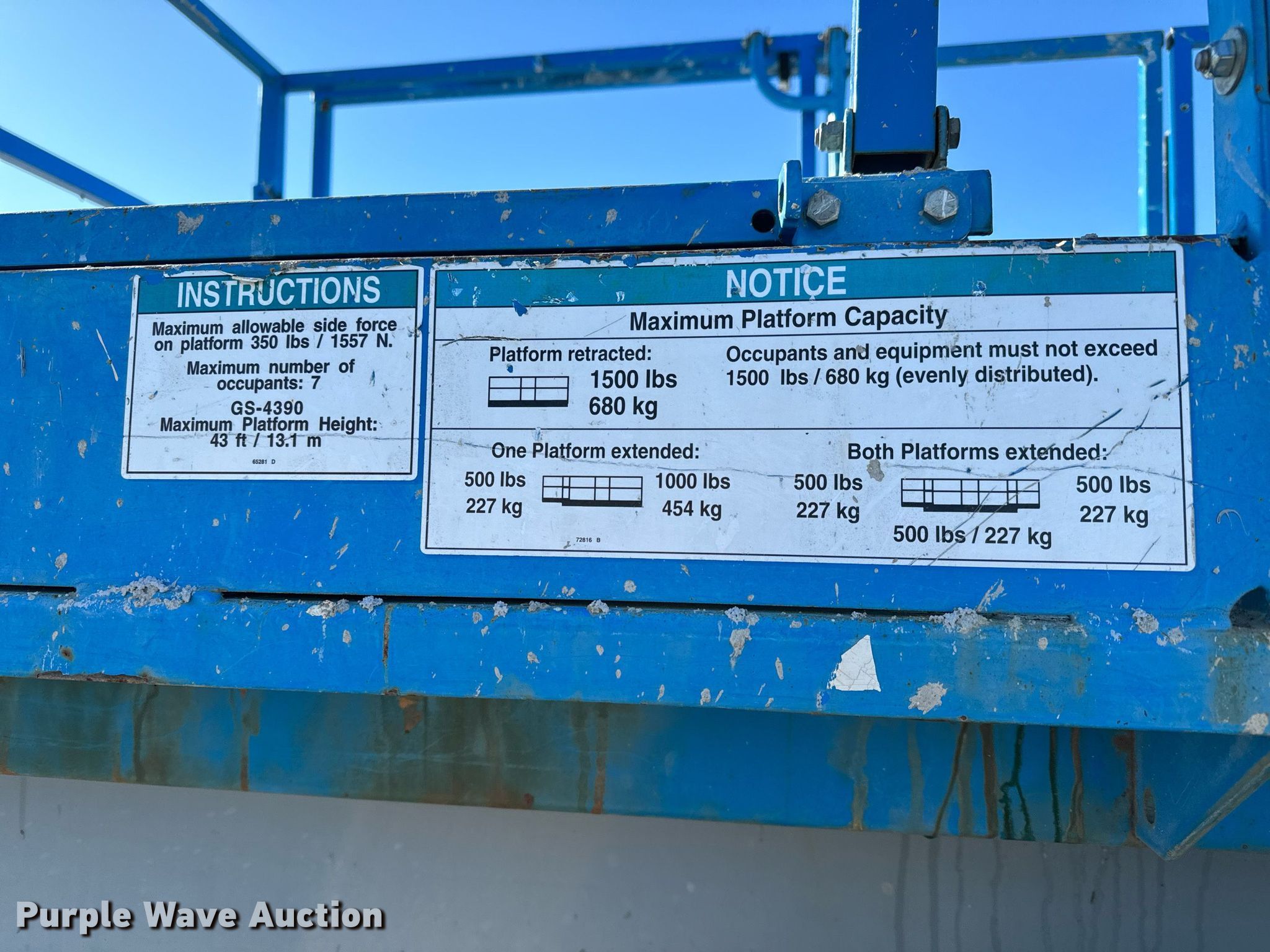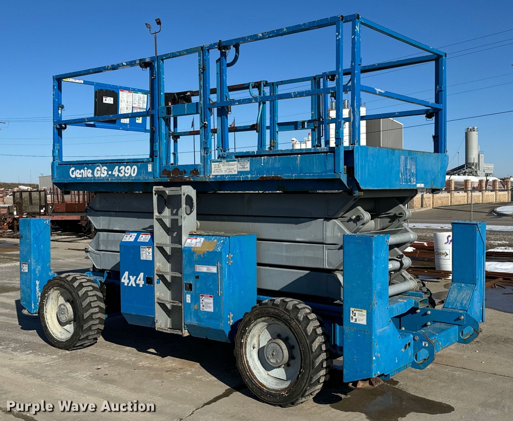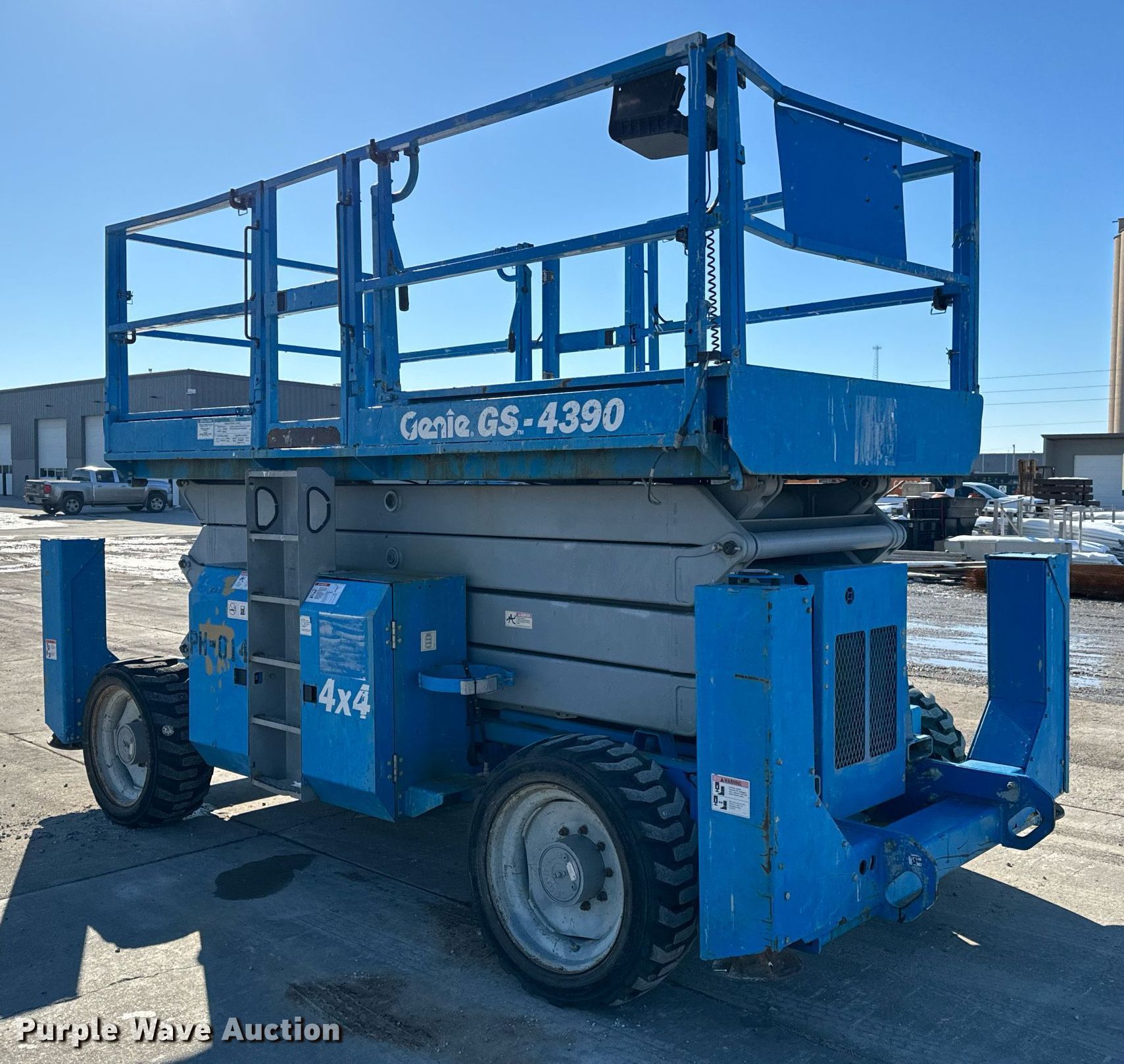 Purple Wave is selling a used Scissor or Vertical Lift in Kansas. This item is a 2007 Genie GS-4390 scissor lift with the following: Hours: 3,551 on meter, Serial: GS9007-43978, Unit #: PH-014