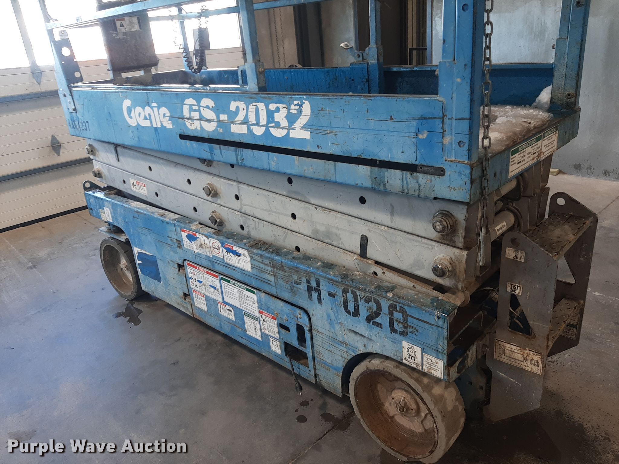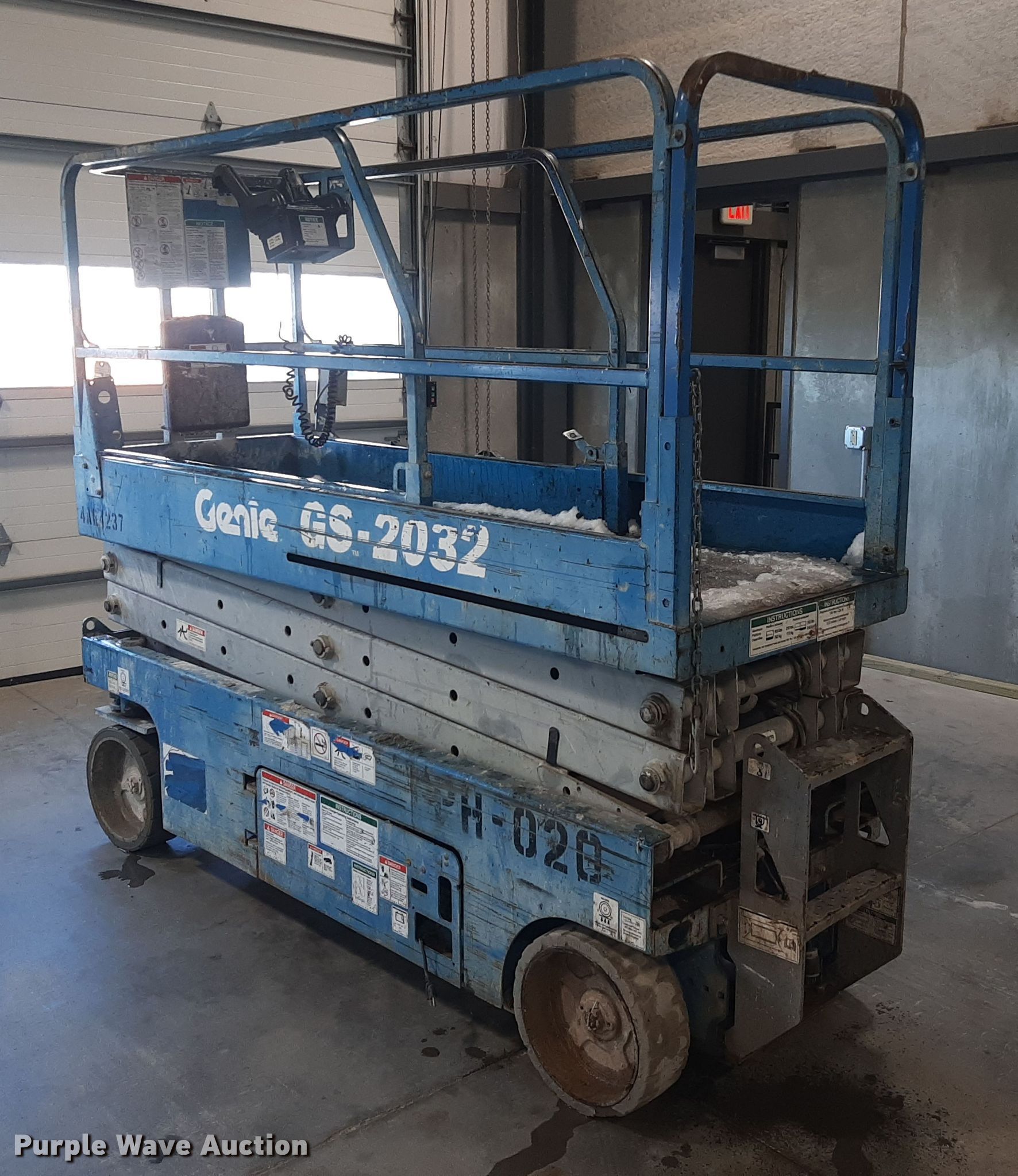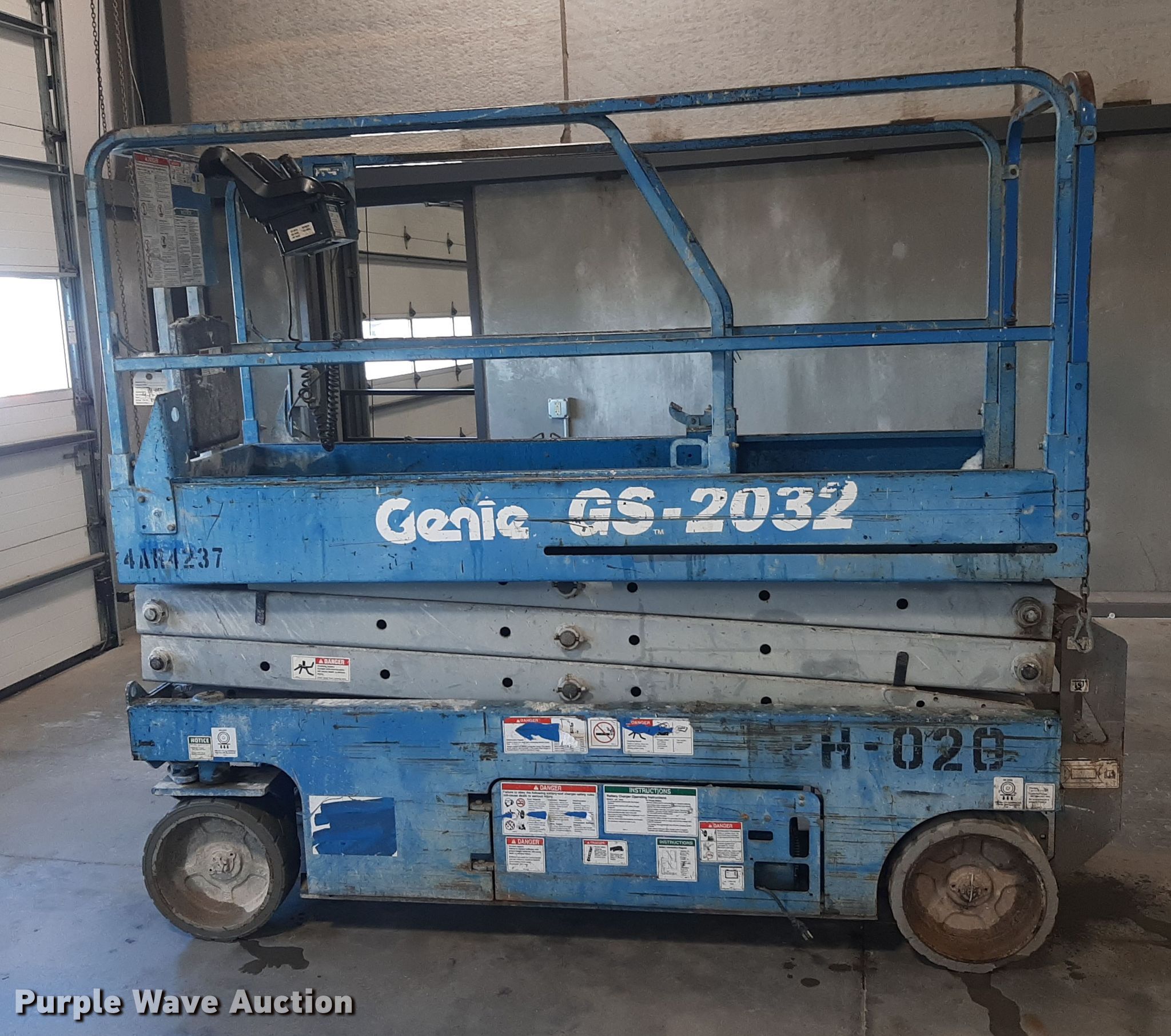 Purple Wave is selling a used Scissor or Vertical Lift in Kansas. This item is a Genie GS-2032 scissor lift with the following: Hours: 776 on meter, Unit #: PH-020