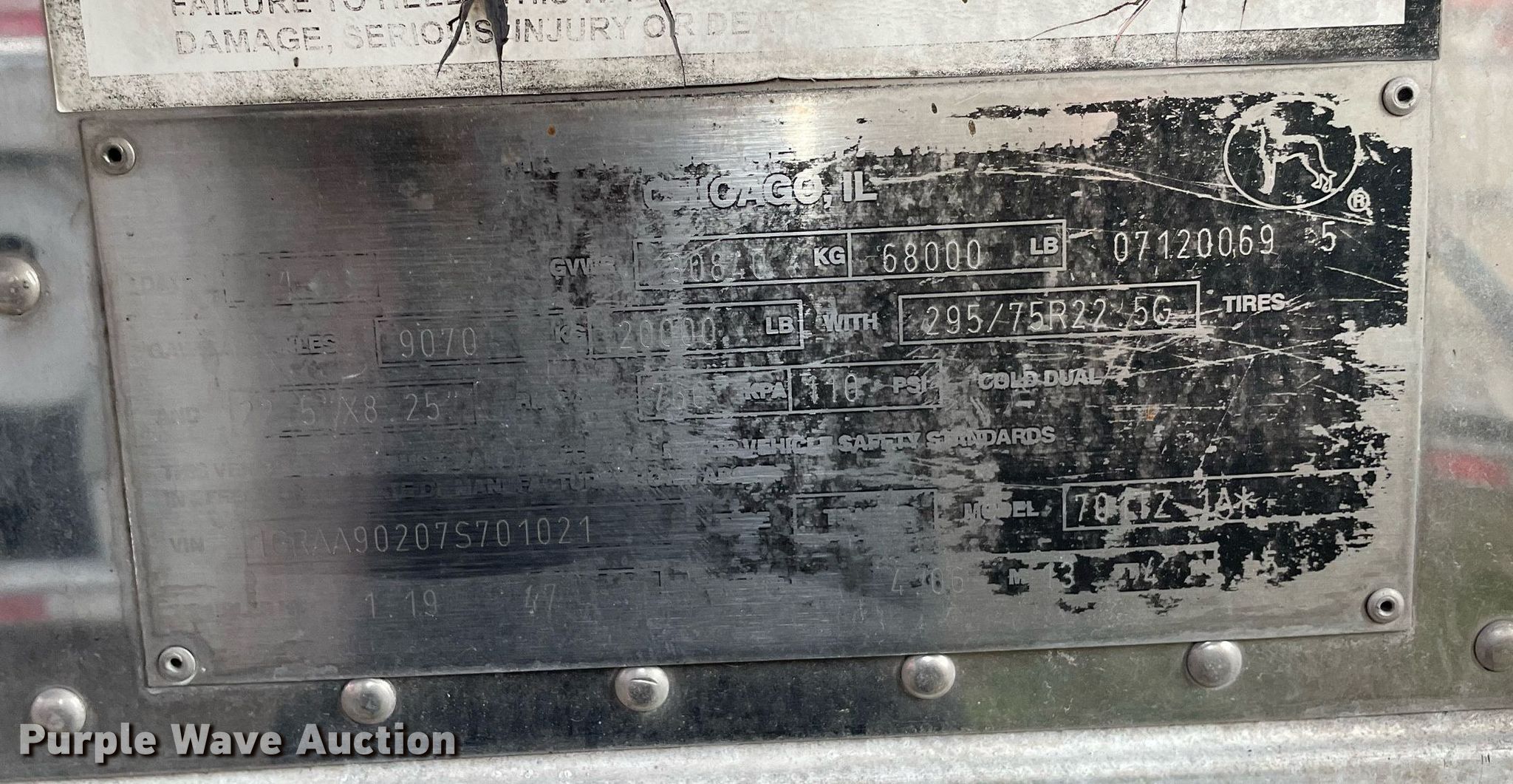 Purple Wave is selling a used Refrigerated Van Trailer in Florida. This item is a 2007 Great Dane refrigerated van trailer with the following: VIN: 1GRAA90207S701021, Unit #: 906617