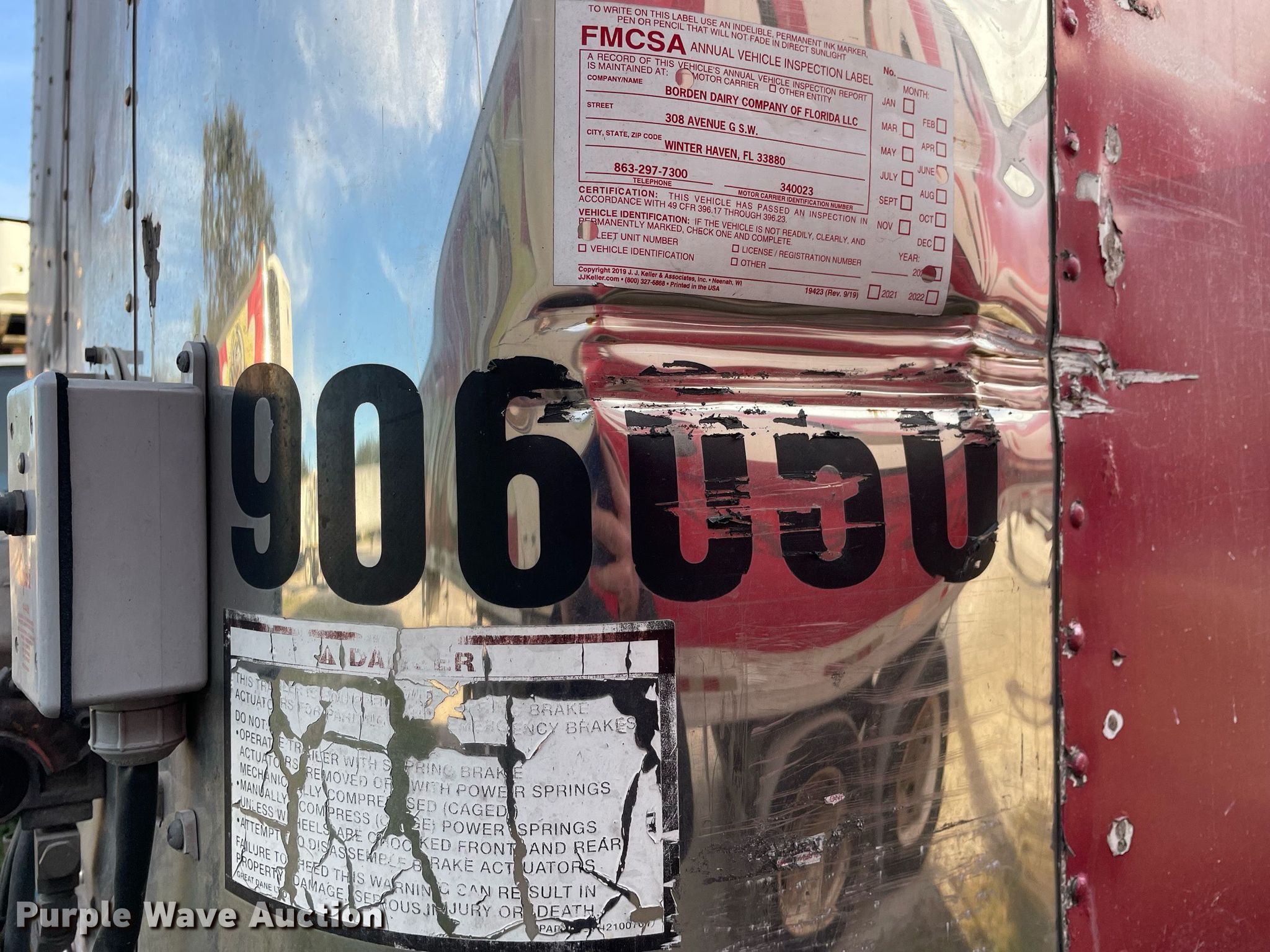 2007 Great Dane refrigerated van trailer. VIN: 1GRAA90227S701828, Unit #: 906050. Dimensions Overall: 48' L x 96" W. Features Deck type: Aluminum, E-track rail system. Chassis Landing gear: Dual, Suspension: Air, Brakes: Air, Axles: Tandem, Sliding. Tires Steel wheels, Size: 295/75R22.5. Notes Refrigeration unit missing. Florida title. Titles will be distributed after confirmation of payment and removal. Title distribution may be delayed up to 30 days from verification of funds. New Dairy Opco, LLC, d/b/a Borden Dairy. 308 Avenue G Southwest. Winter Haven, FL 33880