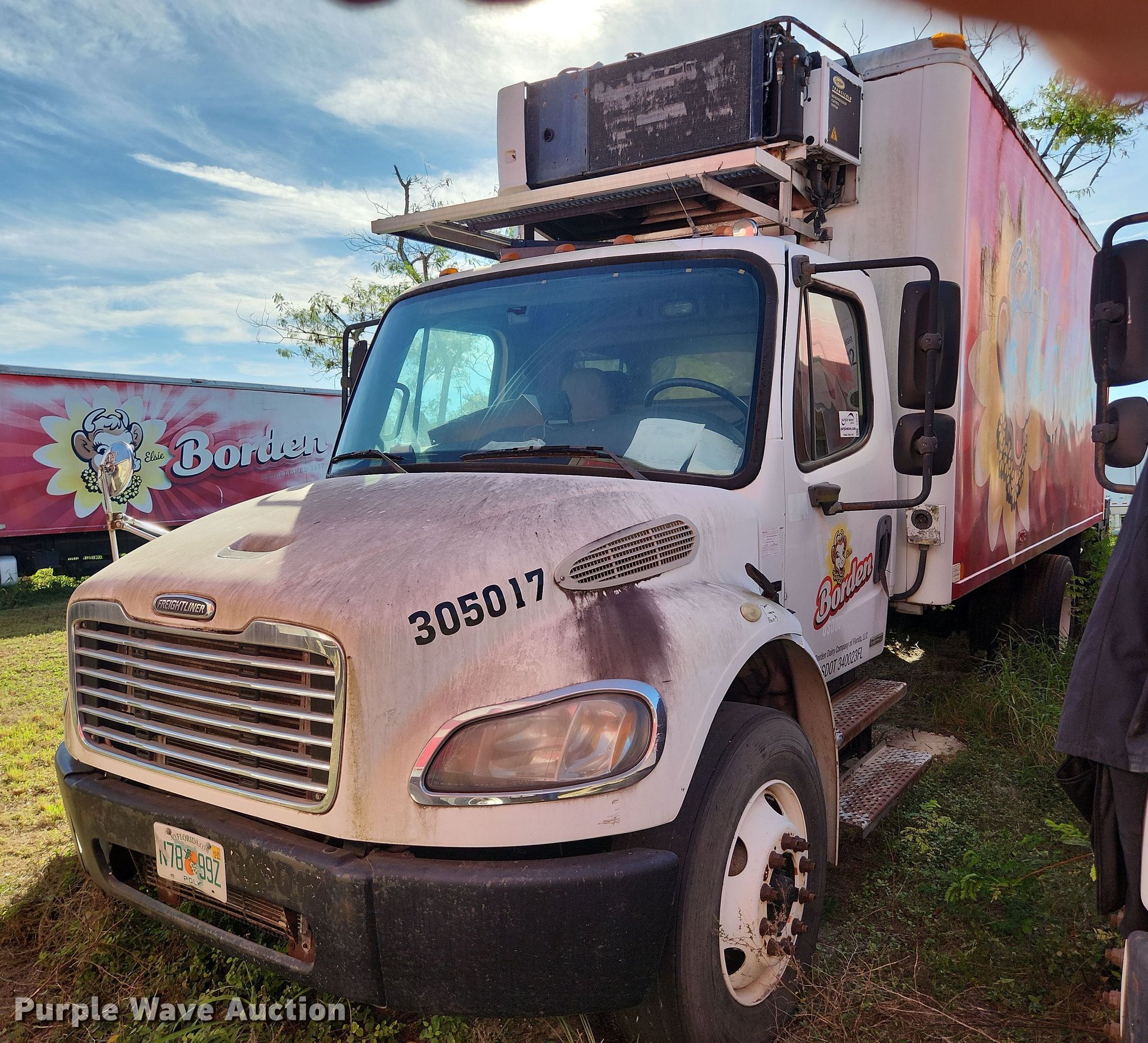 2005 Freightliner M2 106 box truck. Miles: Unknown, VIN: 1FVACXCS15HV25017, Unit #: 305017. Engine Mercedes-Benz , Displacement: 6.4L, Cylinders: 6, Fuel type: Diesel. Transmission Allison , Automatic. Chassis Axles: Single, Suspension: Spring, Brakes: Air, GVWR: 33,000 lbs. Interior AC, Heat, Heated mirrors, Cruise control. Features Box bed Johnson , 20' L x 96" W x 86" H, Floor: Steel, End gate lift Maxon, Capacity: 3,000 lbs, Refrigeration unit Carrier, Hours: 34,800.. Tires Size: 295/75R22.5. Notes Dead battery, Non-operational refrigeration unit , Non-operational unit. Florida title. Mileage has not been verified. Exempt will be written in the odometer disclosure on the title. Titles will be distributed after confirmation of payment and removal. Title distribution may be delayed up to 30 days from verification of funds. New Dairy Opco, LLC, d/b/a Borden Dairy. 308 Avenue G Southwest. Winter Haven, FL 33880