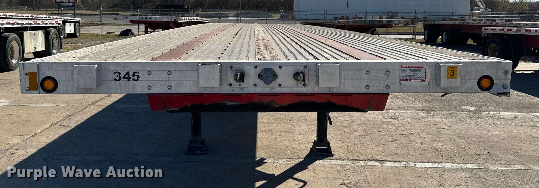 2012 Doonan 4820BLKTTIKB flatbed trailer. VIN: 1D9BV482201609669, Unit #: 345. Dimensions Overall: 48' L x 102" W, Deck: 47' 8" L x 96" W. Features Deck type: Aluminum. Chassis Landing gear: Dual, Suspension: Air, Brakes: Air, Axles: Spread, GVWR: 90,000 lbs, GAWR: 22,700 lbs. Tires Steel wheels, Size: 295/75R22.5. Oklahoma title. 1020 Fort Gibson Rd. Catoosa, OK 74015