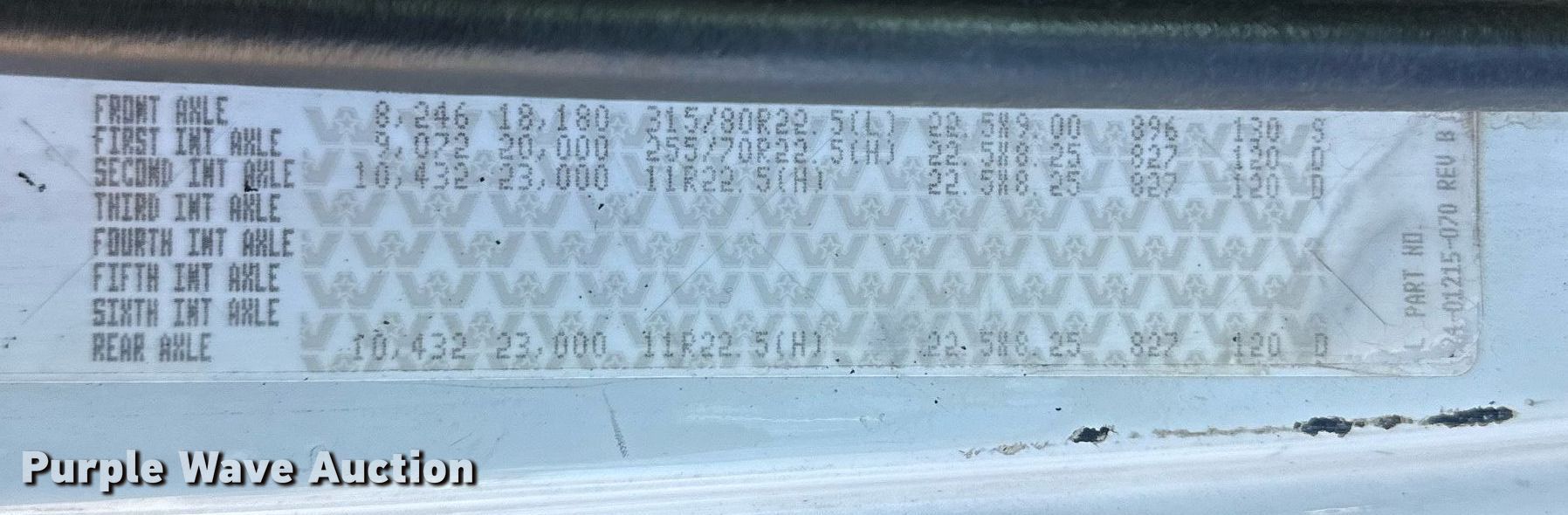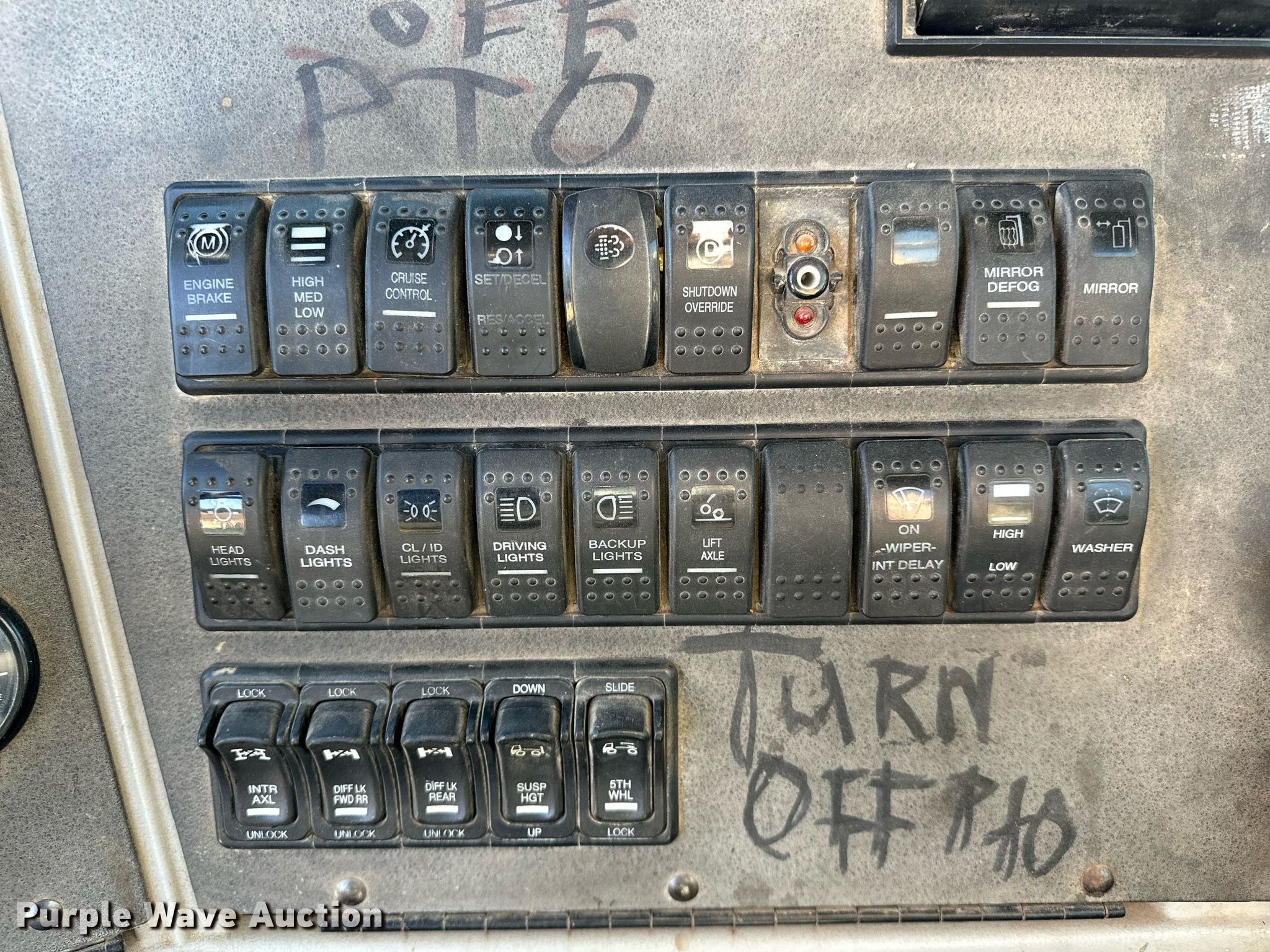 2013 Western Star 4900 semi truck. Miles: 332,574 on odometer, Miles or hours may vary, unit still in use, VIN: 5KJNAEDRXDPBW5369. Engine Detroit Diesel, Cylinders: 6, Fuel type: Diesel, Engine brake. Transmission Eaton Fuller, Manual, Speed: 18. Chassis Axles: Tandem, Pusher axle, Differential lock: Full, Suspension: Air Dump valves, Brakes: Air, PTO, Wet kit, GVWR: 76,000 lbs FAWR: 18,180 lbs, IAWR: 23,000 lbs, RAWR: 23,000 lbs, Lift axle GAWR: 20,000 lbs. Interior AC, Heat, Heated mirrors, Power windows, Power locks, Cruise control, Air ride cab. Features Deck plate: Aluminum, Fifth wheel type: Air operated, Hydraulic lift, Sliding, Rolling tailboard, Fuel tank: Dual. Tires Size: 11R22.5, Lift axle: 255/70R22.5. Notes Trailer not included, Contents not included, Chains and binders not included, Dash warning indicator: Check engine, ABS, Windshield chipped or cracked. Oklahoma title. Title distribution may be delayed up to 14 days from verification of funds. Tulsa, OK 74132
