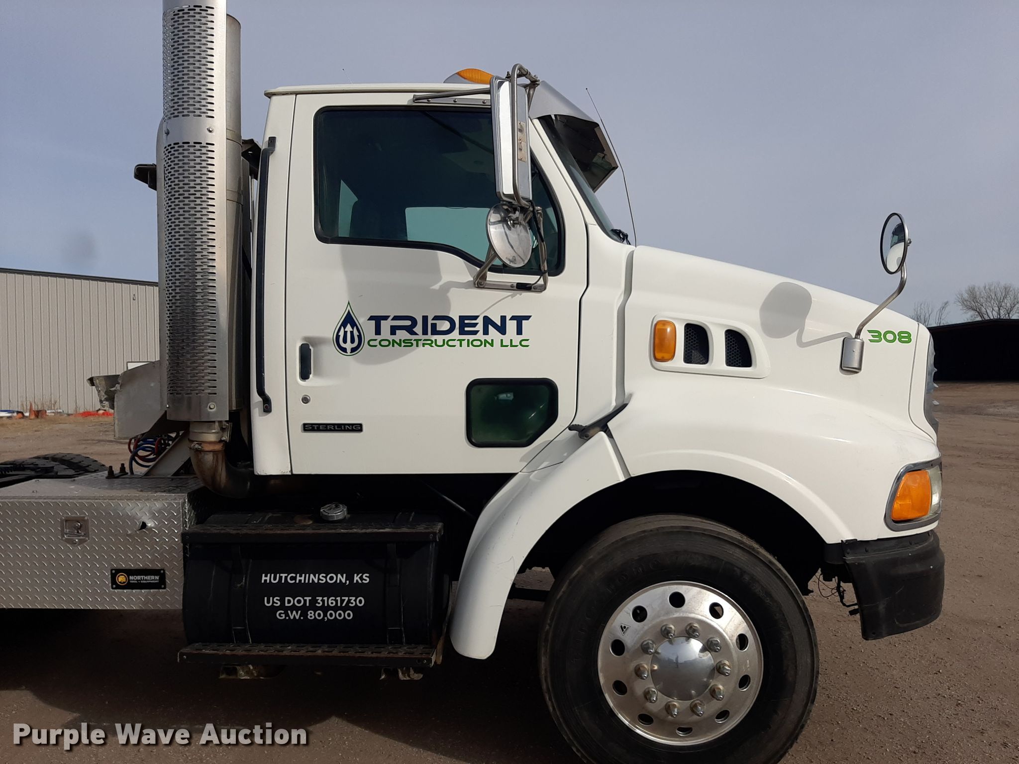2001 Sterling 9500 semi truck. Miles: 552,189 on odometer, VIN: 2FWYHSYB61AG41336. Engine Caterpillar C15, Serial: 6NZ18332, Displacement: 14.6L, Cylinders: 6, Fuel type: Diesel. Transmission Manual, Speed: 10. Chassis Axles: Tandem, Differential lock: Inter-axle, Suspension: Air Dump valves, Brakes: Air. Interior AC, Heat, Heated mirrors, Cruise control, Air ride cab. Features Deck plate: Aluminum, Fifth wheel type: Air operated, Sliding, Fuel tank: Dual. Tires Front: 295/75R22.5, Rear: 11R22.5. Notes Dash warning indicator: Brake. Kansas title. Title distribution may be delayed up to 30 days from verification of funds. Alans Excavating. Augusta, KS 67010