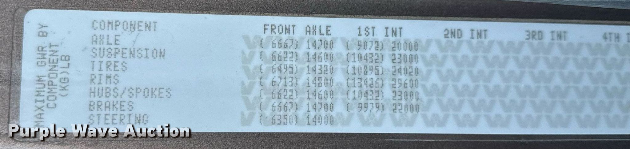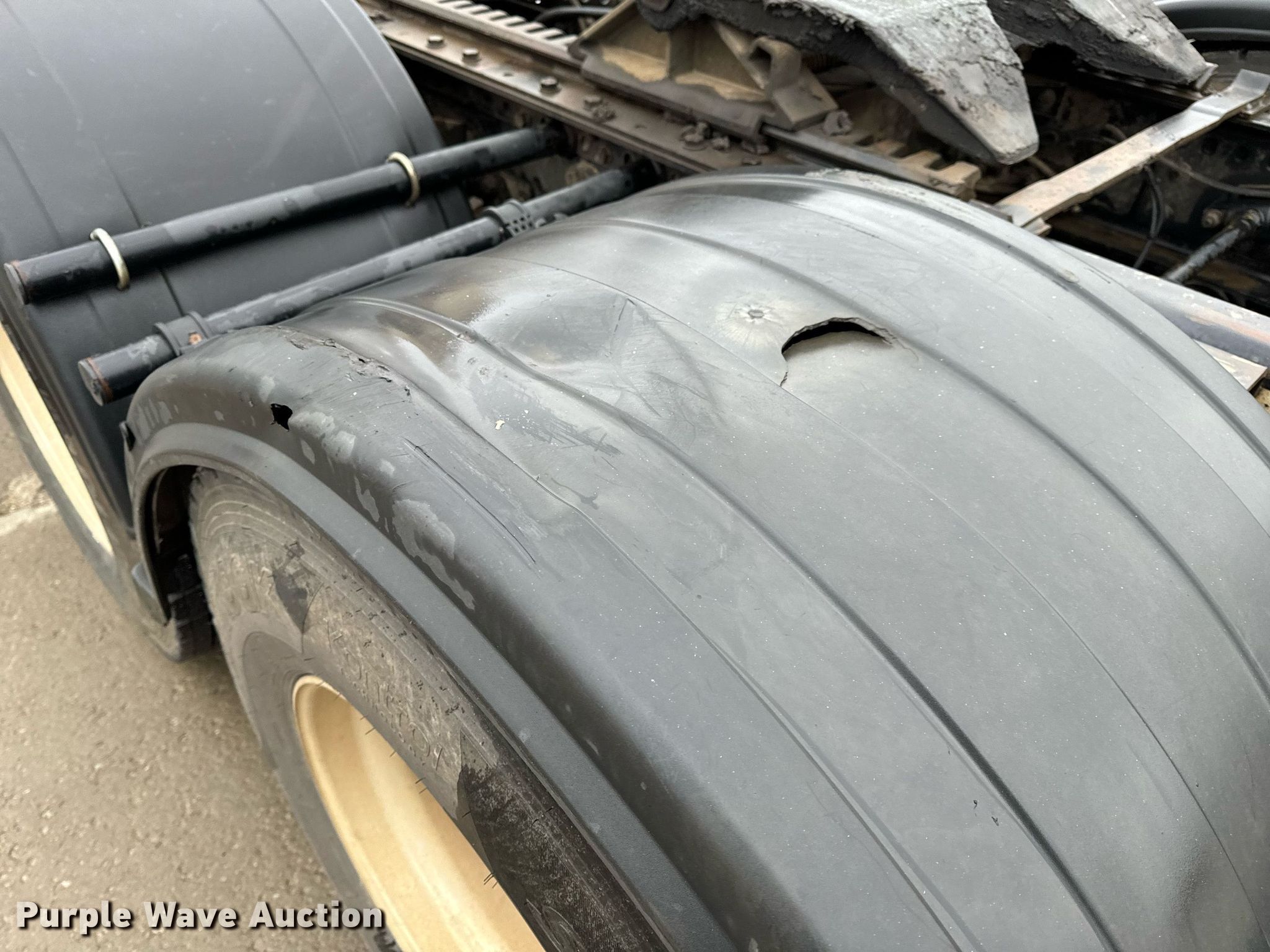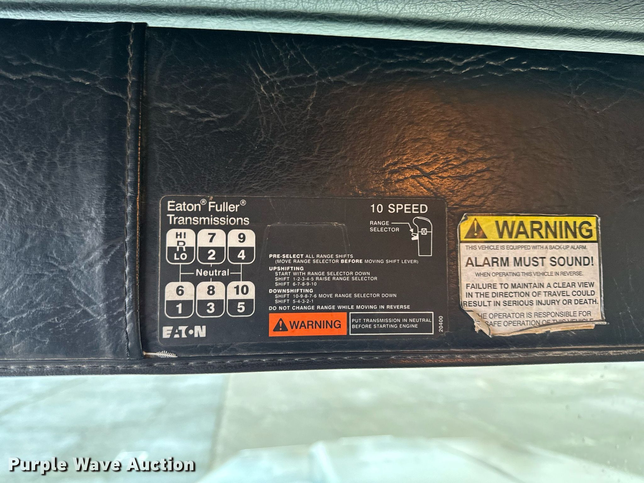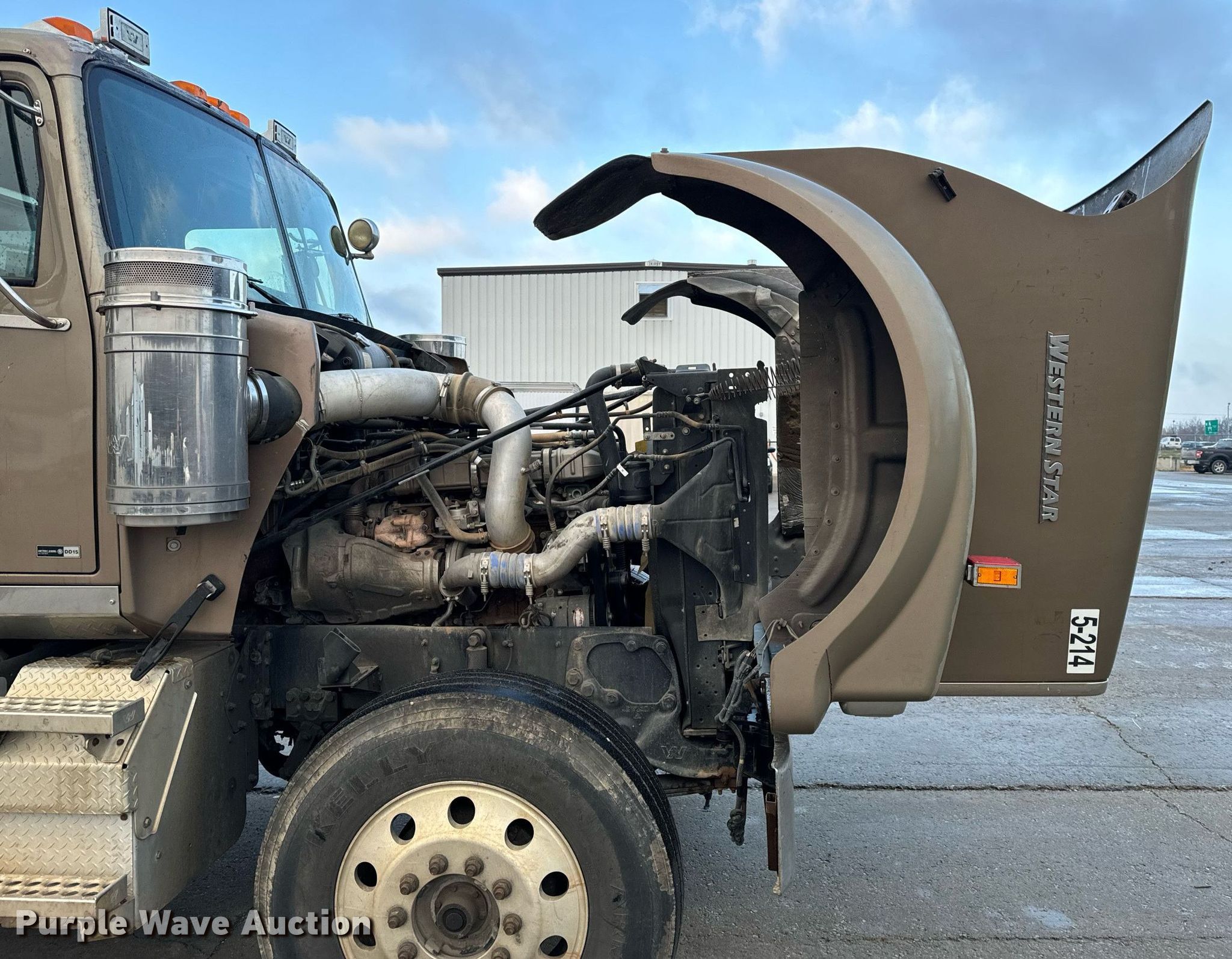2012 Western Star 4900FA semi truck. Miles: 469,748 on odometer, VIN: 5KJJAEDR5CPBK3835, Unit #: 5-214. Engine Detroit Diesel DD15, Displacement: 14.8L, Cylinders: 6, Fuel type: Diesel, Engine brake. Transmission Eaton Fuller, Manual, Speed: 10. Chassis Axles: Triple, Pusher axle, Differential lock: Full, Suspension: Air, Brakes: Air, PTO, Wet kit, GVWR: 54,000 lbs FAWR: 14,000 lbs, IAWR: 20,000 lbs, RAWR: 20,000 lbs. Interior AC, heat, Heated mirrors, Power windows, Cruise control. Features Deck plate: Aluminum, Fifth wheel type: Air operated, sliding, Fuel tank: Dual. Tires Size: 11R24.5, Lift axle: 295/75R22.5. Notes Roof damage. Missouri title. Title distribution may be delayed up to 30 days from verification of funds. Emery Sapp & Sons, Inc... 5670 N Hwy 763. Columbia, MO 65202