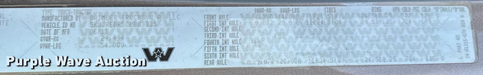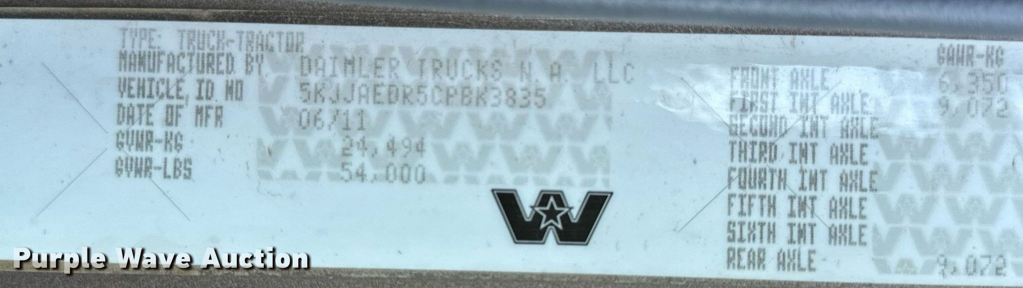 Purple Wave is selling a used Truck Tractor in Missouri. This item is a 2012 Western Star 4900FA semi truck with the following: Miles: 469,748 on odometer, VIN: 5KJJAEDR5CPBK3835, Unit #: 5-214