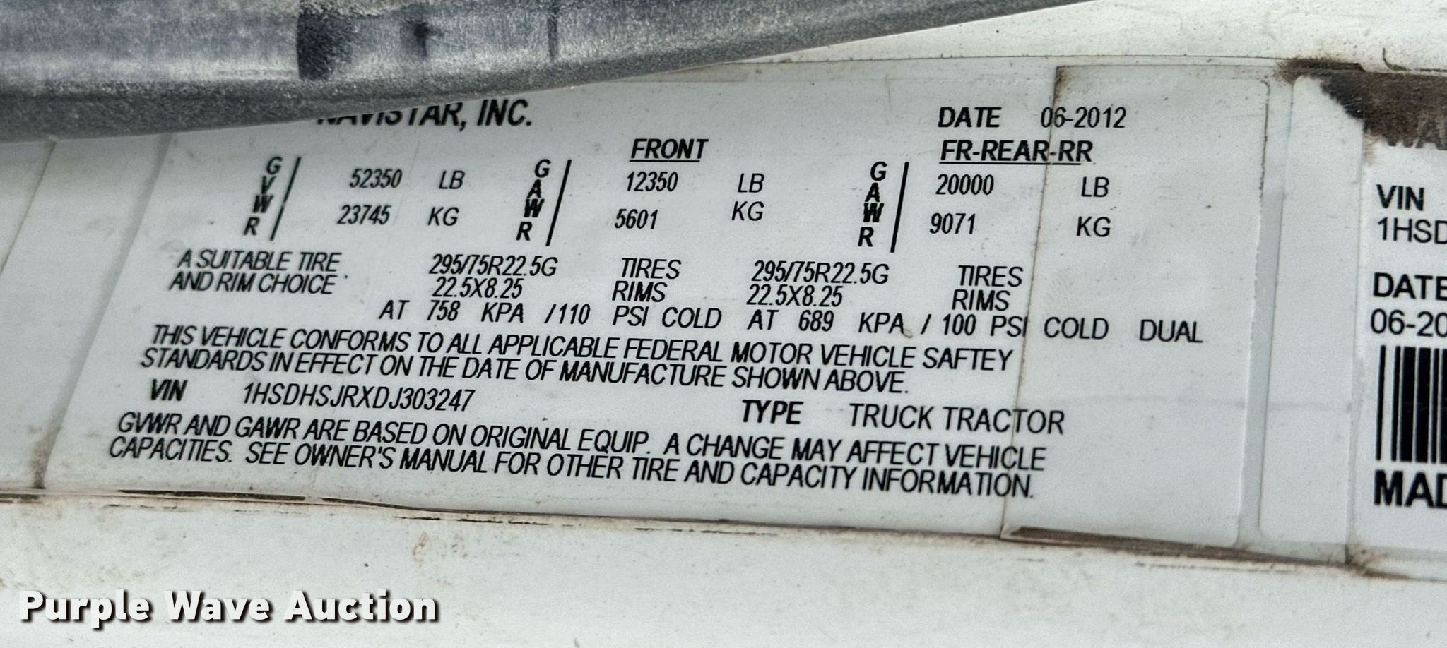 Purple Wave is selling a used Truck Tractor in Oklahoma. This item is a 2013 International ProStar Plus semi truck with the following: Miles: 341,664 on odometer, VIN: 1HSDHSJRXDJ303247, Unit #: 3247