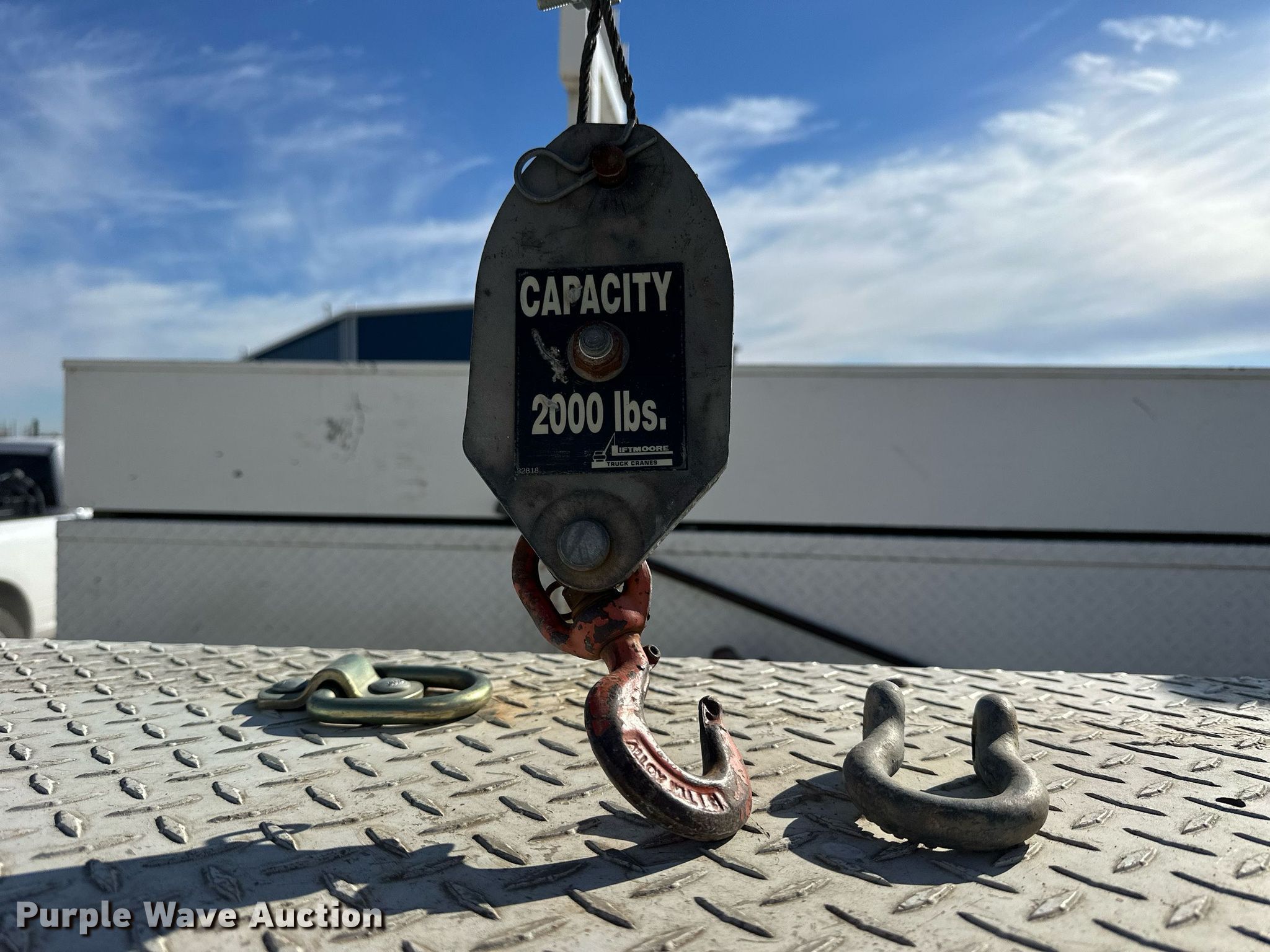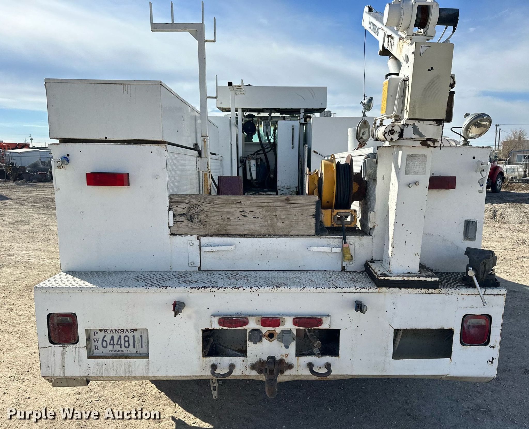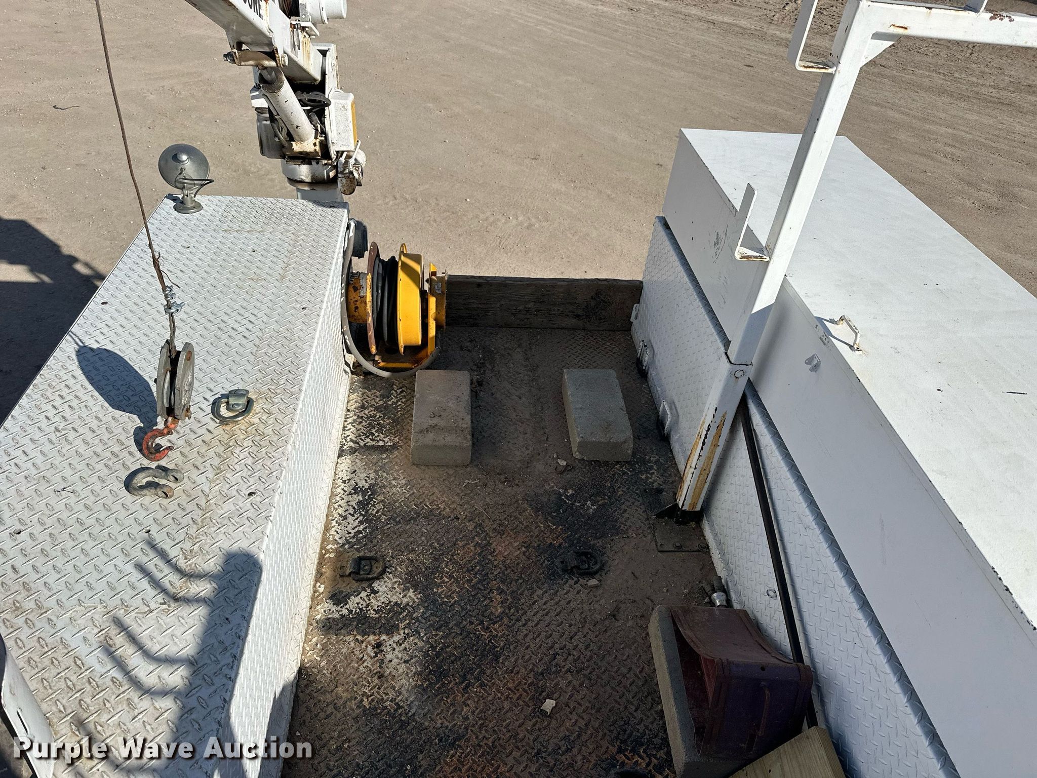 2000 GMC C7500 utility / service truck. Miles: 99,781 on odometer, VIN: 1GDM7H1C4YJ508199. Engine Caterpillar 3126, Serial: 8YL17446, Displacement: 7.2L, Cylinders: 6, Fuel type: Diesel. Transmission Allison , Automatic. Chassis Axles: Single, Suspension: Spring, Brakes: Air, PTO, GVWR: 33,000 lbs. Interior AC, Heat, Brake controller. Features Bed Knapheide 6109HC, 15' L x 95" W, Generator Boss 8060-UBI, Hours: 1,972 on meter, Fuel type: Gas, Air compressor Silvan industries, Crane Liftmoore 206, Maximum lift capacity: 2,000 lbs. Tires Size: 11R22.5. Kansas title. Title distribution may be delayed up to 14 days from verification of funds. M&D of Hays, Inc.. 1116 E 8th. Hays, KS 67601