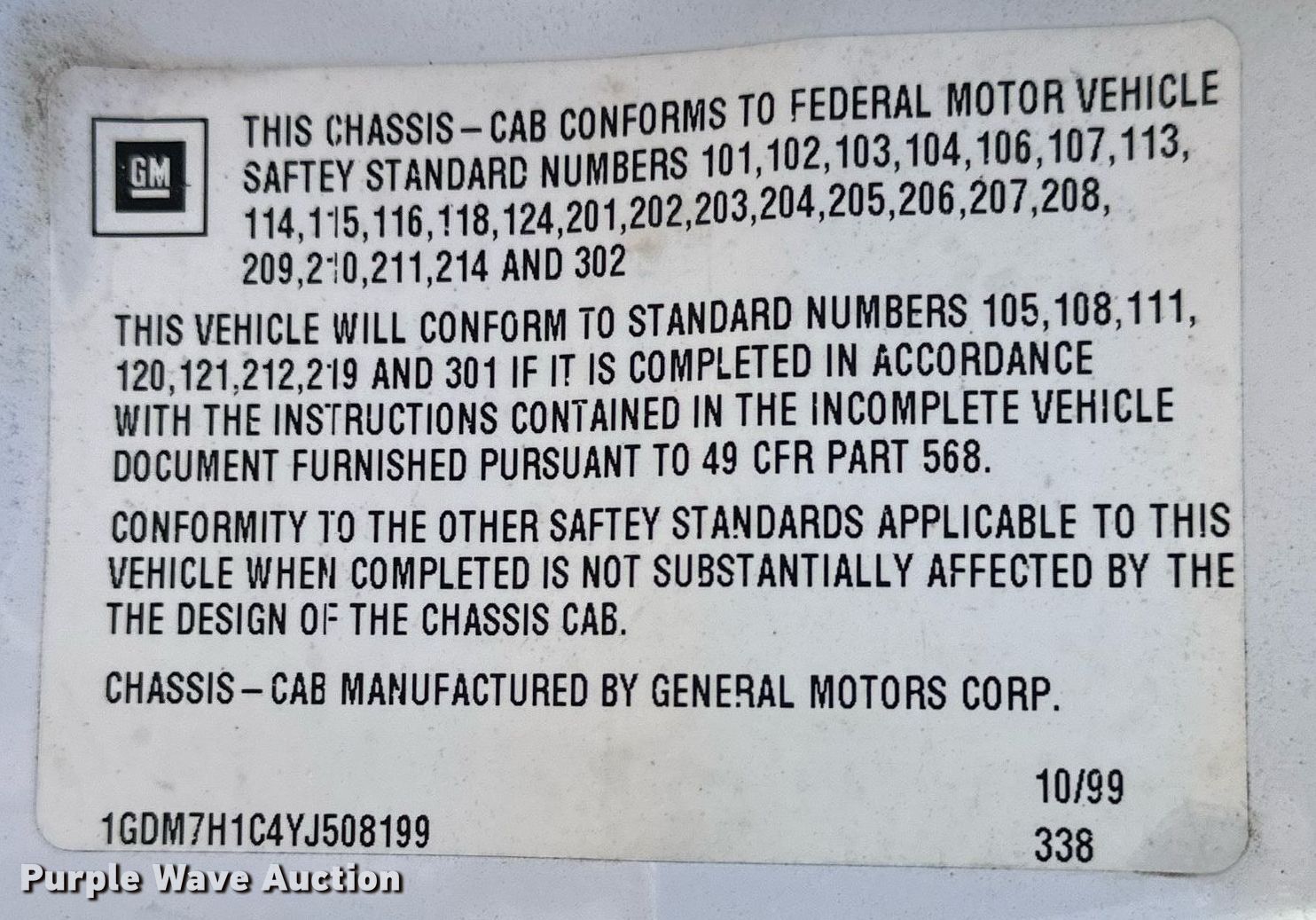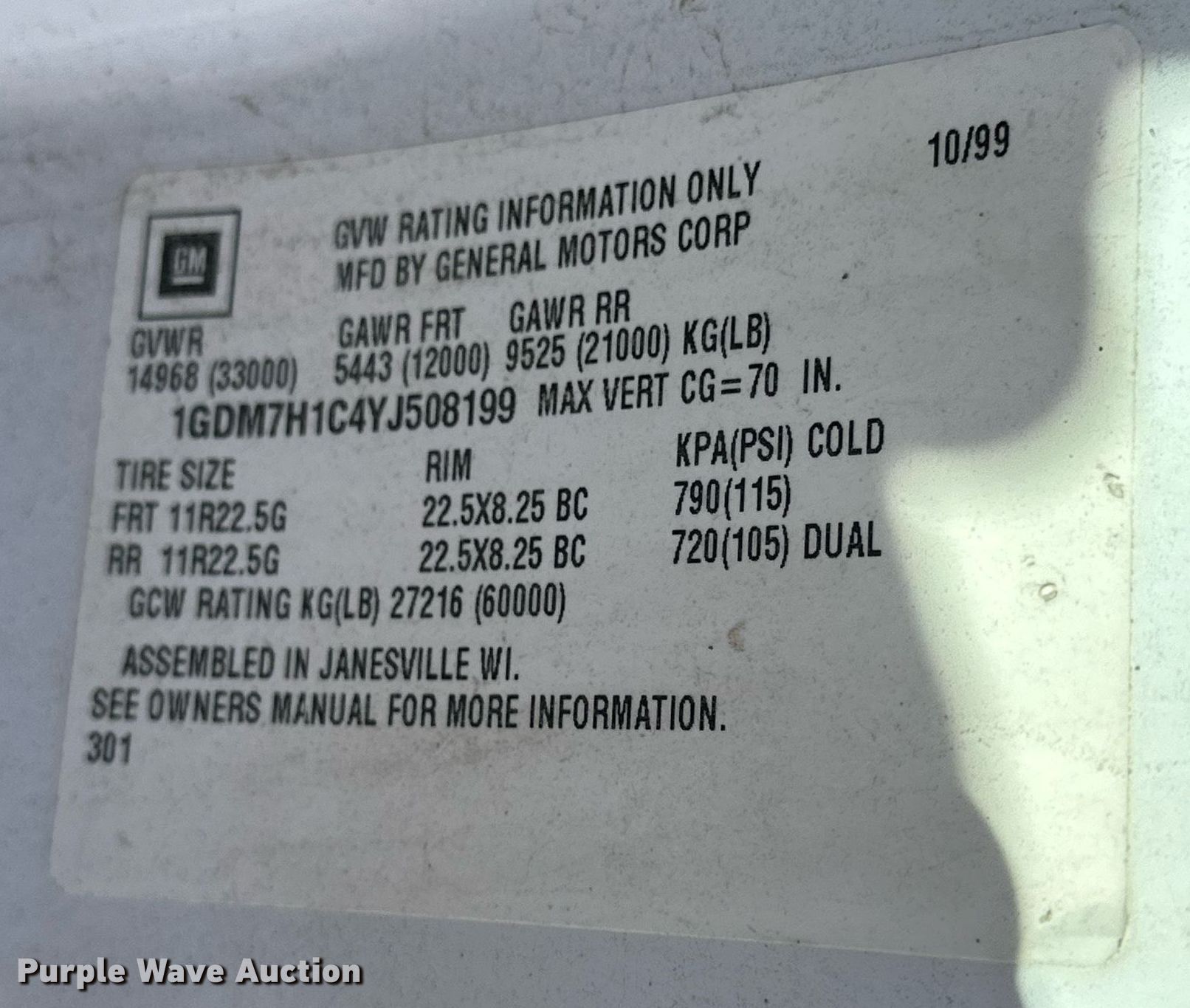 Purple Wave is selling a used Service Truck in Kansas. This item is a 2000 GMC C7500 utility / service truck with the following: Miles: 99,781 on odometer, VIN: 1GDM7H1C4YJ508199