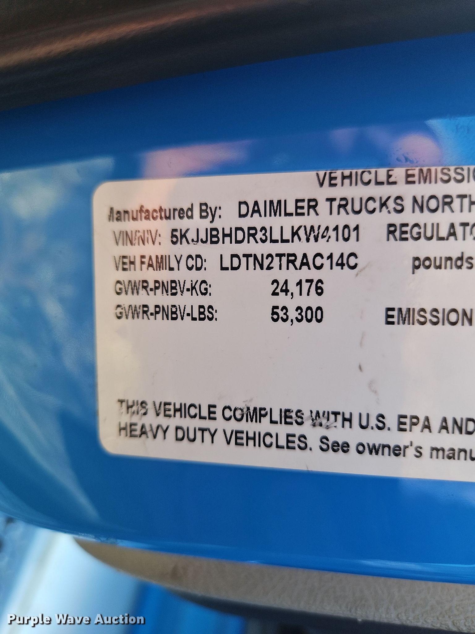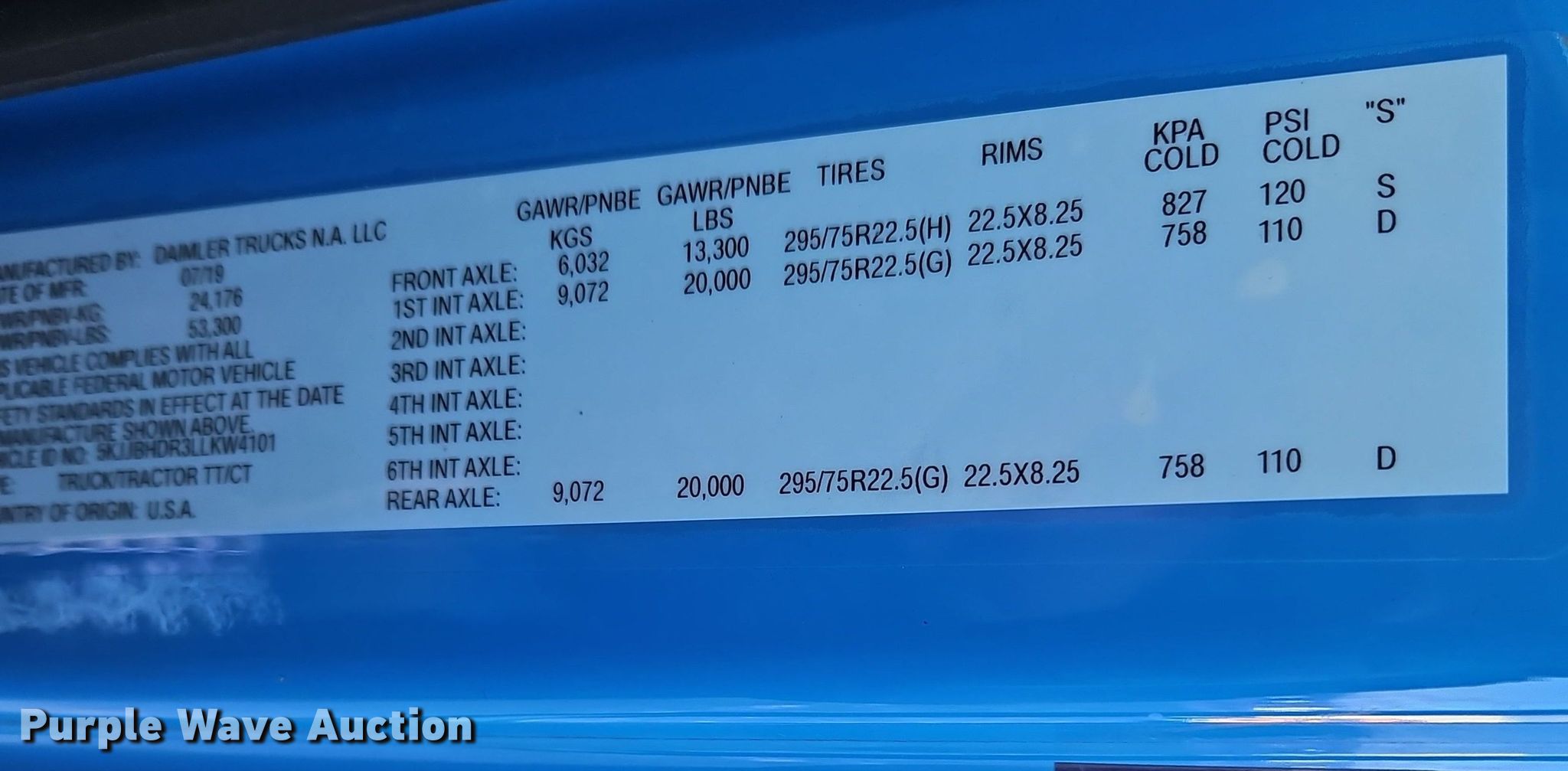 2020 Western Star 5700XE semi truck. Miles: 240,186 on odometer, VIN: 5KJJBHDR3LLKW4101. Engine Detroit Diesel DD15, Displacement: 14.8L, Cylinders: 6, Fuel type: Diesel, Engine brake. Transmission Automated manual. Chassis Axles: Tandem, Differential lock: Inter-axle, Suspension: Air Dump valves, Brakes: Air, GVWR: 53,300 lbs FAWR: 13,300 lbs, IAWR: 20,000 lbs, RAWR: 20,000 lbs. Interior AC, Heat, Heated mirrors, Power windows, Power locks, Cruise control, Air ride cab, Sleeper Sleeper length: 72", Beds: Single, Refrigerator, Rear climate control. Features Deck plate: Aluminum, Fifth wheel type: Air operated, Sliding, Fuel tank: Dual. Tires Front: 275/80R22.5, Rear: 295/75R22.5. Kentucky title. Seller is an Kentucky licensed motor vehicle dealer. The buyer may be required to pay sales tax and/or registration fees to the dealer prior to taking possession. Title will be assigned and distributed by the dealer. Please contact the seller for distribution questions. BOYD COMPANY. 1400 Cecil Avenue. Louisville, KY 40211