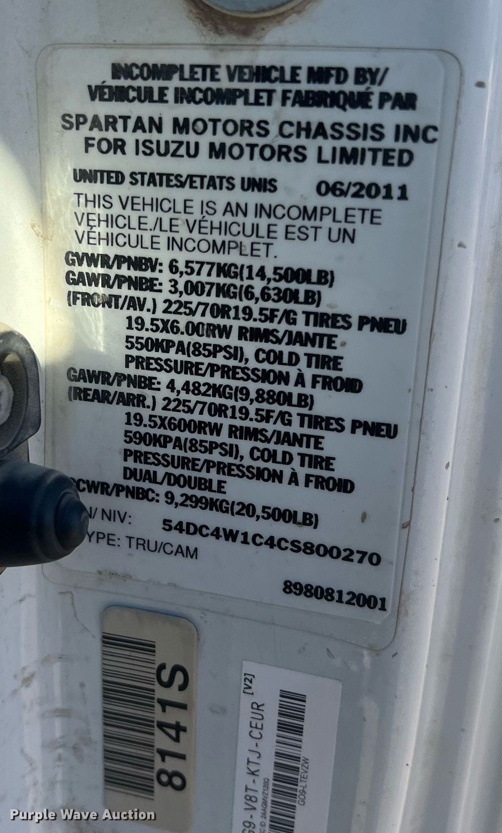 Purple Wave is selling a used Flat Bed Truck in Kansas. This item is a 2012 Isuzu NPR flatbed truck with the following: VIN: 54DC4W1C4CS800270