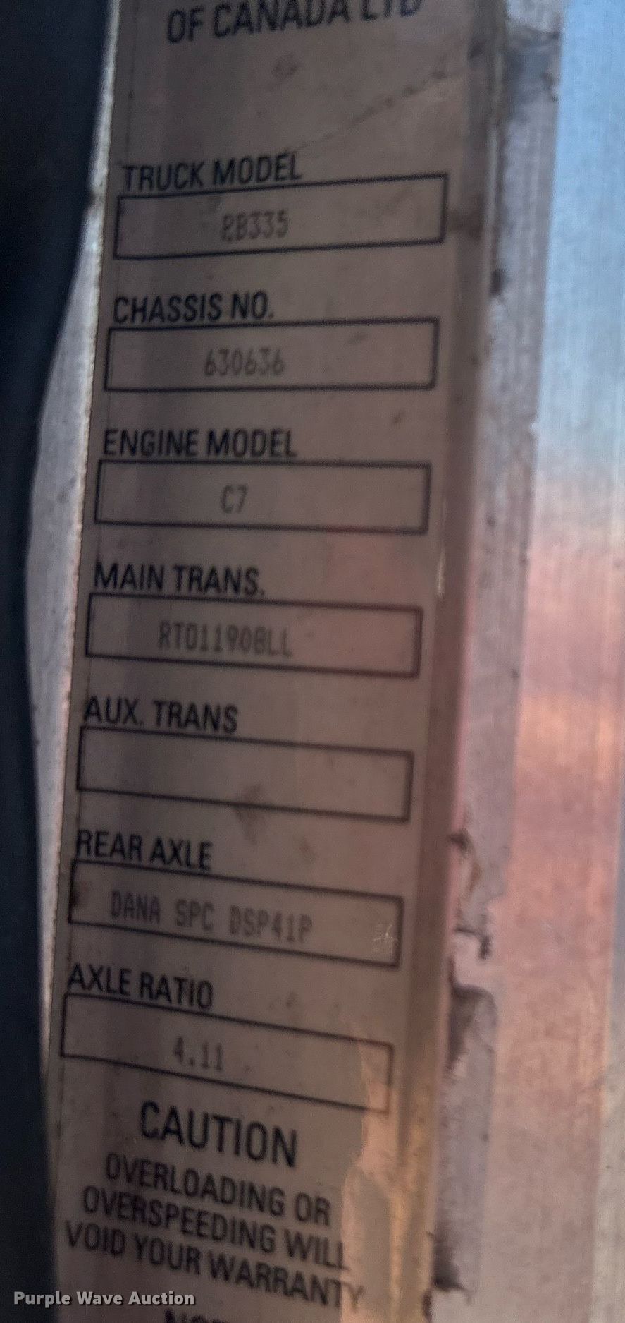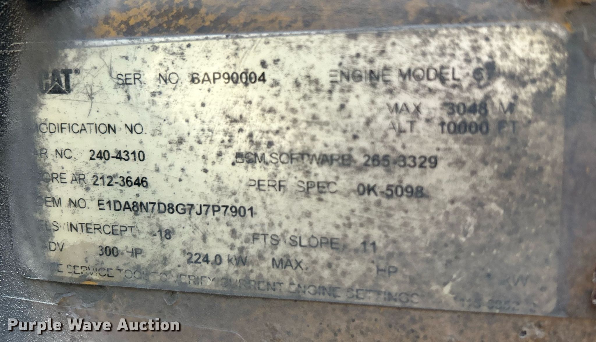 2006 Peterbilt 335 vacuum truck. Miles: 394,348 on odometer, Hours: 27,822 on meter, VIN: 2NPLLD9X46M630636. Engine Caterpillar C7, Serial: 6AP90004, Displacement: 7.2L, Cylinders: 6, Fuel type: Diesel, kW: 224. Transmission Manual, Speed: 8. Chassis Axles: Tandem, Suspension: Air, Brakes: Air, PTO, GVWR: 52,350 lbs. Interior AC, Heat, Heated mirrors. Features Tank bed Capacity: 3,000 gallons, Engine Honda GX390, Cylinders: 1, Fuel type: Gas, Vacuum pump Jurop. Tires Size: 11R22.5. Notes Windshield chipped or cracked, Non-operational Honda engine. Oklahoma title. Title distribution may be delayed up to 14 days from verification of funds. Brooks Grease Service. 3104 N Erie Ave. Tulsa, OK 74115