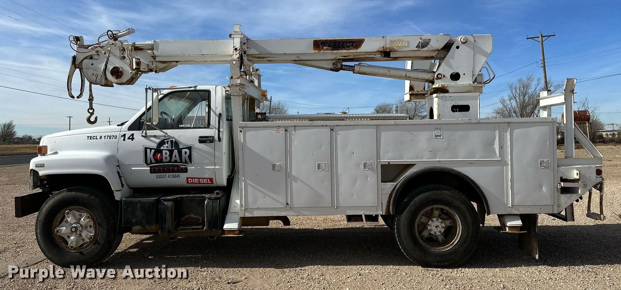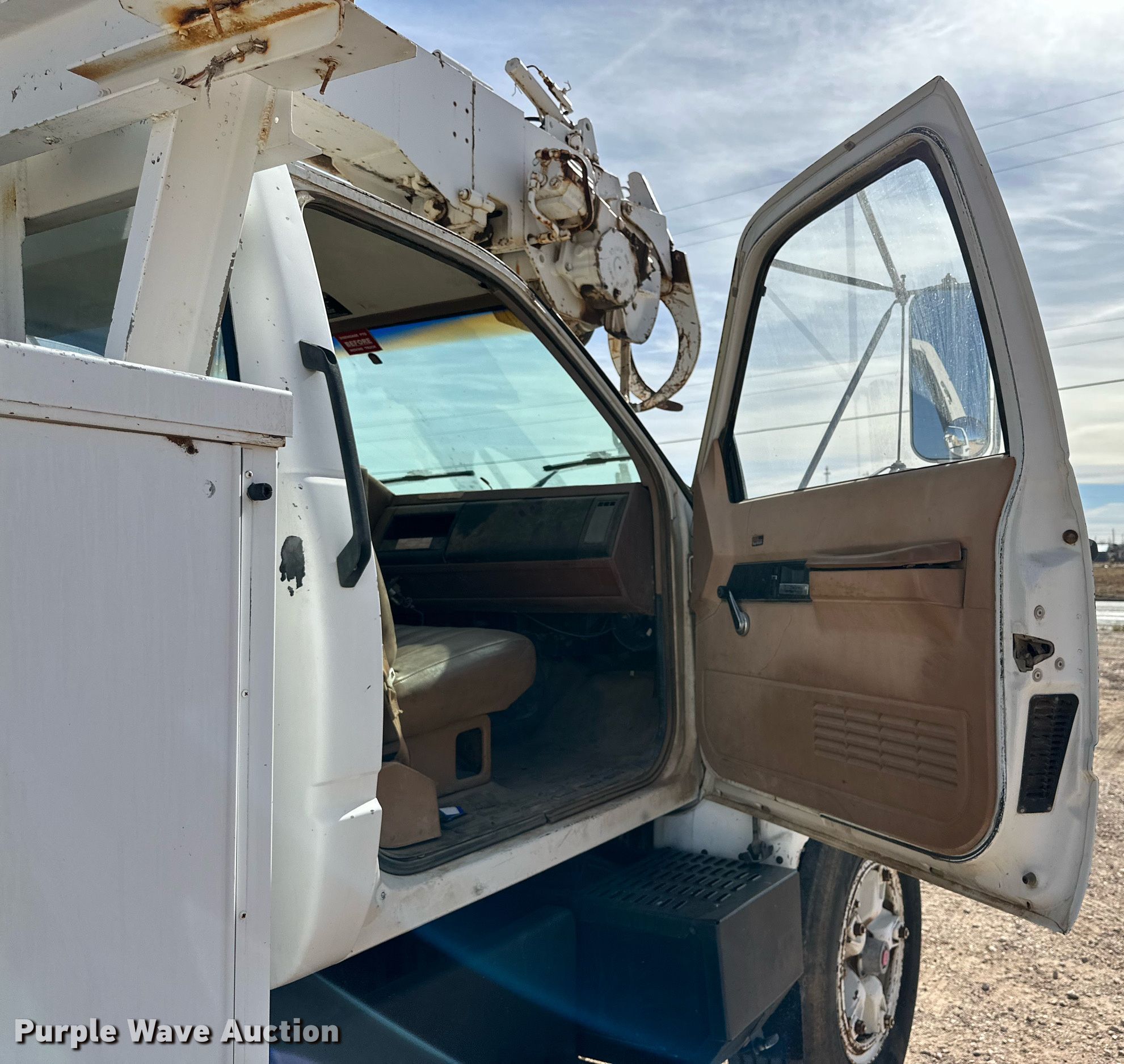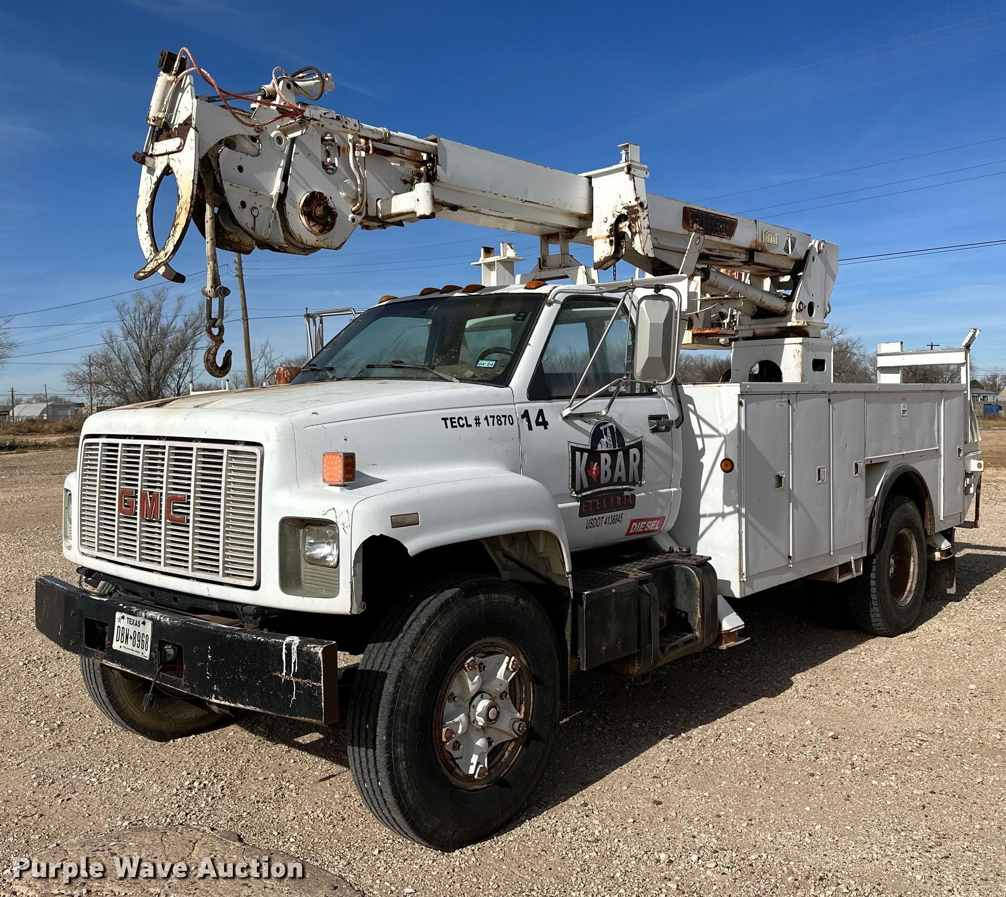 1991 GMC C6500 digger derrick truck. Miles: 130,417 on odometer, Hours: 1,643 on meter, VIN: 1GDM7H1J4MJ500662. Engine Caterpillar, Displacement: 6.6L, Cylinders: 6, Fuel type: Diesel. Transmission Manual, Speed: 5. Chassis Axles: Single, Suspension: Spring, Brakes: Air, PTO. Interior AC. Features Bed Baker, 15' L x 92" W, Boom Baker, Boom length: 17', Maximum lift capacity: 15,850 lbs, Maximum lift height: 45', Boom type: Articulating, Telescopic, Boom controls Platform/ basket, Material handler, Pole guide. Tires Size: 10.00R20. Notes Dead battery, Interior driver door handle issues, needs replaced. Texas title. Title distribution may be delayed up to 30 days from verification of funds. K-Bar Texas Electric Inc. 1311 Texas 114. Levelland, TX 79336