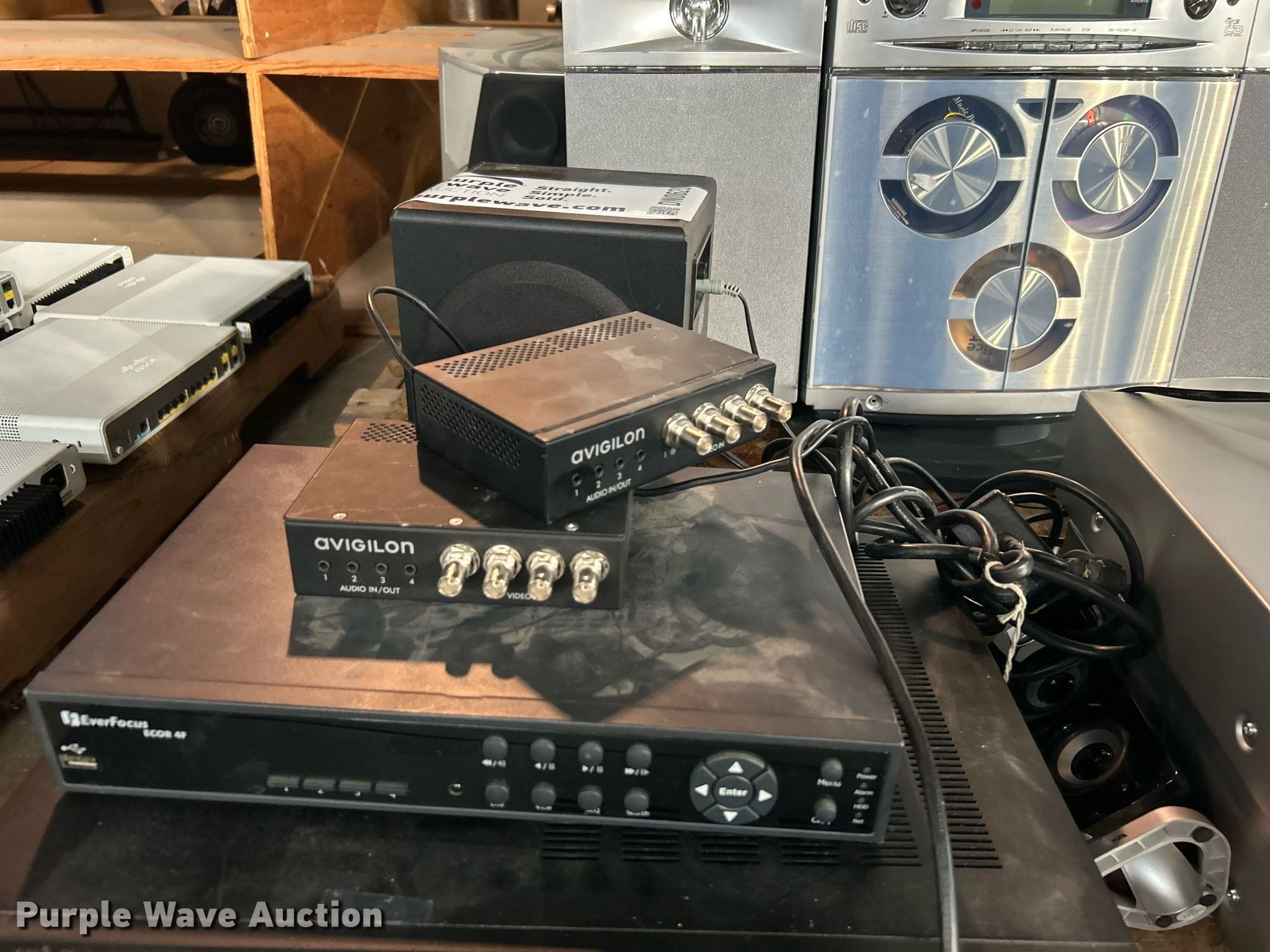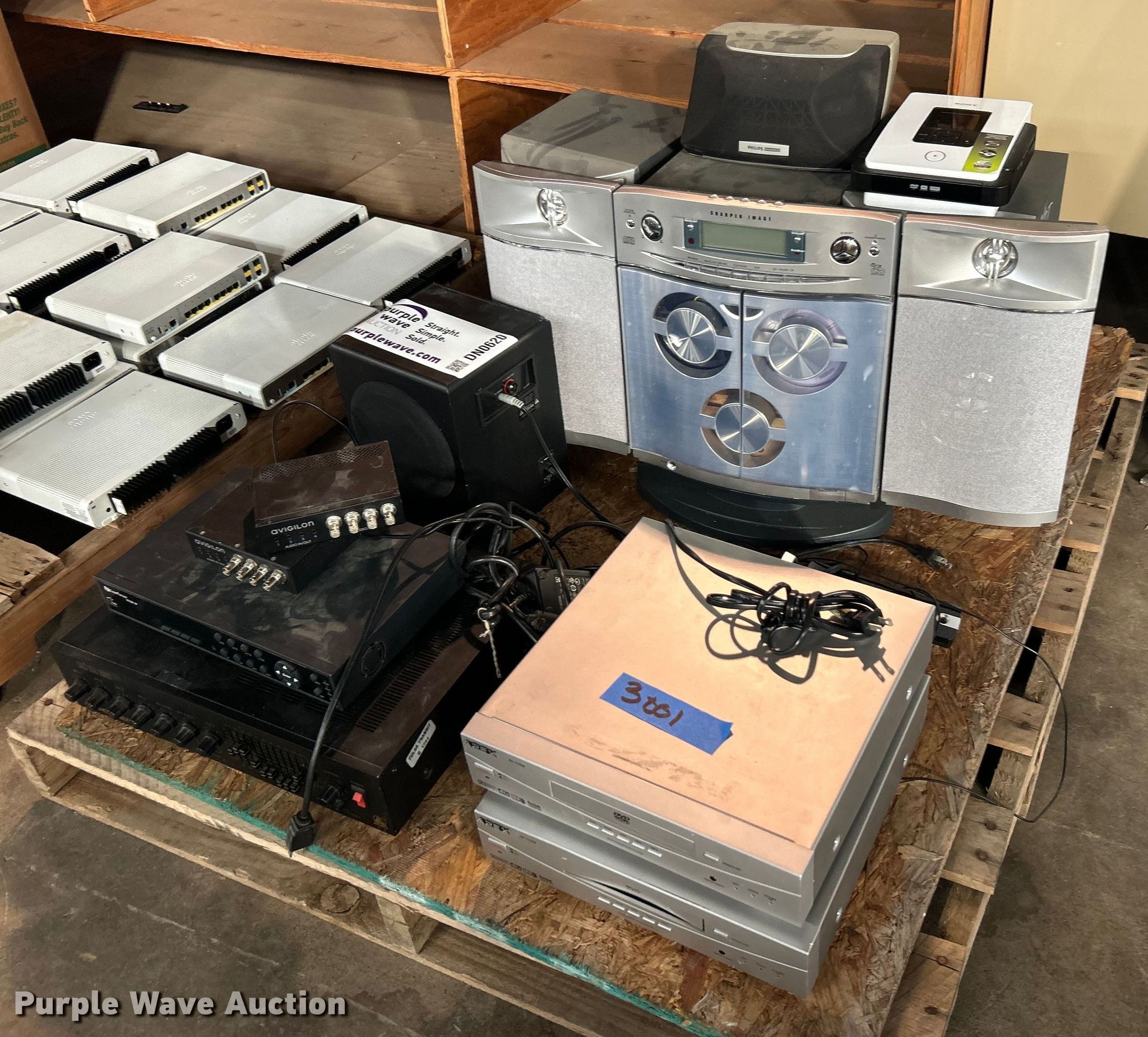 Purple Wave is selling a used Electronics in Oklahoma. This item is a Electronics with the following: Everfocus ECOR 4F digital video recorder, Bogen Gold Series amp, Apex AD1100W DVD player, Shaper Image SA260 stereo, Philips Magnavox FW768P Mini HiFi stereo, Cyber Acoustics Platinum CA-3602 speaker system, Avigilon audio units, Sony VDR-MC5 Multi-Function DVD recorder, Unit #: 3001
