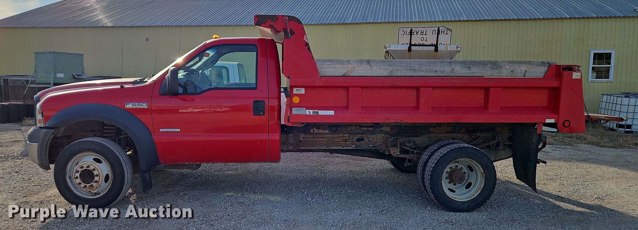 Purple Wave is selling a used Construction Dump Truck in Kansas. This item is a 2006 Ford F550 Super Duty XL dump flatbed truck with the following: Miles: 91,115 on odometer, Hours: 4,371 on meter, VIN: 1FDAF56P06EA28988