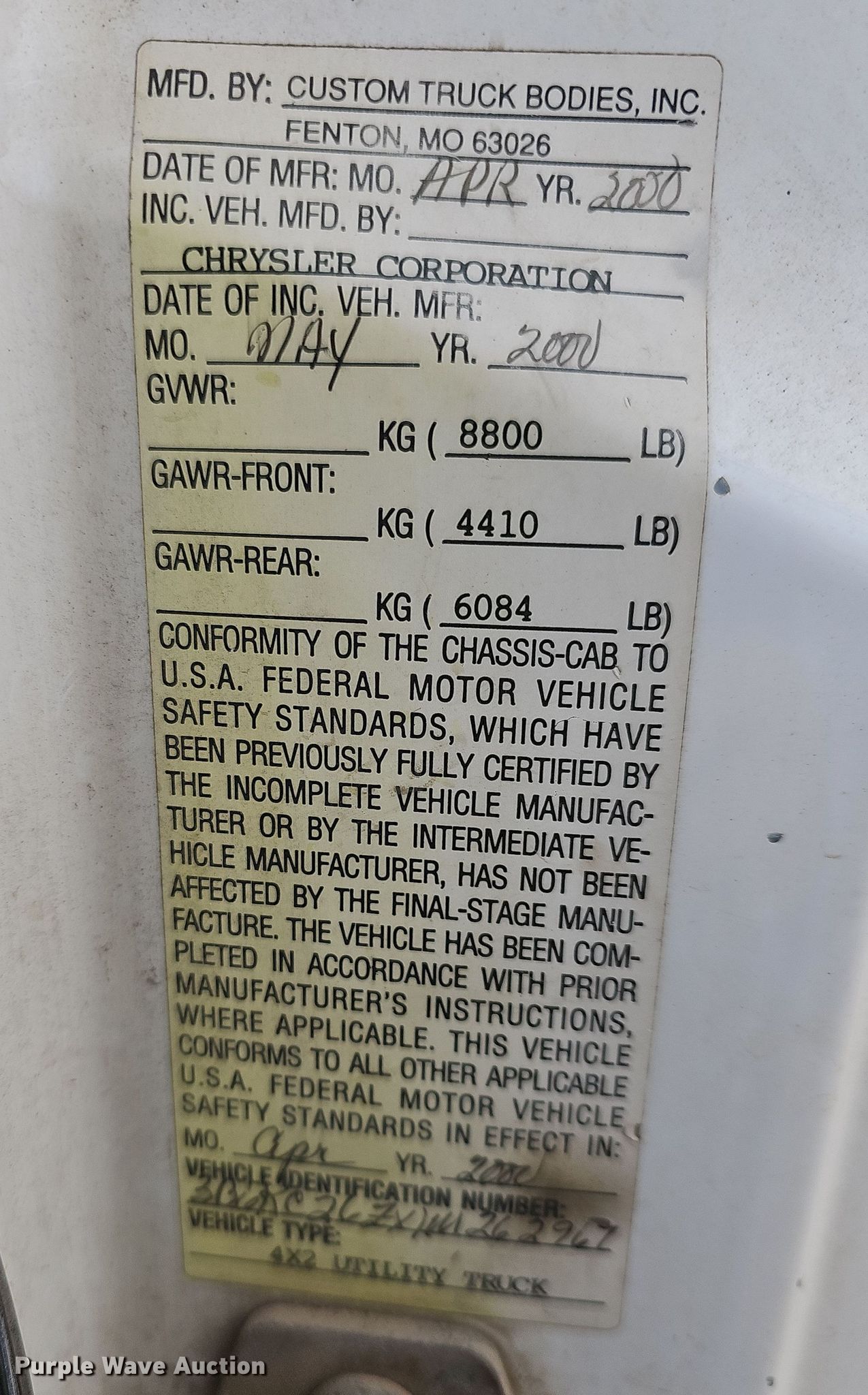 Take a look at this used 2001 Dodge Ram 2500 utility bed pickup truck being sold on January 9th, 2024 in the SOLD! January 09 Government Auction made by Dodge. Take a look at all of the item information below or take a look at similar auctions for Pickups and Vans.