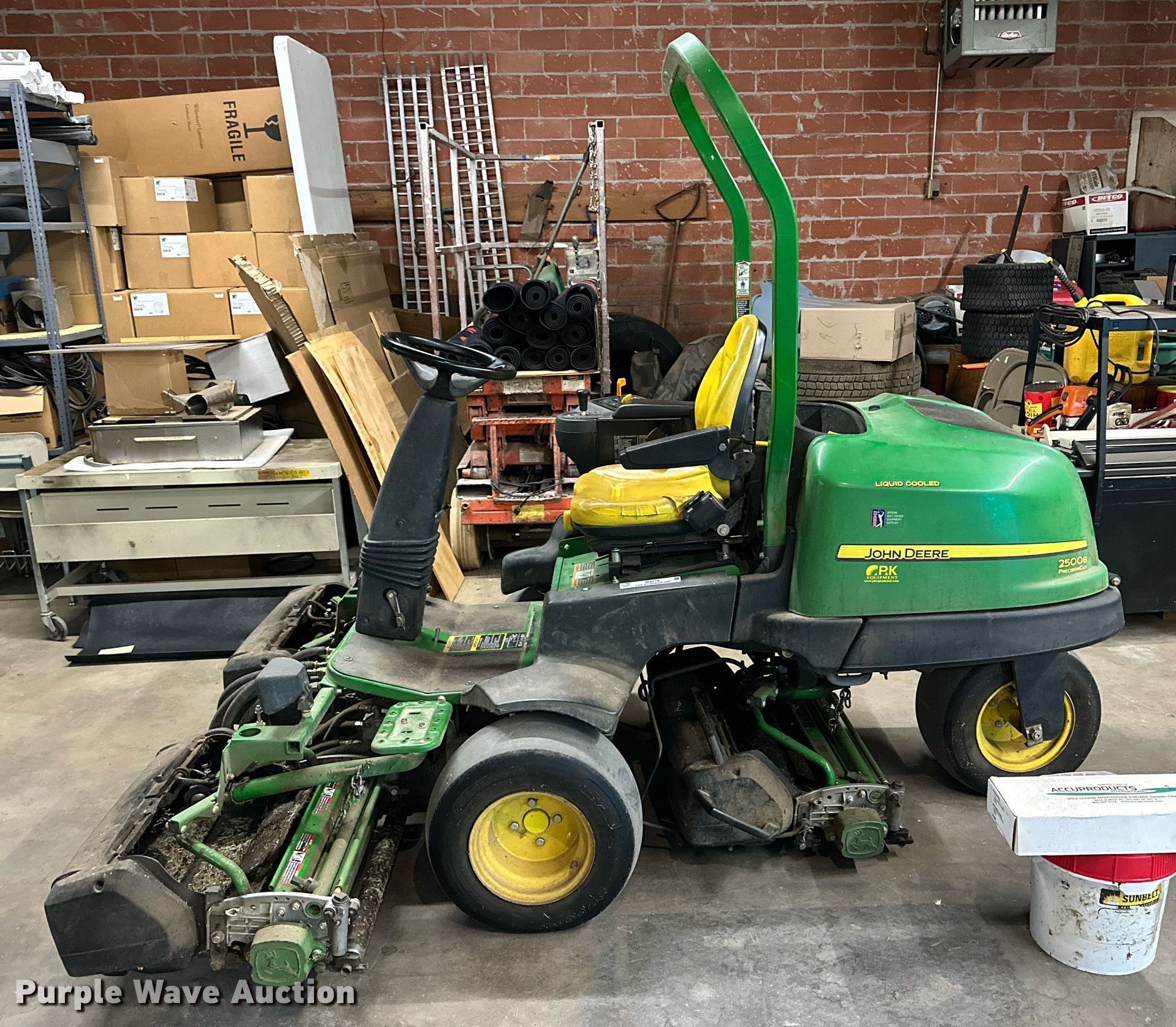Purple Wave is selling a used Commercial Turf Mower in Oklahoma. This item is a John Deere 2500B reel mower with the following: Hours: 19,556 on meter, Cutting width: 66", Serial: 1TC250BGCHT100031