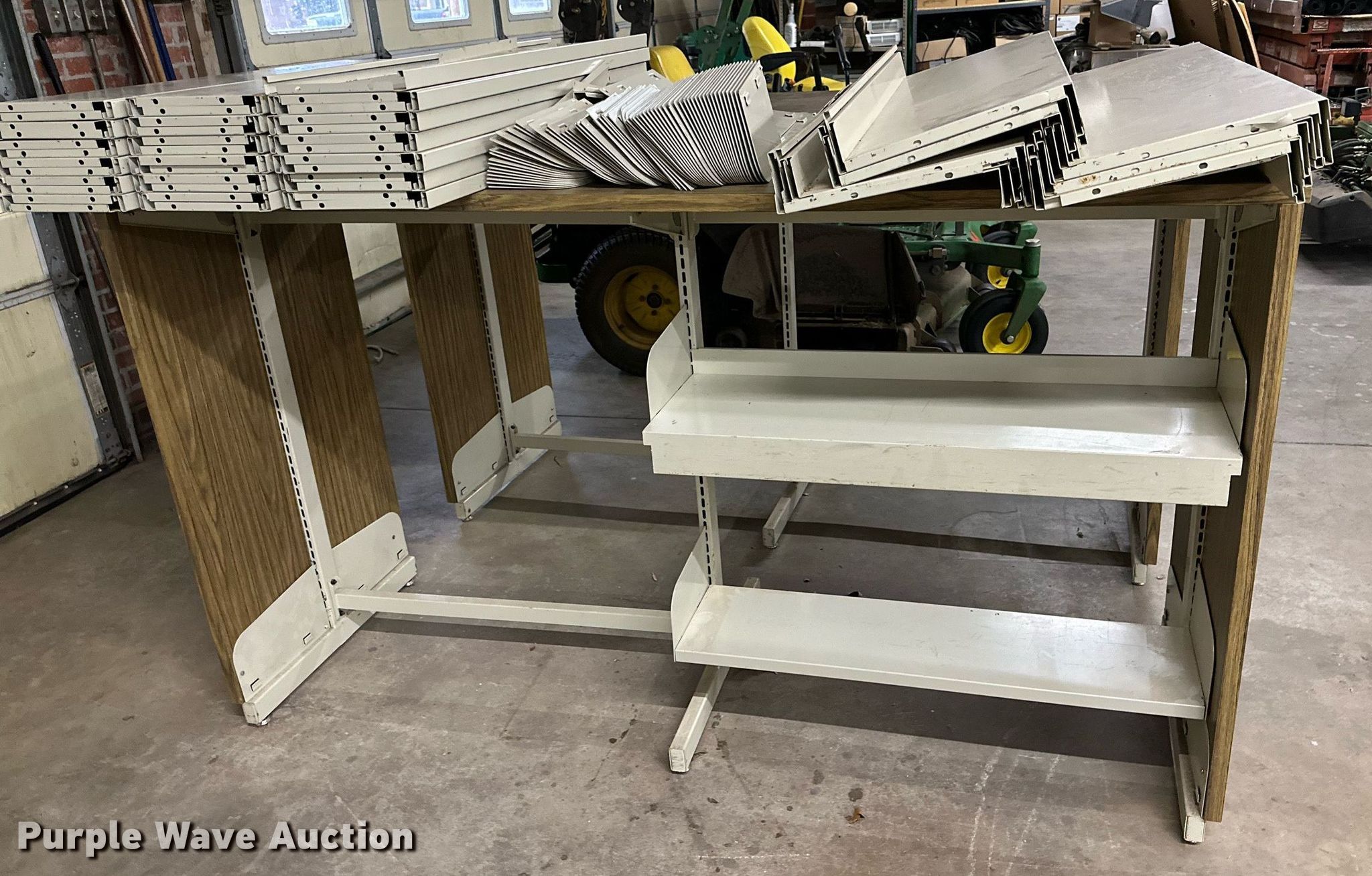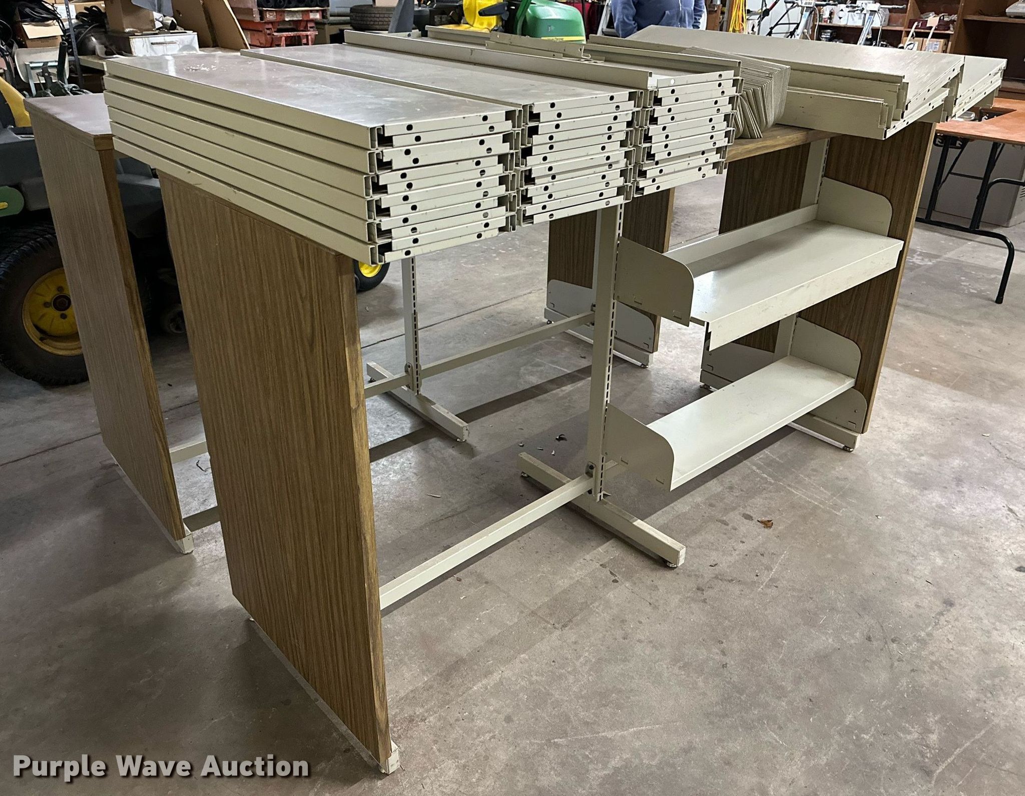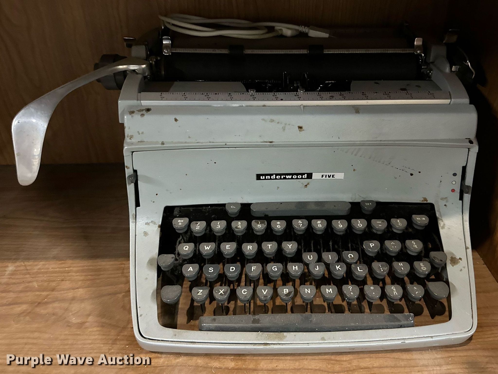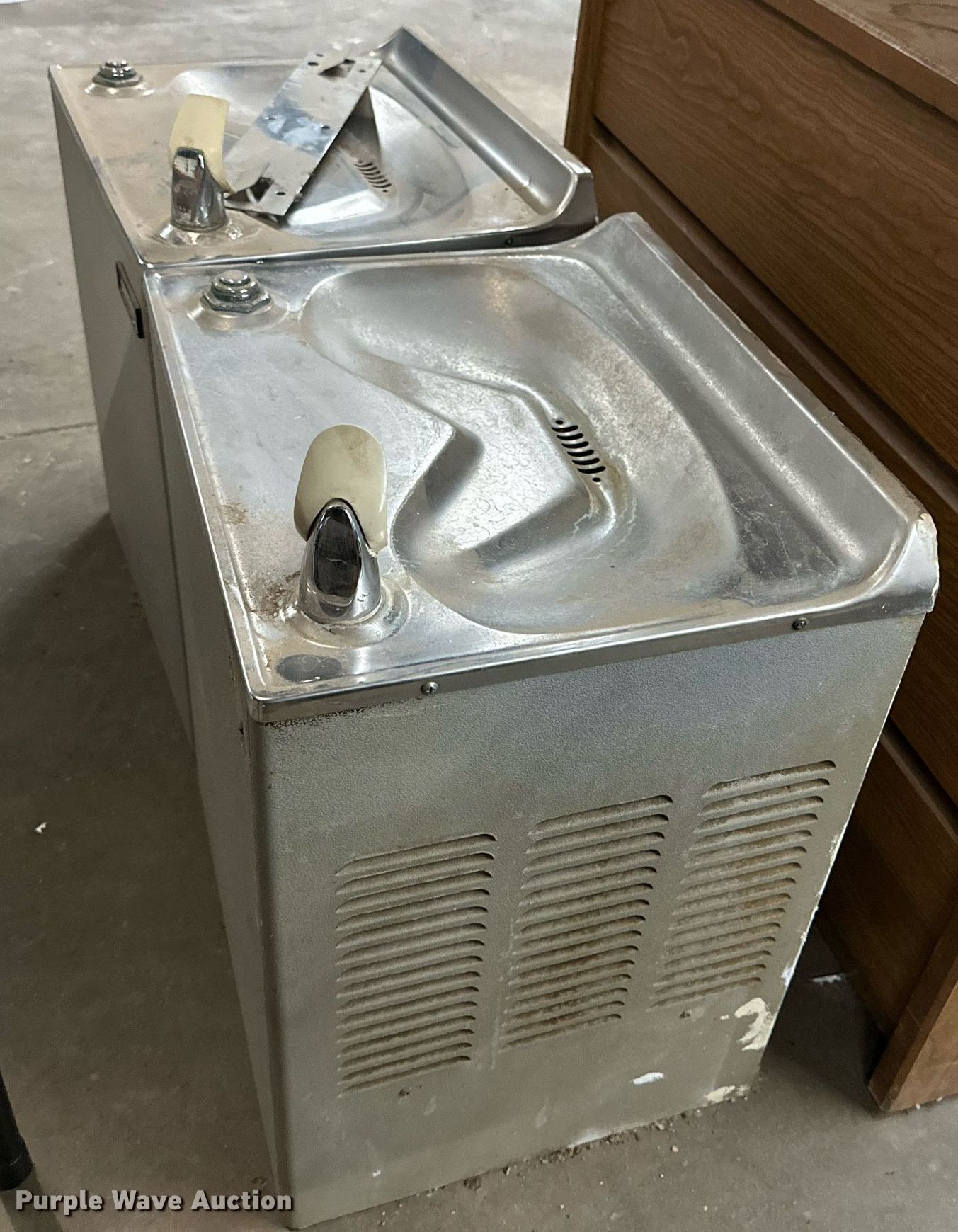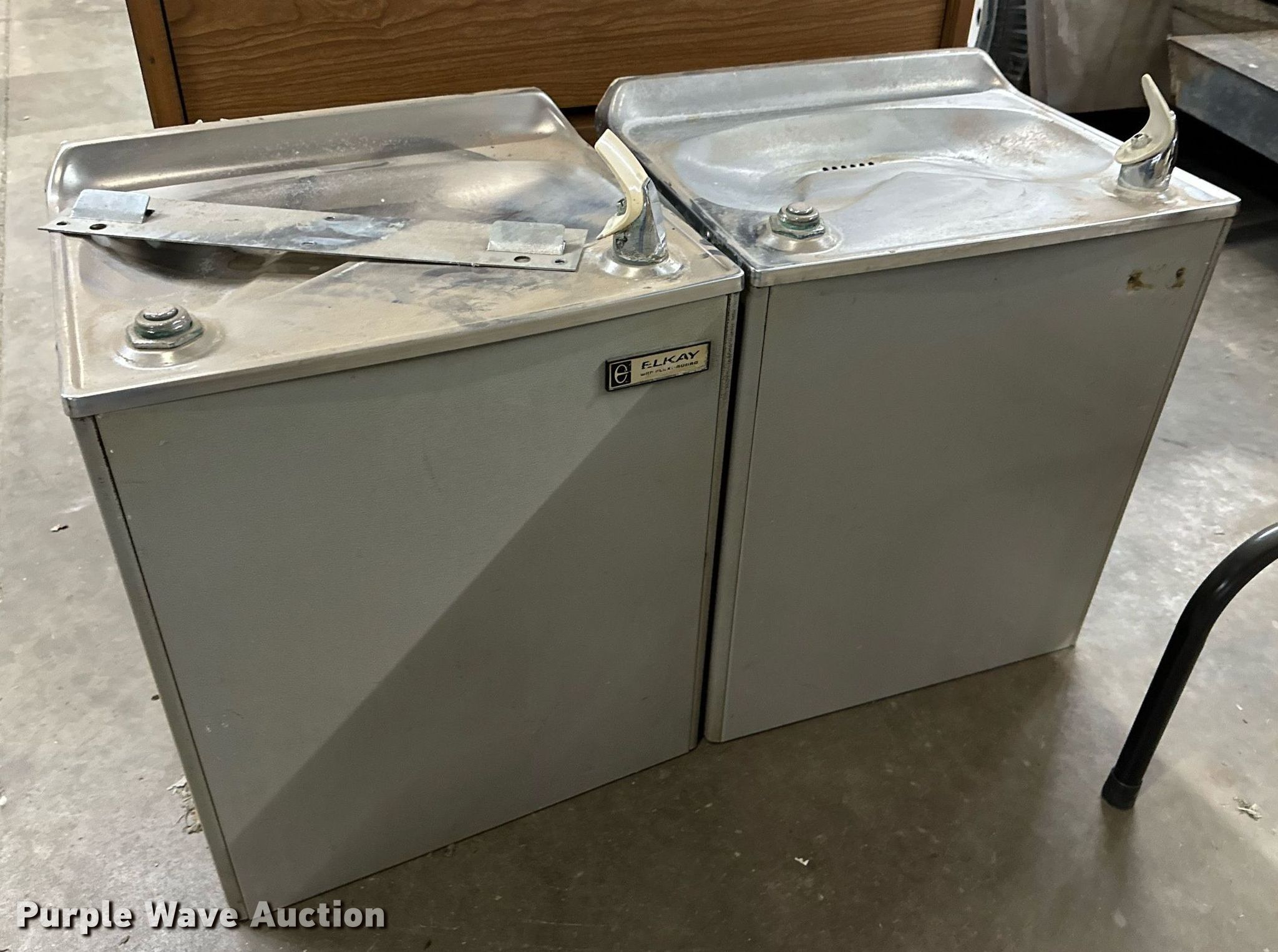 Purple Wave is selling a used Furniture in Oklahoma. This item is a Furniture with the following: (2) shelves, Desk, Cabinet, (2) water fountains, (2) typewriters, Smart board