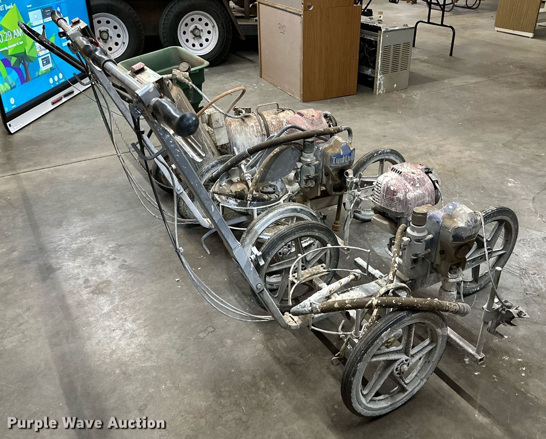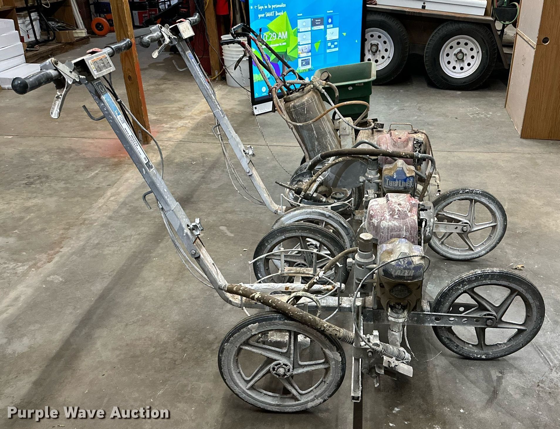 Purple Wave is selling a used Tools in Oklahoma. This item is a (3) Turfliner line painters with the following: Fertilizer spreader, Unknown operating condition