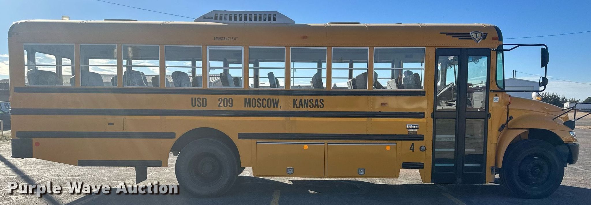 Purple Wave is selling a used Bus in Kansas. This item is a 2012 International CE school bus with the following: Miles: 63,661 on odometer, Hours: 2,209 on meter, VIN: 4DRBUSKN9CB044911