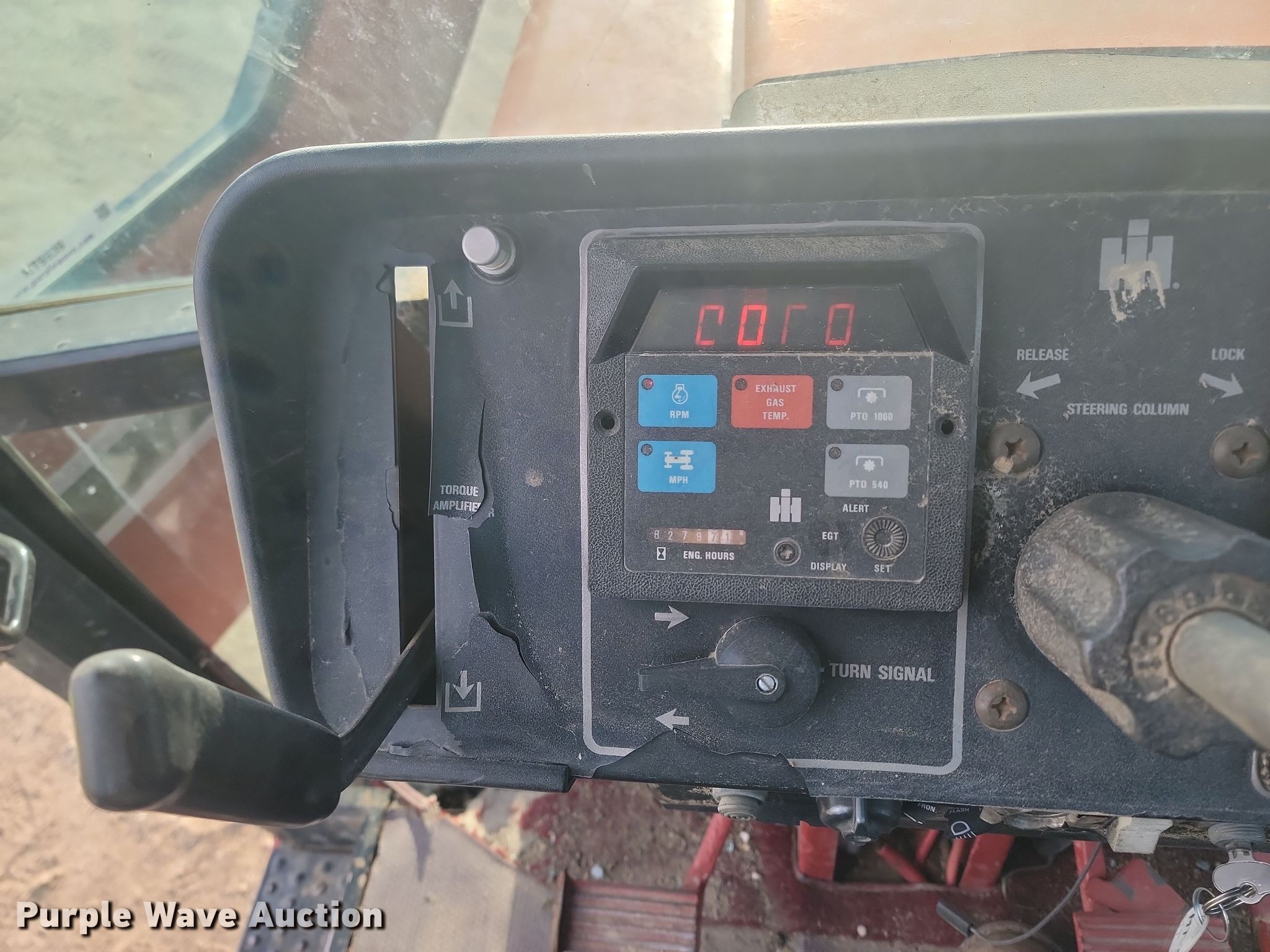 1979 International 1086 tractor. Hours: 8,280 on meter, Serial: 0181U38316. Engine International , Cylinders: 6, Fuel type: Diesel. Transmission Torque amplifier, 16F - 8R. Operators station AC, Heat. Features PTO: 540, 1000, Three point, Hydraulic remote sets Rear: 3. Tires Front: 10.00-16, Rear: 18.4-38. Notes Gauge issues , Glass broken. Jackson County. 142 13th Ave.. Kadoka, SD 57543