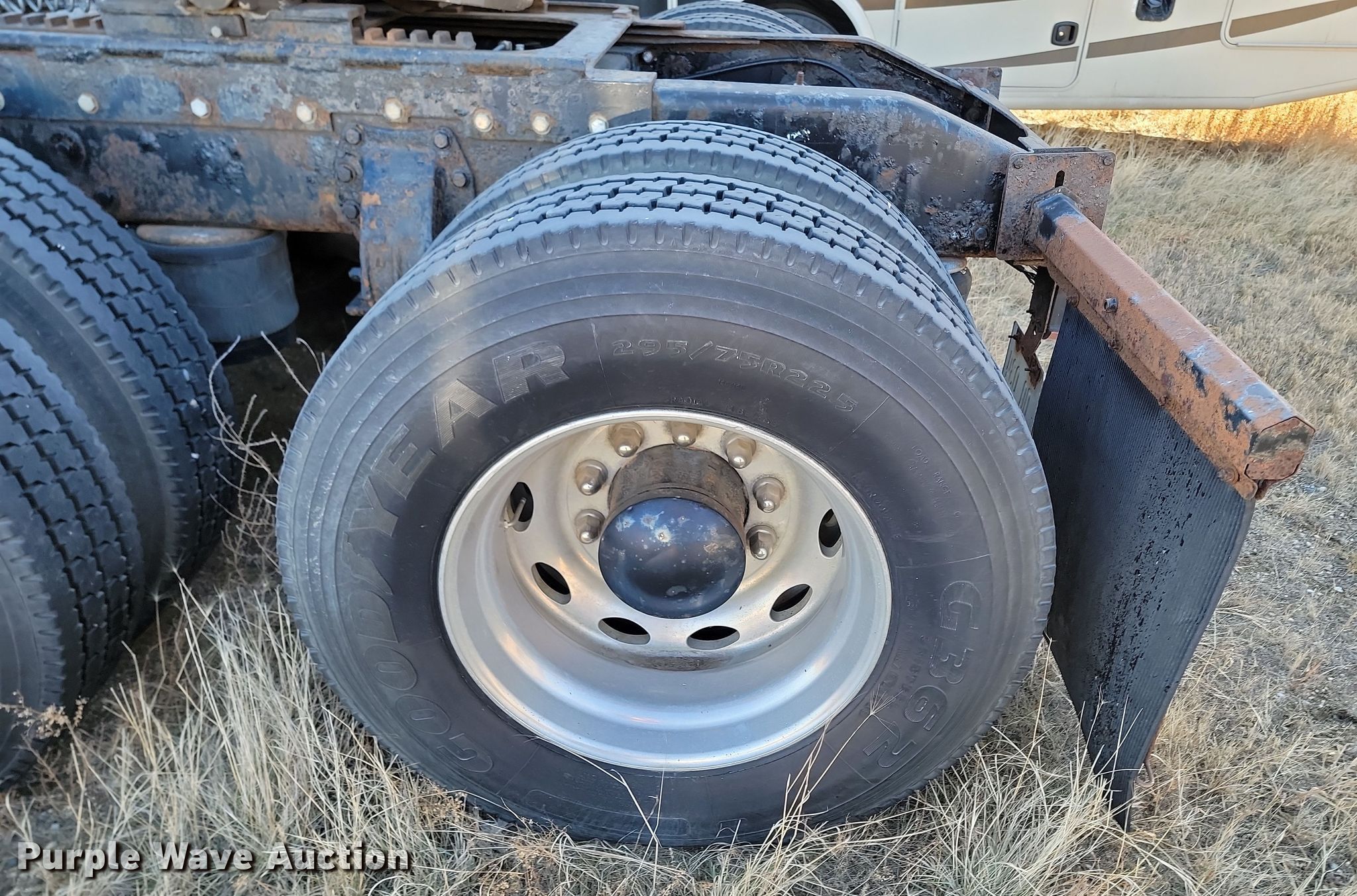 1996 Peterbilt 385 semi truck. Miles: 555,750 on odometer, VIN: 1XPGD99X8TN411627, Unit #: DQ034. Engine Cummins M11, Displacement: 10.8L, Cylinders: 6, Fuel type: Diesel, Engine brake. Transmission Eaton Fuller, Manual. Chassis Axles: Tandem, Differential lock: Inter-axle, Suspension: Air Dump valves, Brakes: Air, PTO, Wet kit, GVWR: 54,600 lbs FAWR: 14,600 lbs, IAWR: 20,000 lbs, RAWR: 20,000 lbs. Interior AC, Heat, Heated mirrors, Cruise control. Features Deck plate: Aluminum, Fifth wheel type: Air operated, Sliding, Fuel tank: Dual. Tires Front: 11R22.5, Rear: 295/75R22.5. Notes Dead battery, Non-operational engine , Non-operational unit. South Dakota title. State of South Dakota Bureau of Administration. 1300 South Ohlman Street. Mitchell, SD 57301