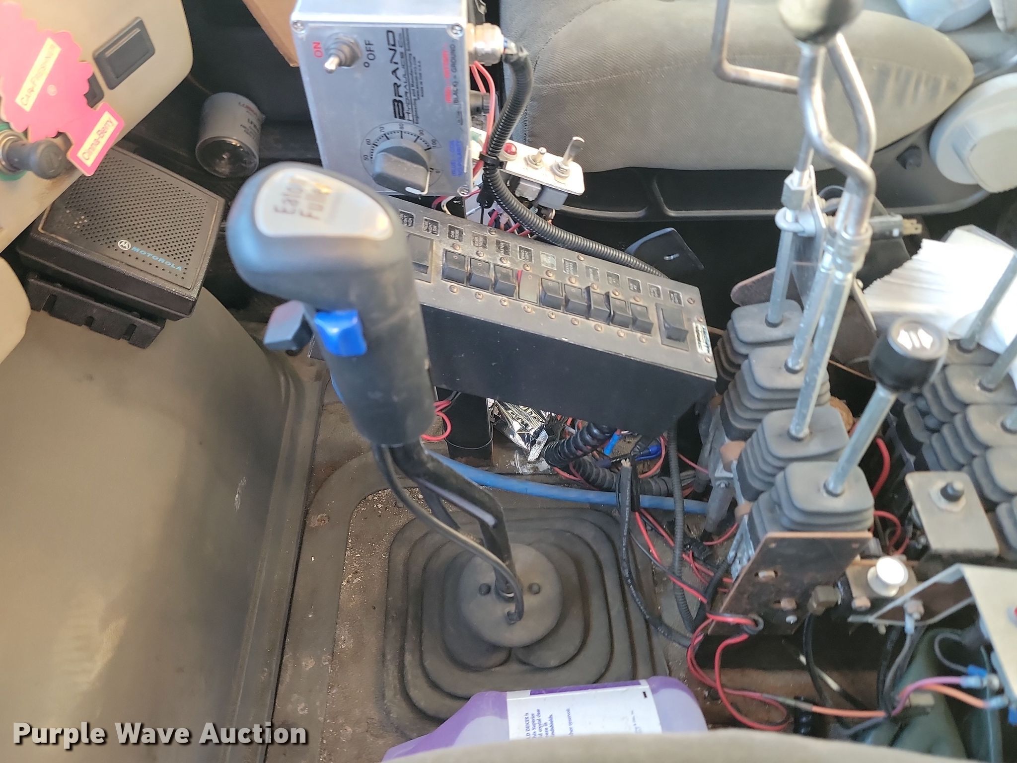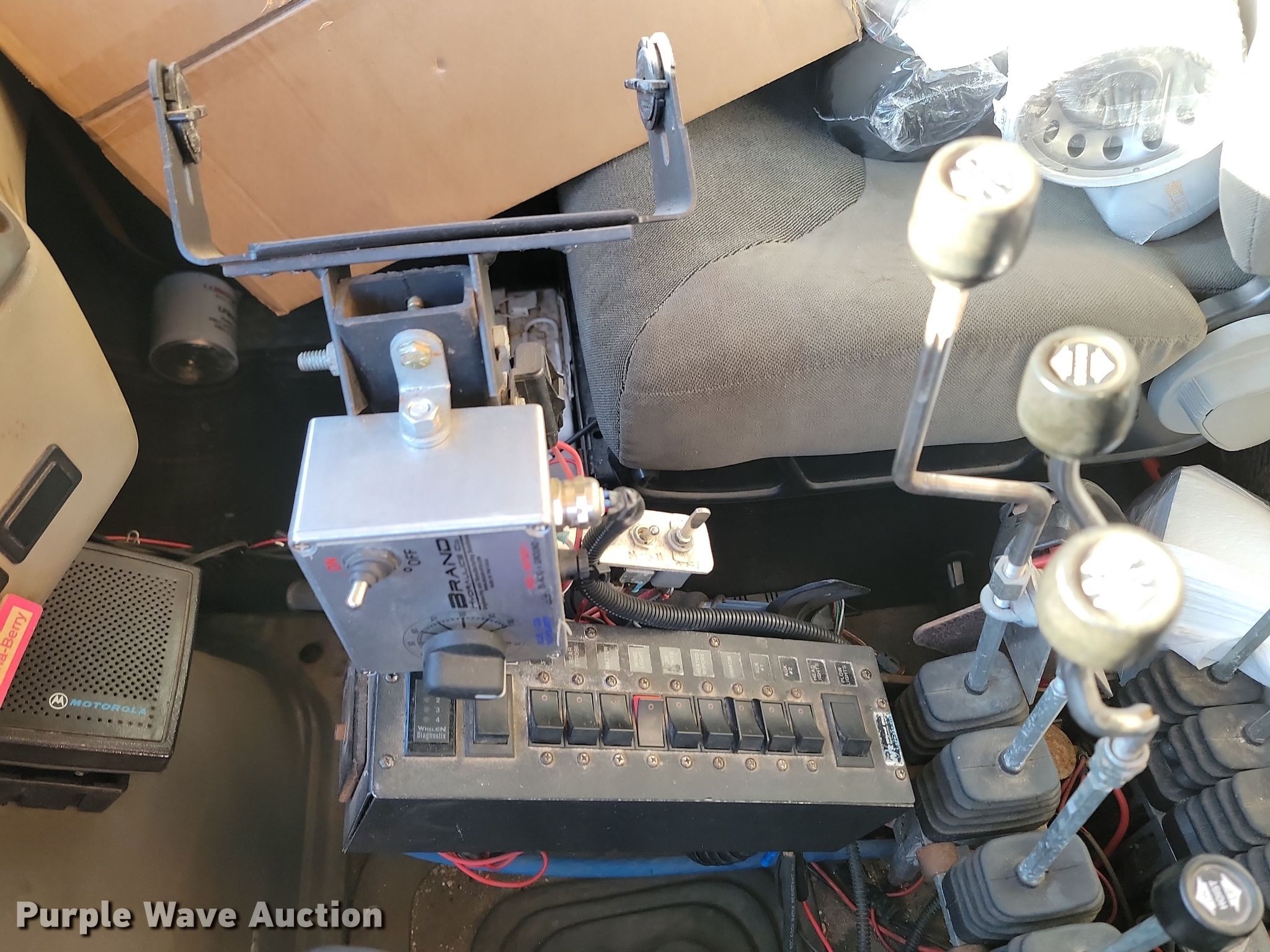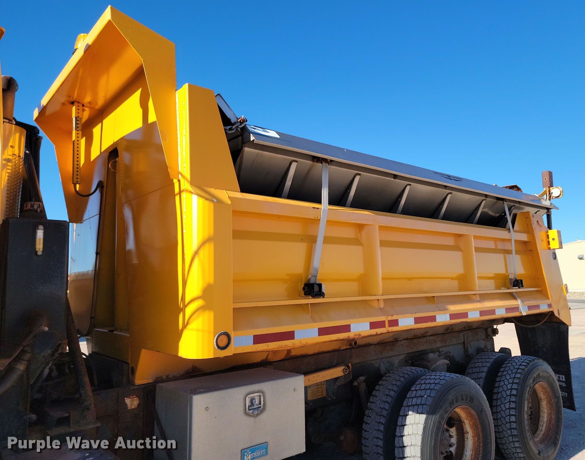 2002 Sterling LT9500 dump truck. Miles: 76,443 on odometer, Hours: 3,788 on meter, VIN: 2FZHAZAV52AJ79340, Unit #: DJ010,RN364, RR531,RA586,RE004. Engine Caterpillar, Displacement: 14.6L, Cylinders: 6, Fuel type: Diesel, Engine brake. Transmission Eaton Fuller Road Ranger RT/RTO-8LL, Manual, Speed: 10, All wheel drive. Chassis Axles: Tandem, Differential lock: Inter-axle, Suspension: Spring over walking beam, Brakes: Air, Front mount PTO, GVWR: 66,000 lbs FAWR: 20,000 lbs, IAWR: 23,000 lbs, RAWR: 23,000 lbs. Interior AC, Heat, Heated mirrors, Power windows, Cruise control. Features Dump bed 15' L x 96" W, Side height: 32", Bed type: Steel, Ram: Single, End gate: Air operated, Spreader Swenson, Plow Frink 4511QS35A, Width: 132", Wing plow Monroe, Width: 144", Mid-mount plow Monroe, Width: 96". Tires Front: 445/65R22.5, Rear: 11R22.5. South Dakota title. Title distribution may be delayed up to 14 days from verification of funds. State of South Dakota Bureau of Administration. 2300 Eglin Street. Rapid City, SD 57703