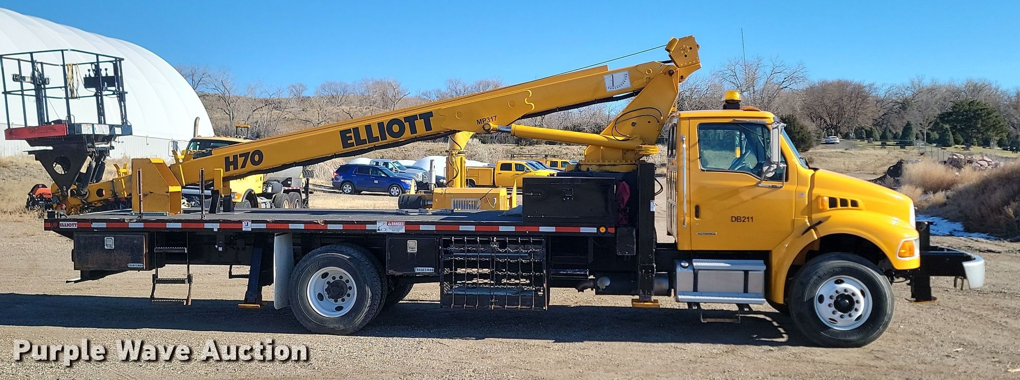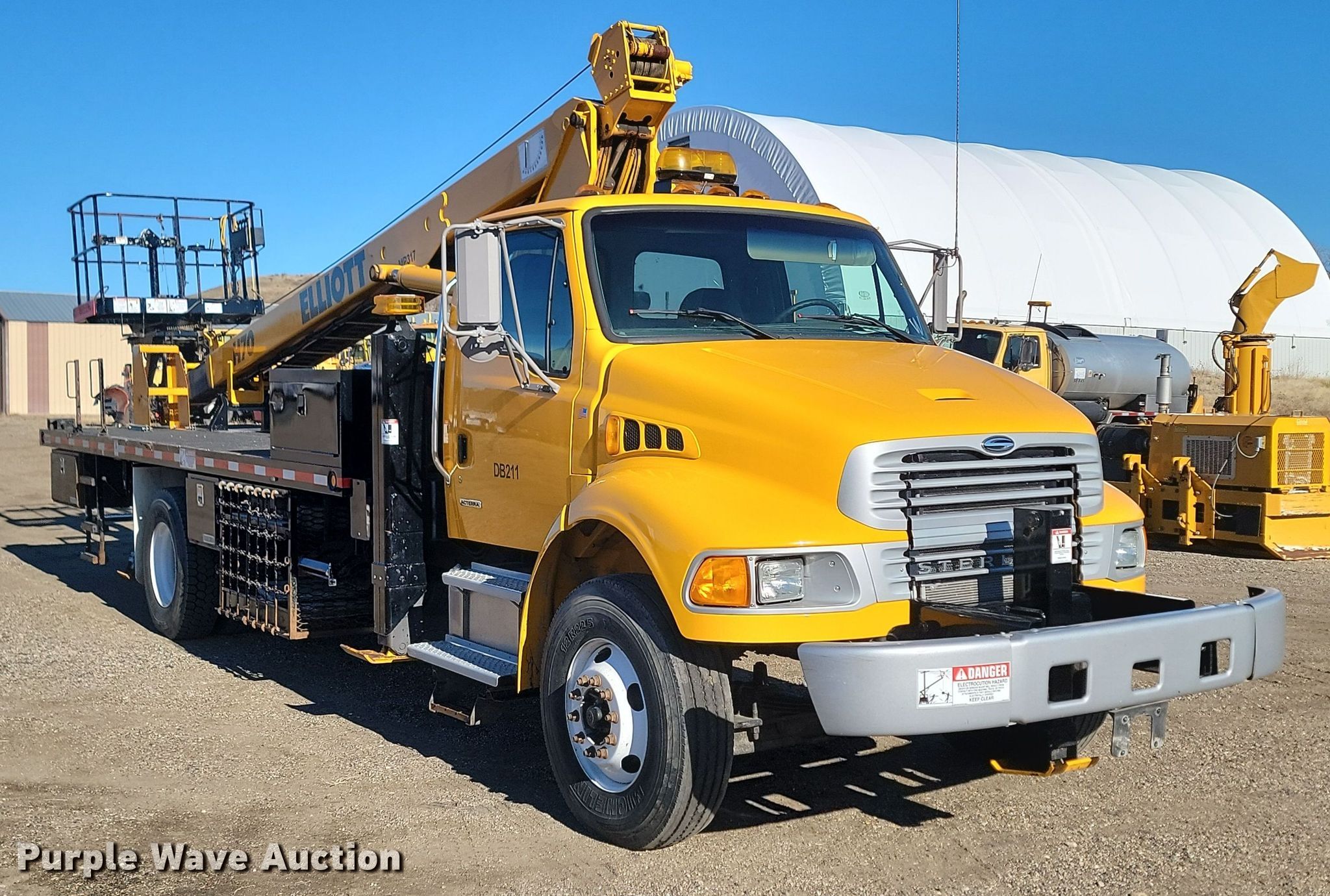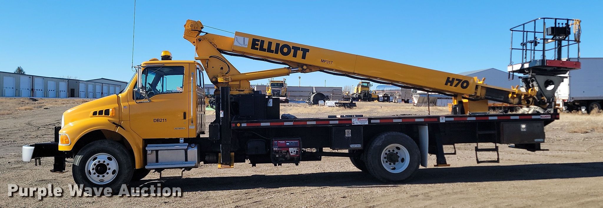 2003 Sterling Acterra bucket truck. Miles: 63,145 on odometer, Hours: 3,410 on meter, VIN: 2FZACHAK13AL72047, Unit #: DB211, MP317. Engine Displacement: 7.2L, Cylinders: 6, Fuel type: Diesel. Transmission Eaton Fuller Smart Shift, Automated manual. Chassis Axles: Single, Suspension: Spring, Brakes: Air, PTO, GVWR: 34,200 lbs. Interior AC, Heat, Cruise control. Features Bed 22' 4" L x 98' W, Boom Elliot H70, Maximum lift capacity: 600 lbs, Maximum lift height: 75', Boom type: Articulating, Telescopic, Man basket, Boom controls Platform/ basket.. Tires Size: 12R22.5. Notes Dead battery. South Dakota title. Title distribution may be delayed up to 14 days from verification of funds. State of South Dakota Bureau of Administration. 104 South Garfield Avenue. Pierre, SD 57501